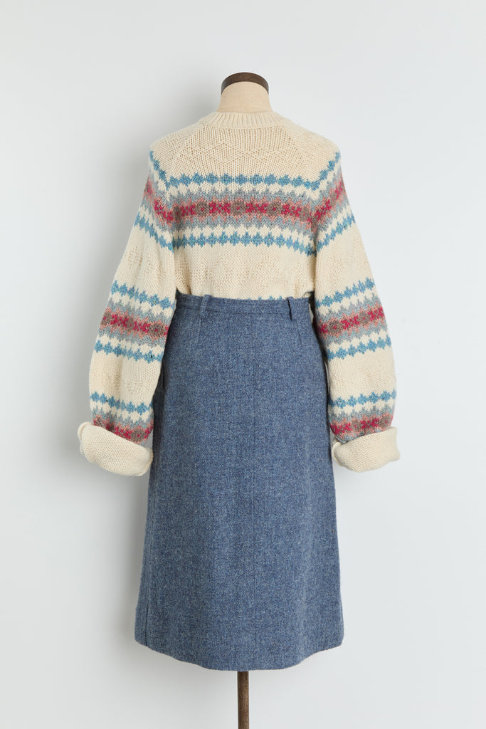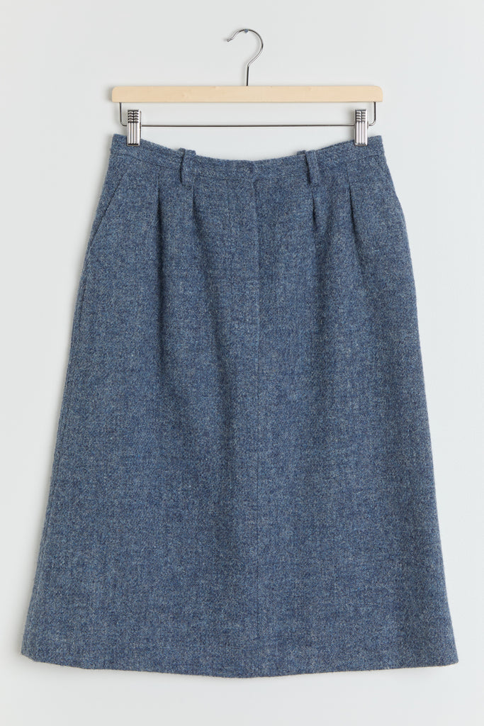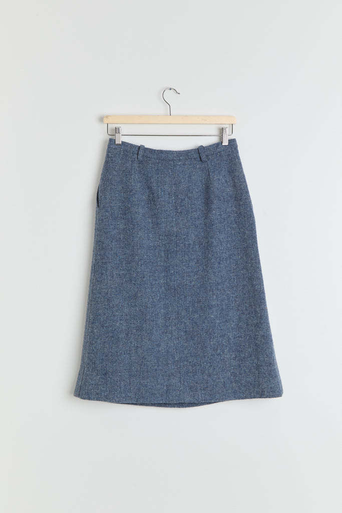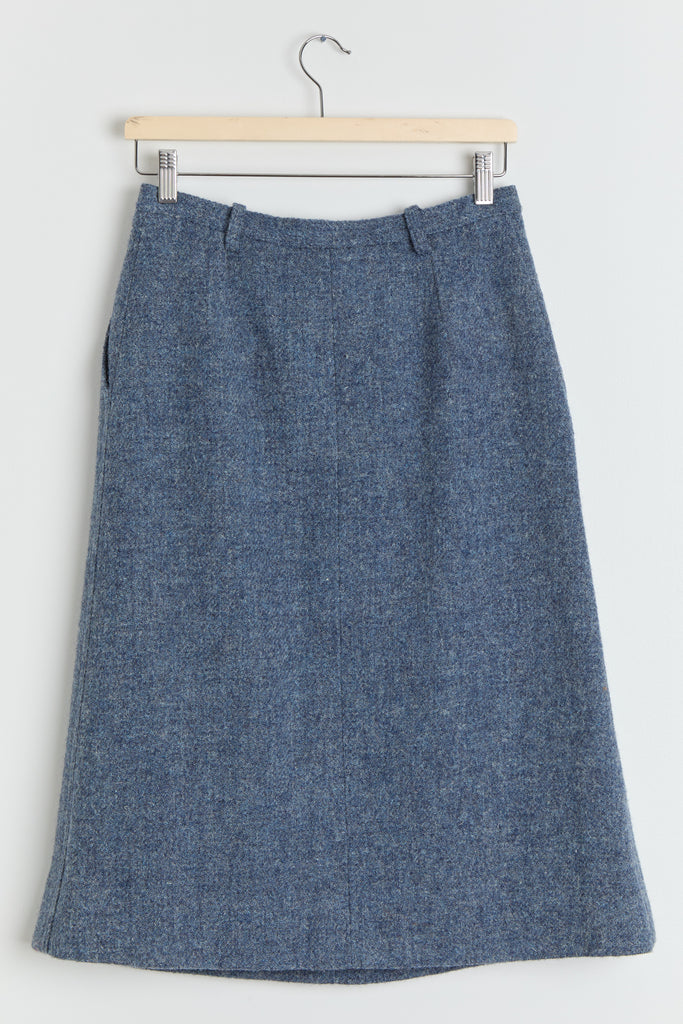 70s Dusty Blue Wool Skirt M