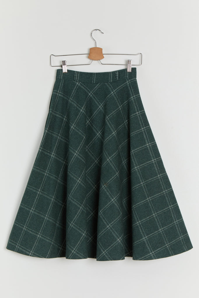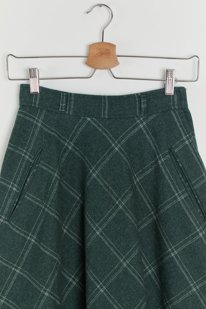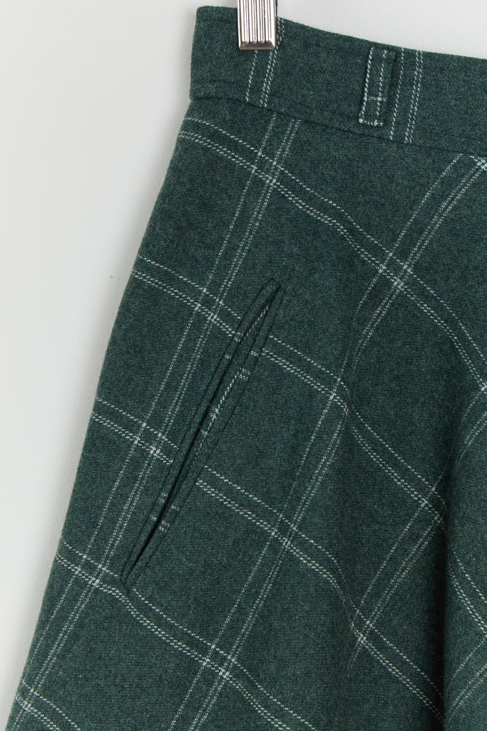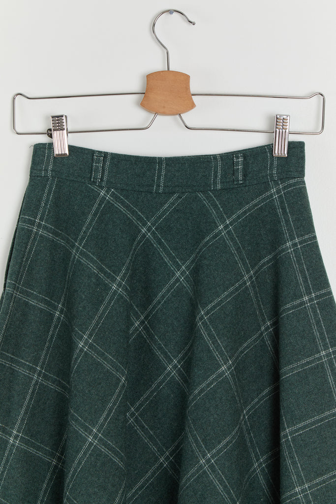 70s Forest Green Window Pane Full Wool Skirt XS
