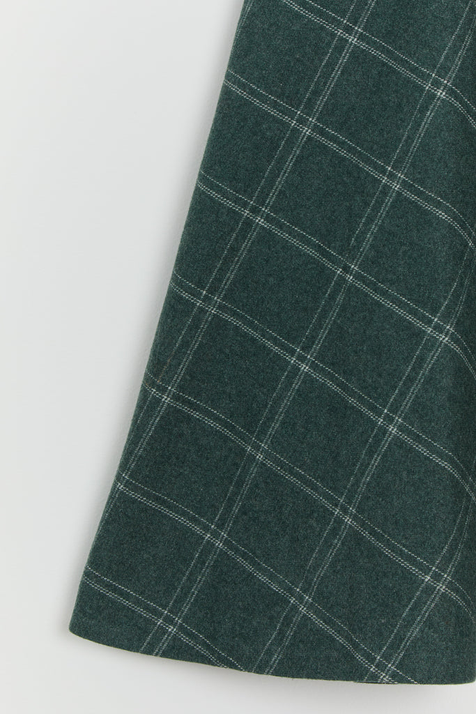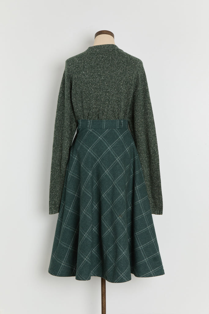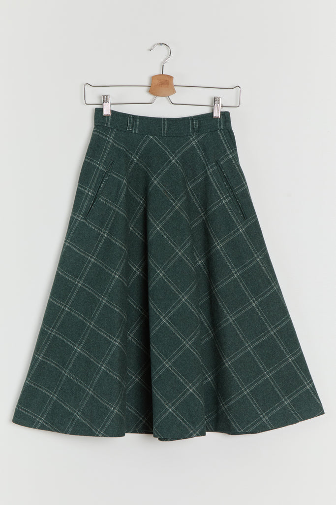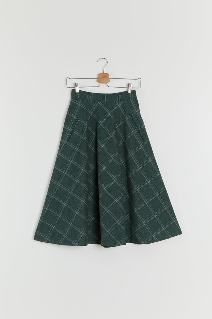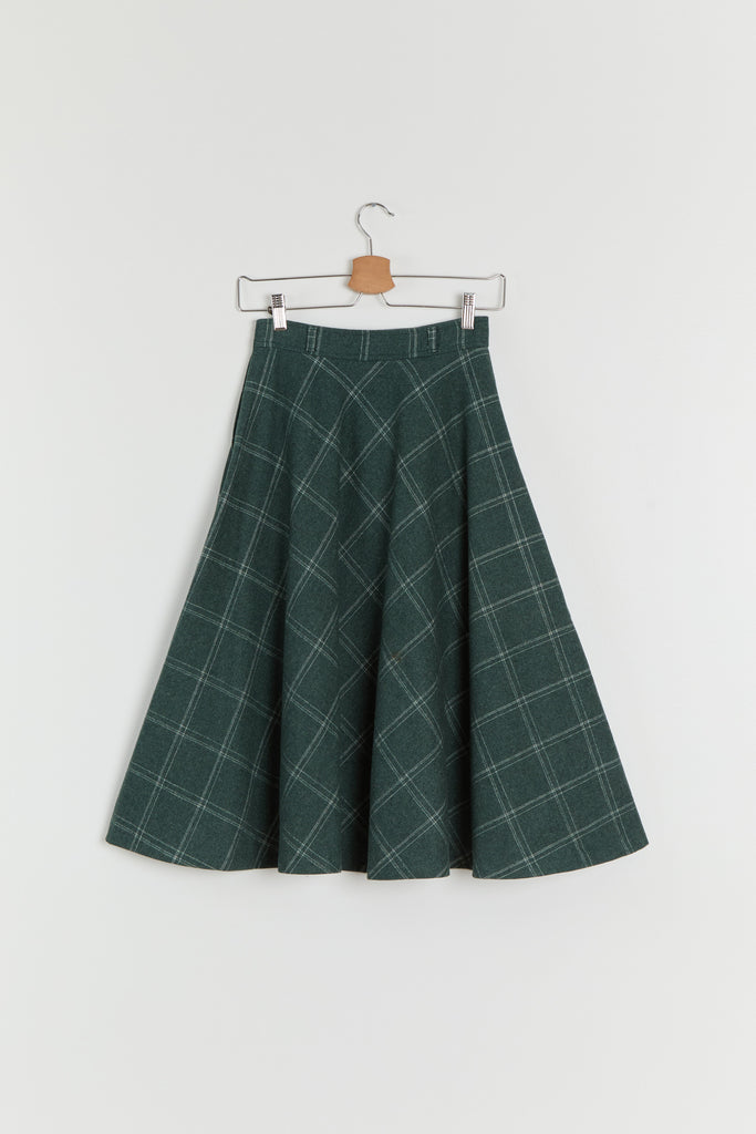 70s Forest Green Window Pane Full Wool Skirt XS