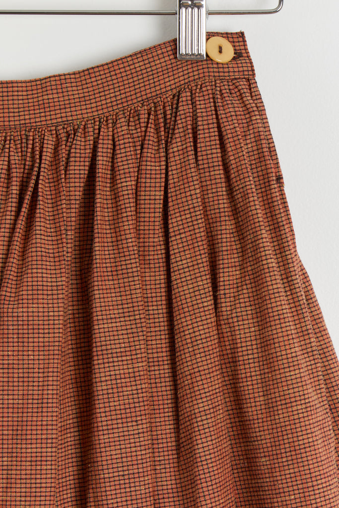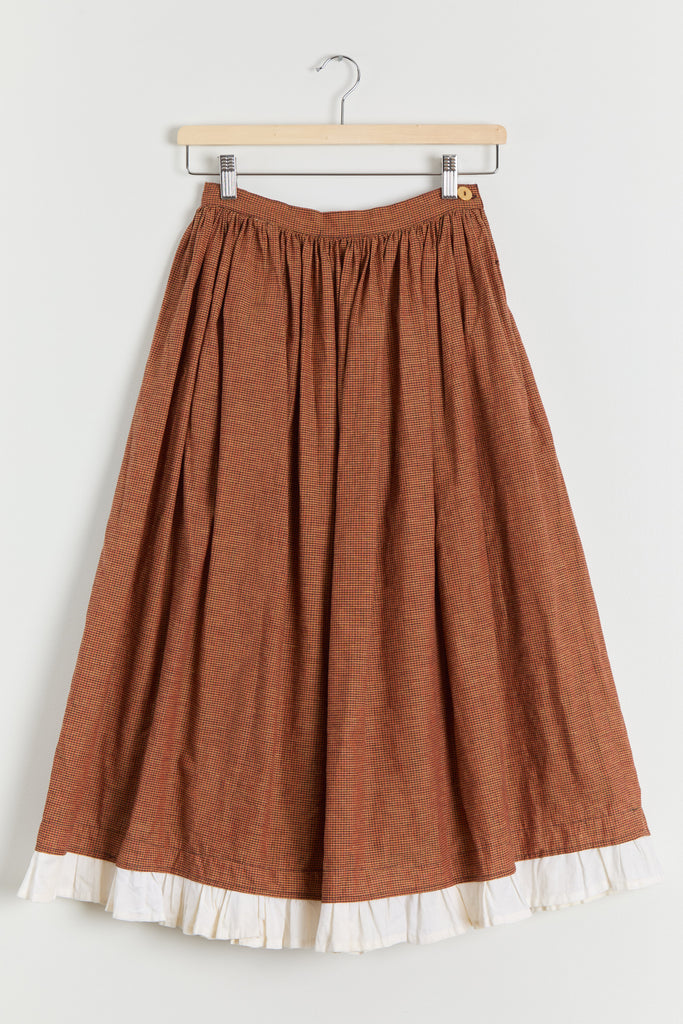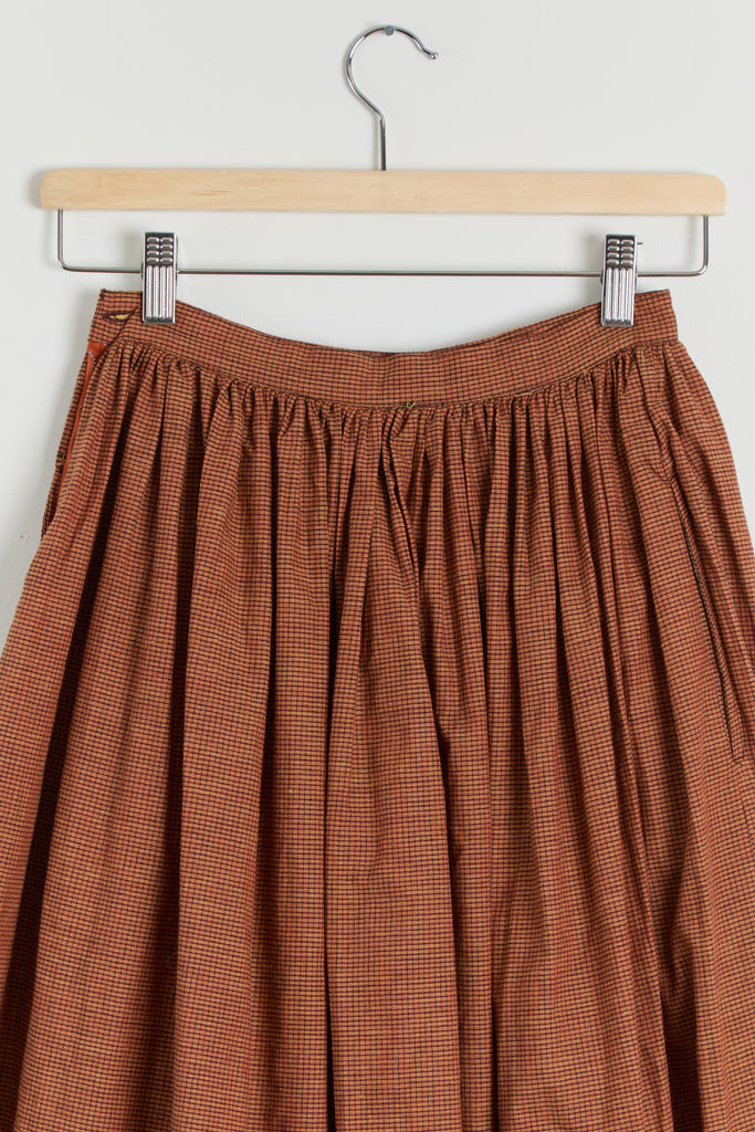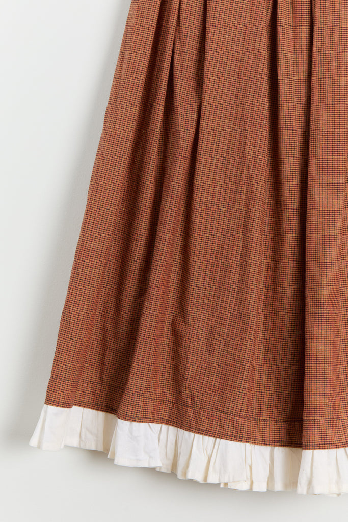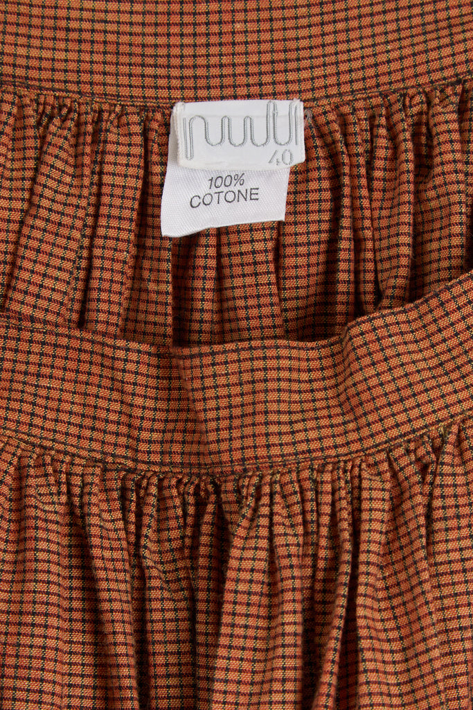70s Rust Grid Full Cotton Ruffle Skirt XS