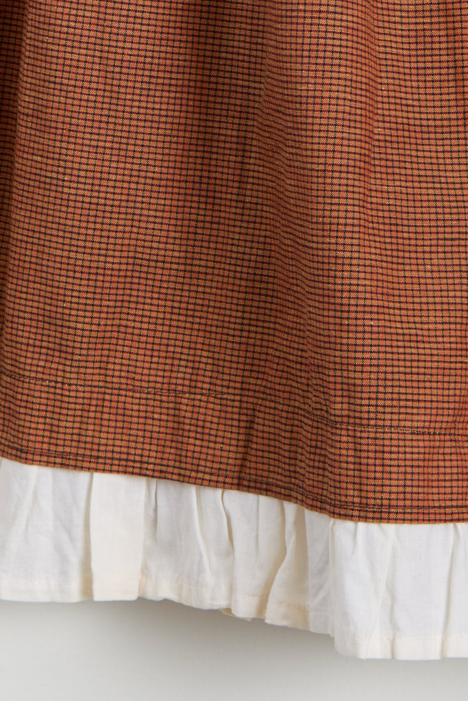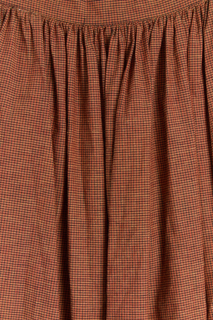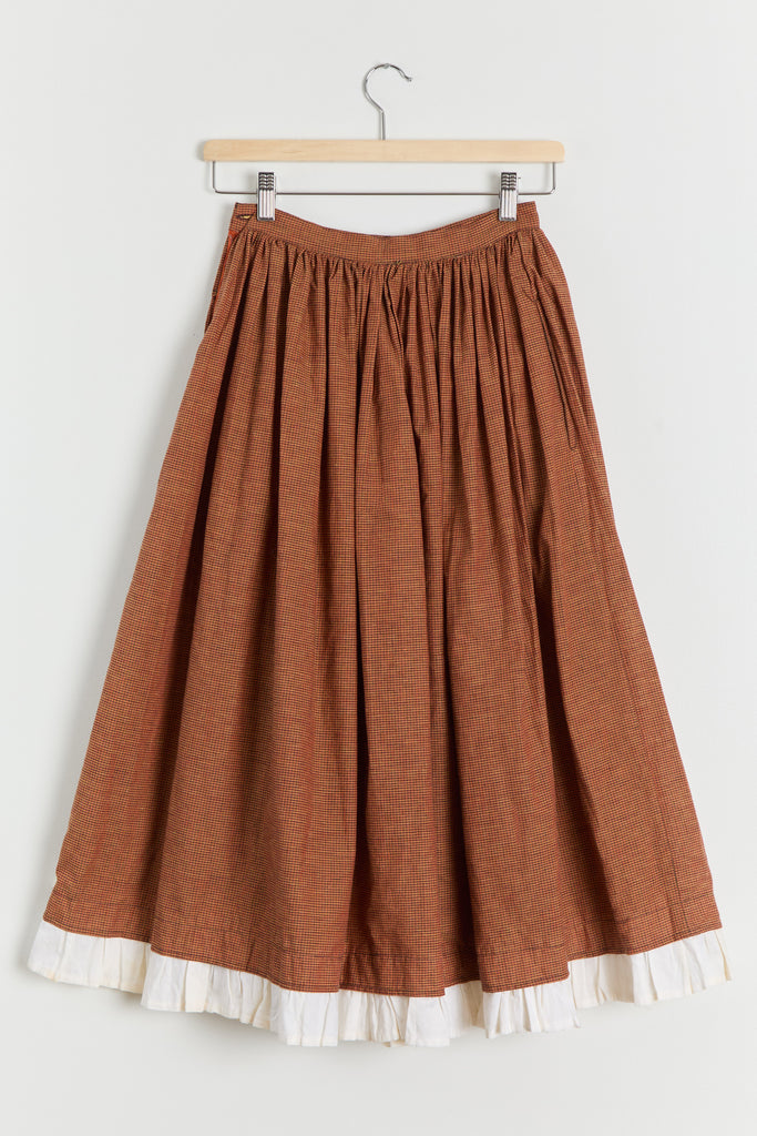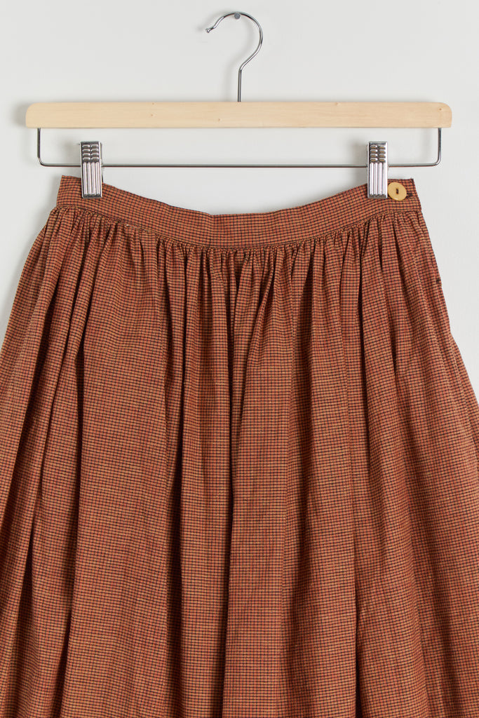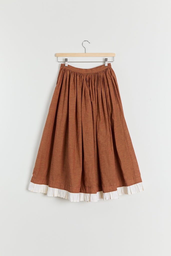 70s Rust Grid Full Cotton Ruffle Skirt XS