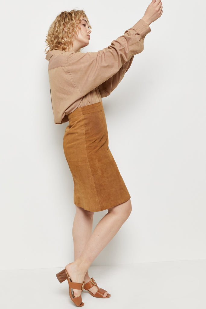 MATERIAL / Genuine Suede, medium weight structured suede, fully lined