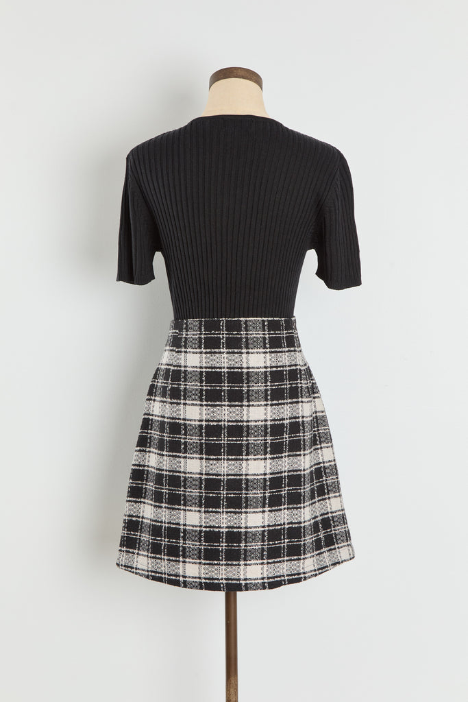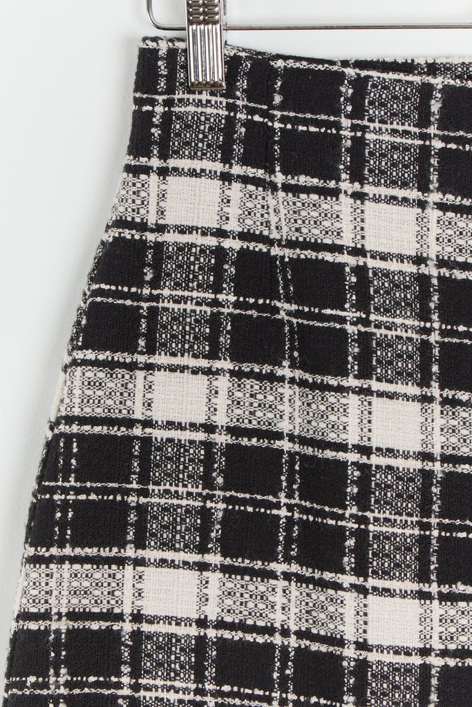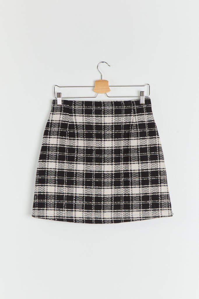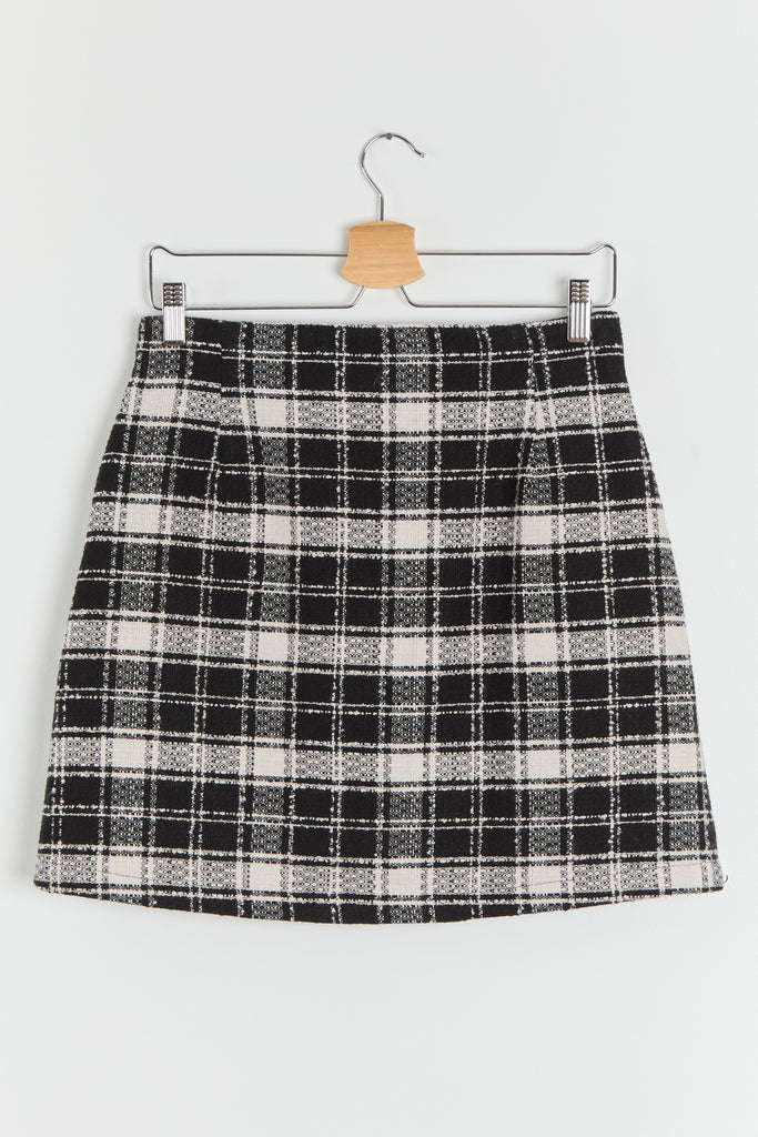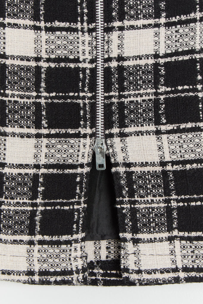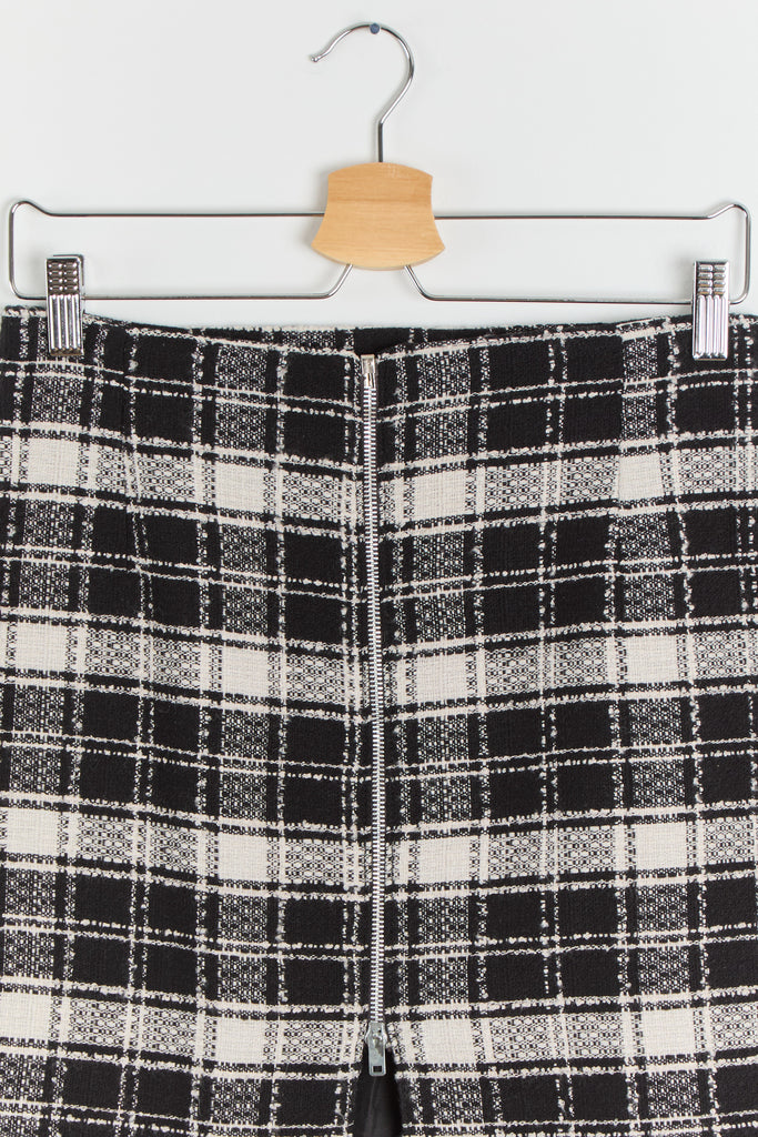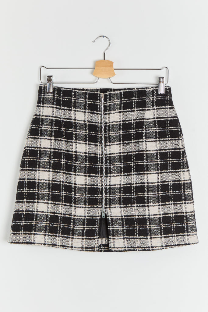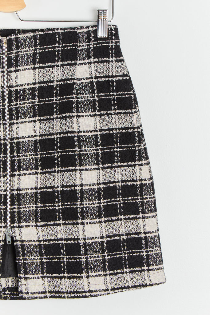 90s B&W Zip Front Plaid Mini Skirt M