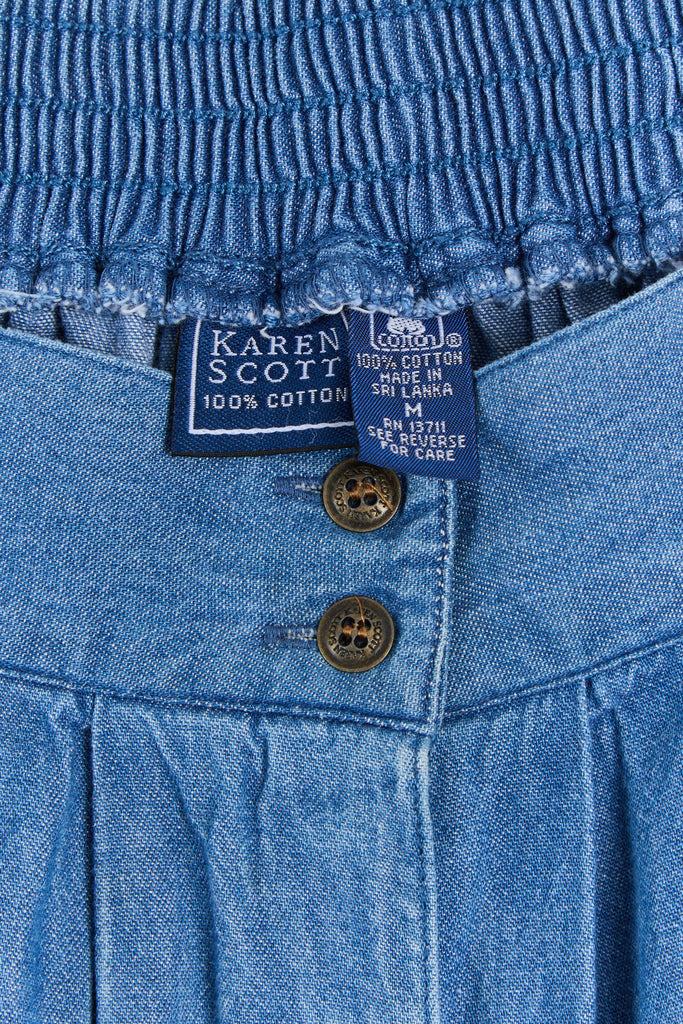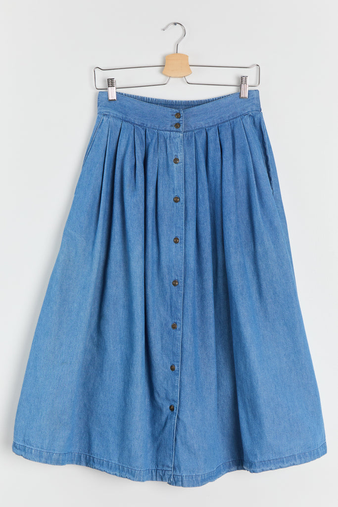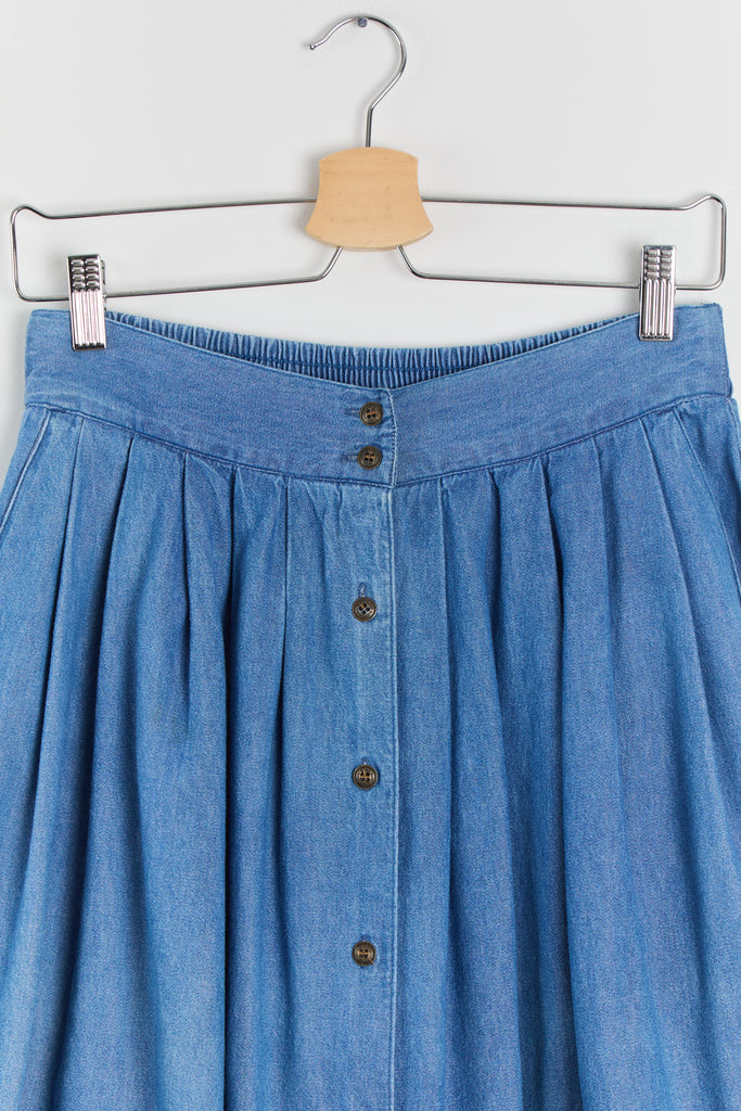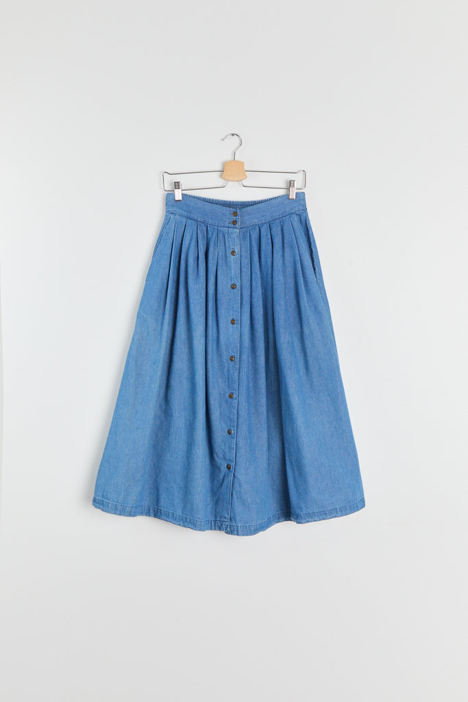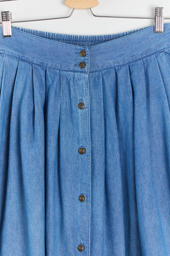 90s Medium Wash Chambray Pleated Button Front Skirt M