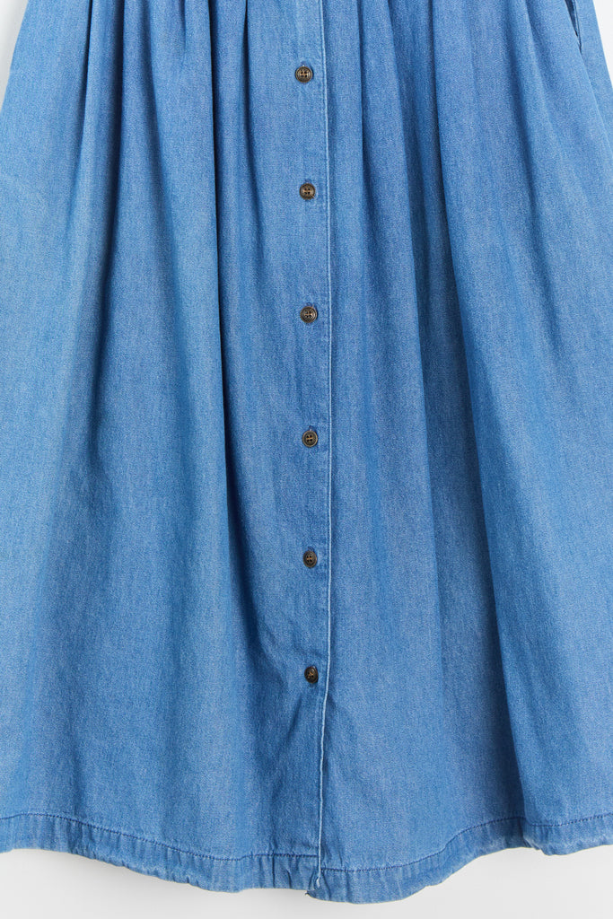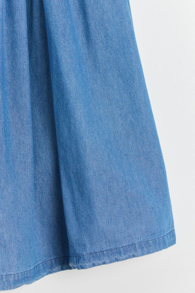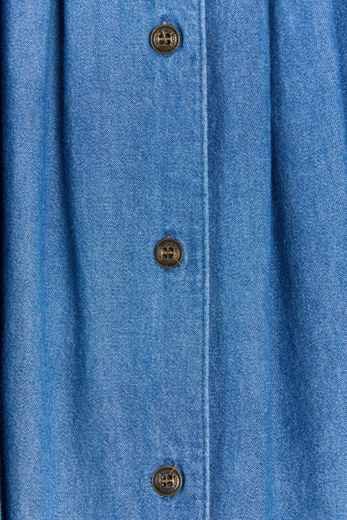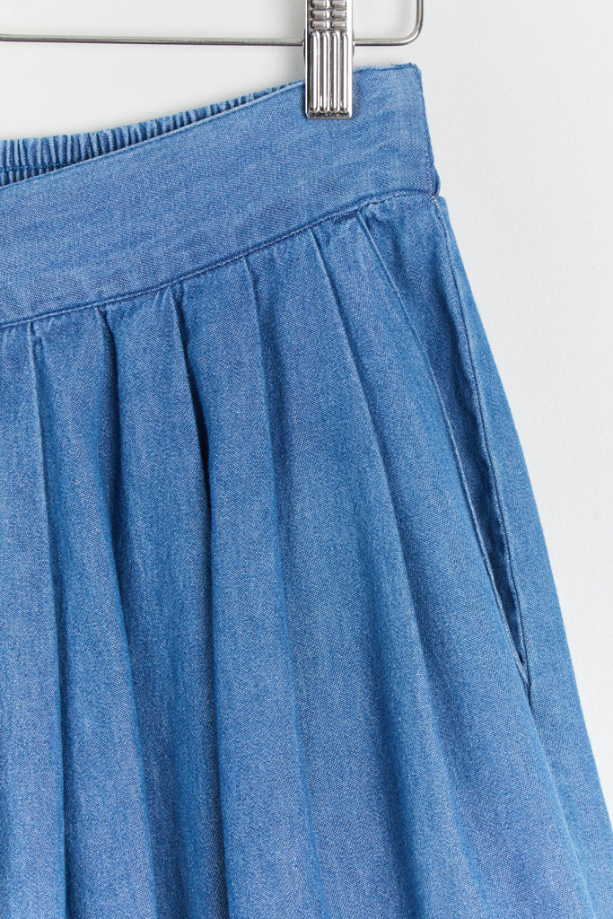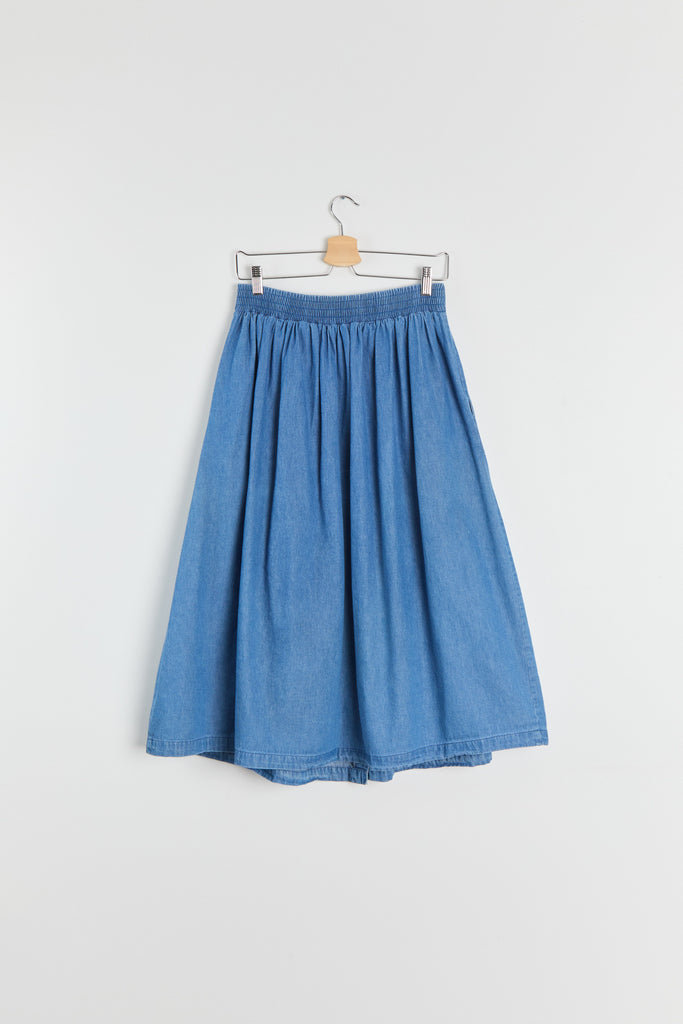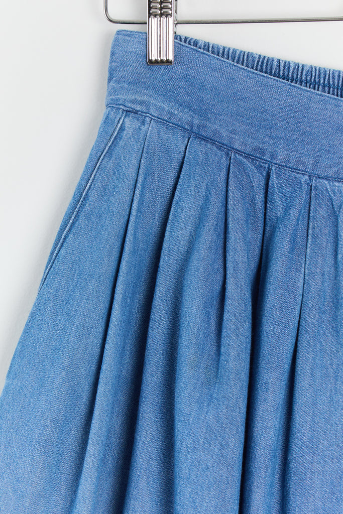 90s Medium Wash Chambray Pleated Button Front Skirt M