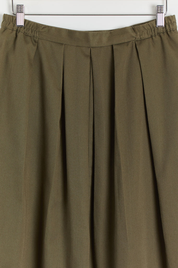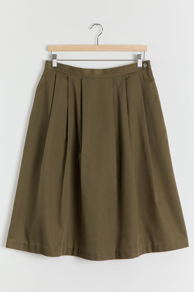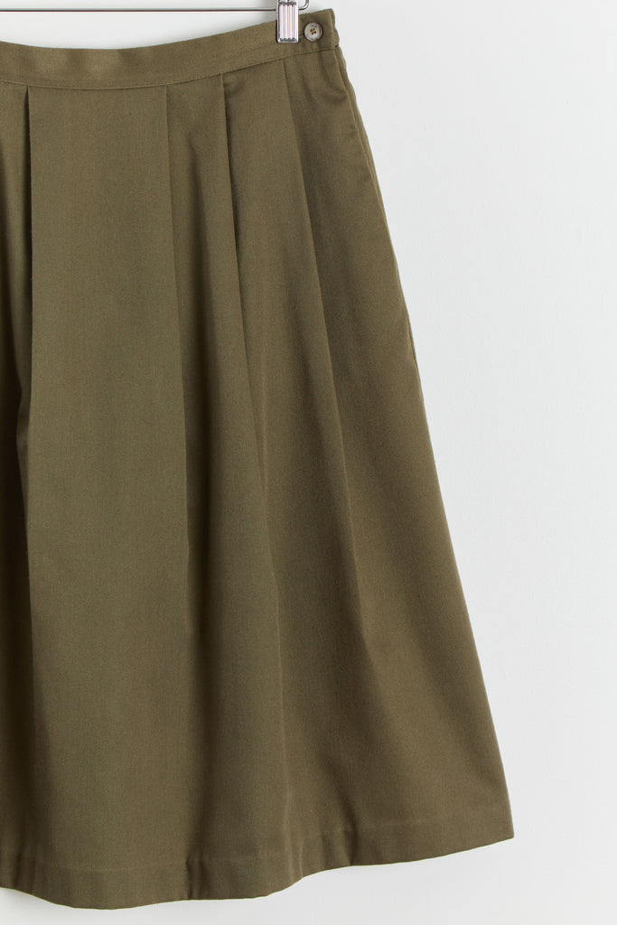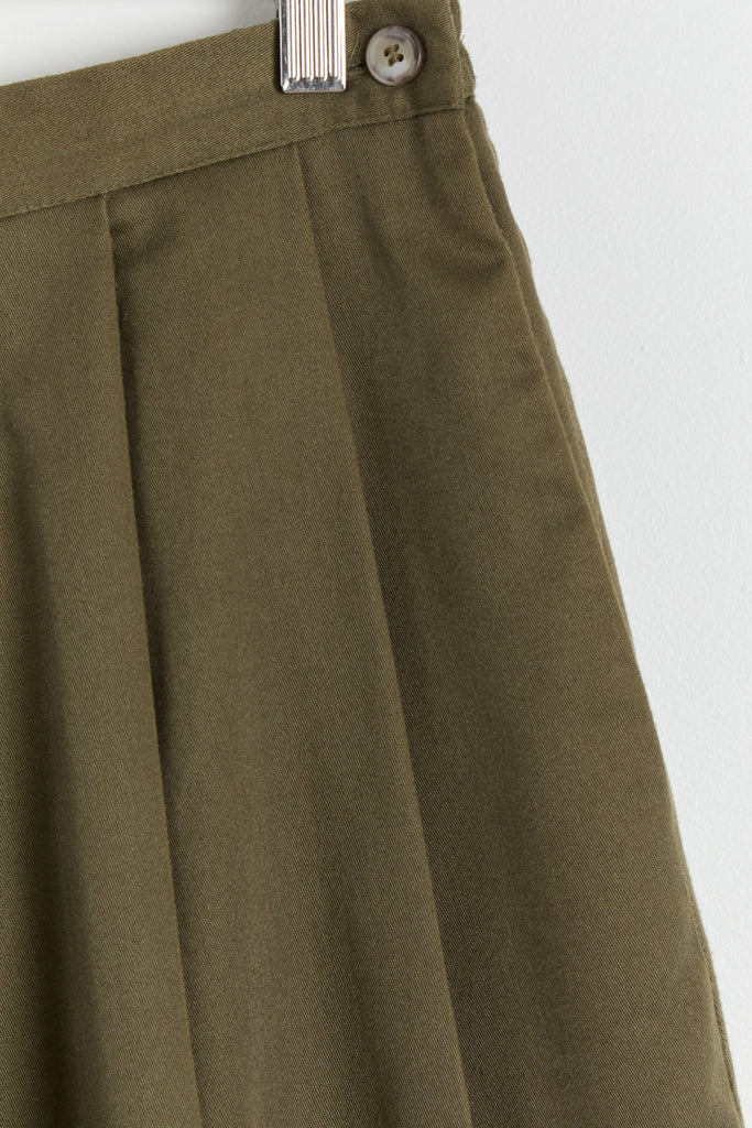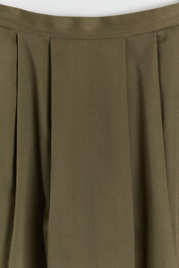 80s Olive Green Pleated Full Skirt L