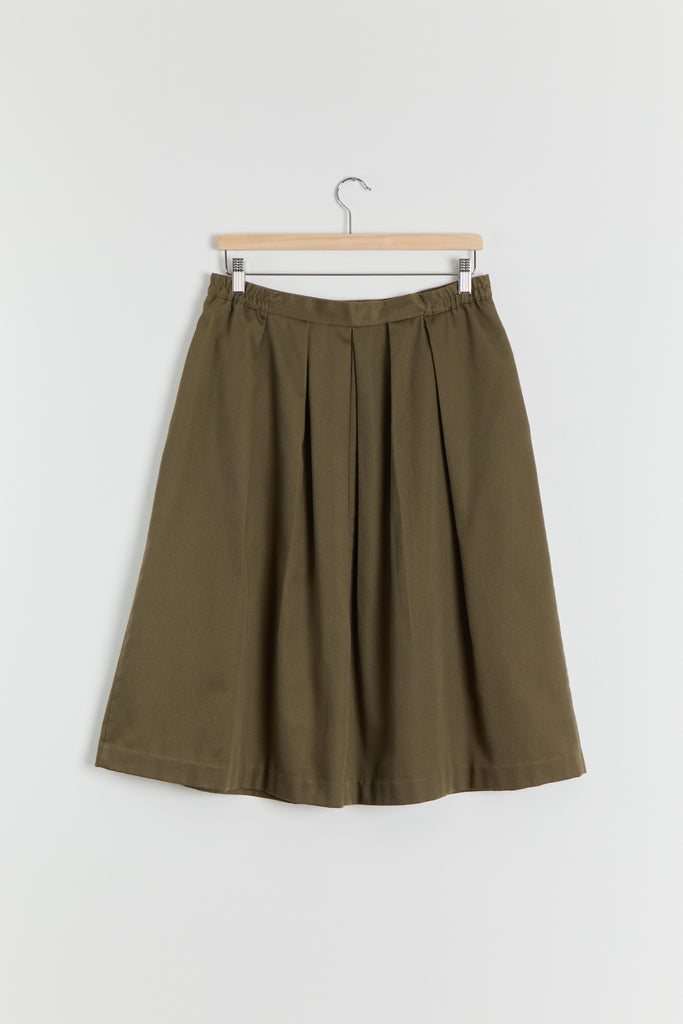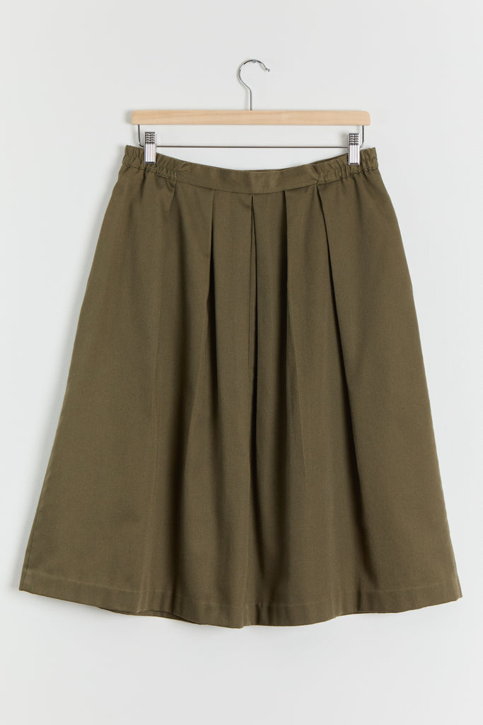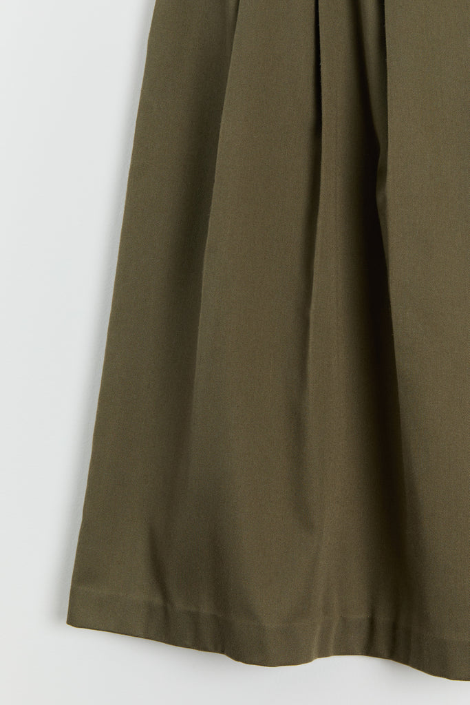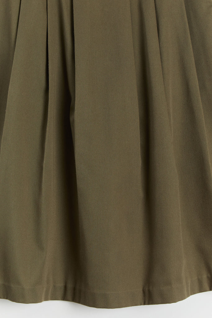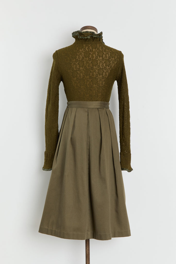 80s Olive Green Pleated Full Skirt L