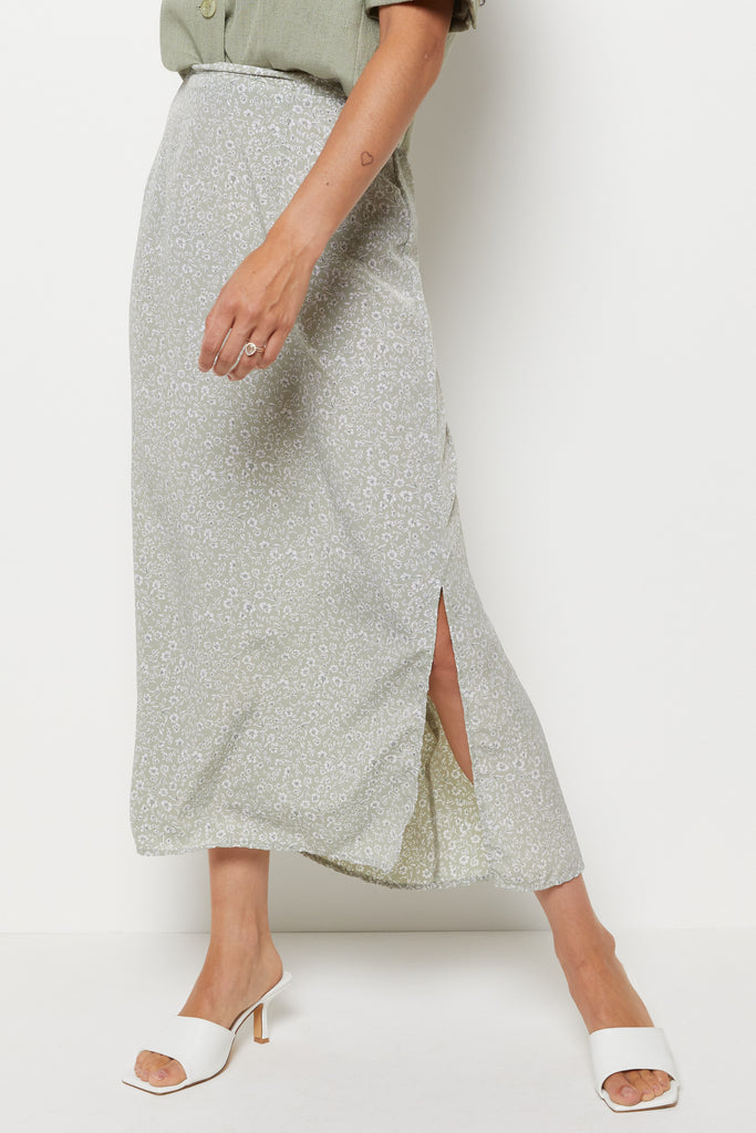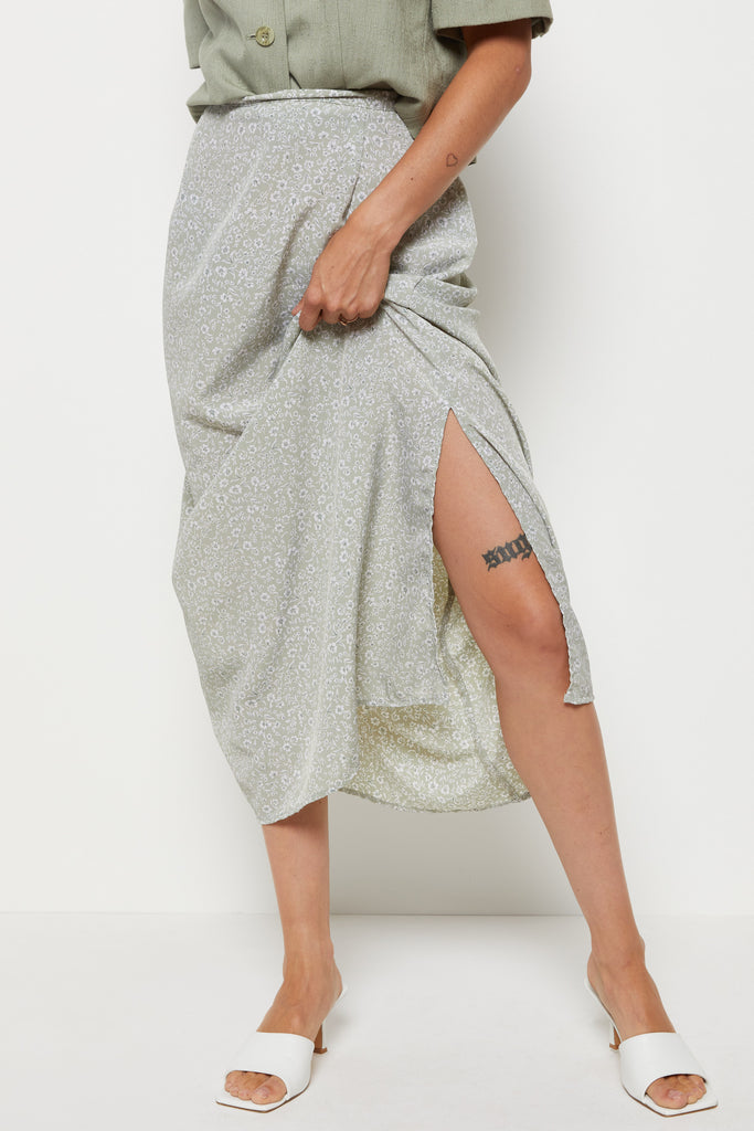 90s Sage Dust Ditsy Floral Skirt L/XL