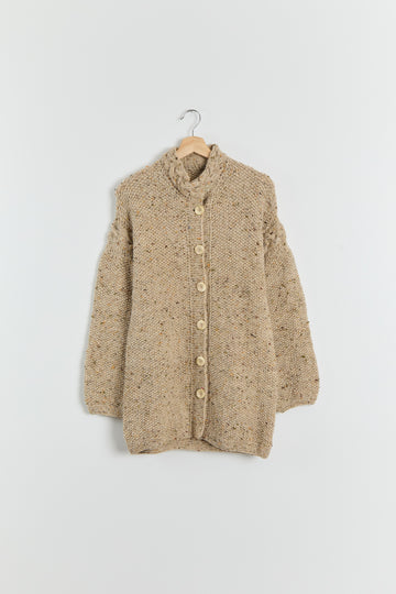 70s Beige Marled Chunky Knit Cardigan M