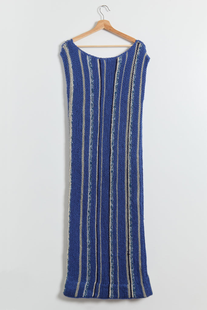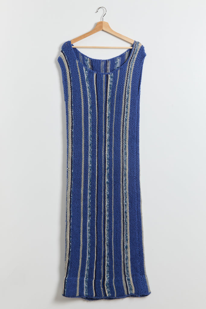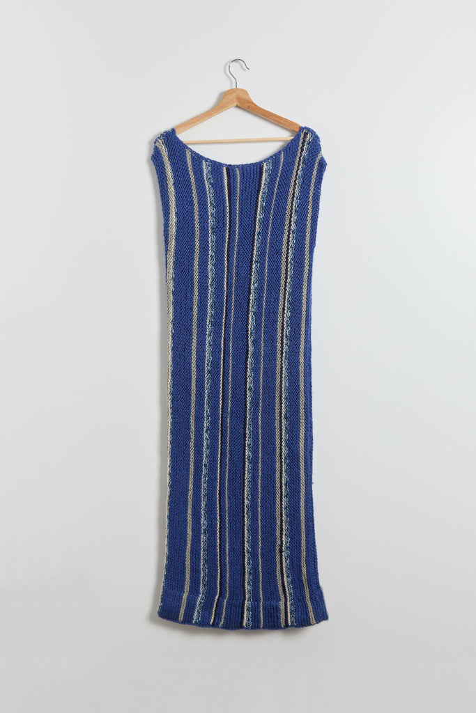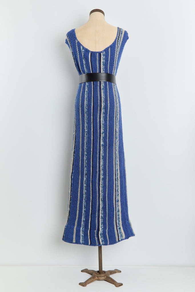 60s Blue Striped Hand Knit Sweater Dress S-L