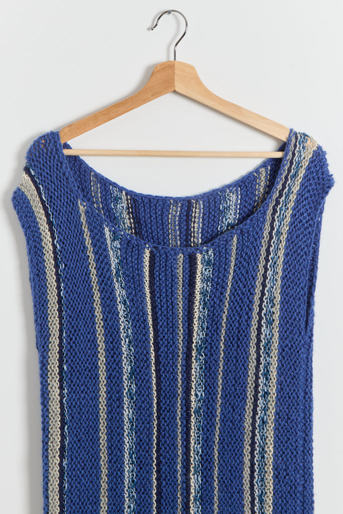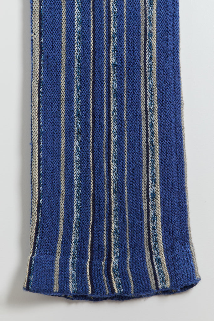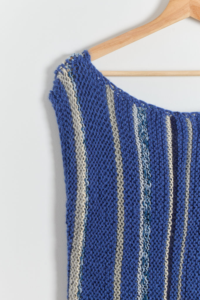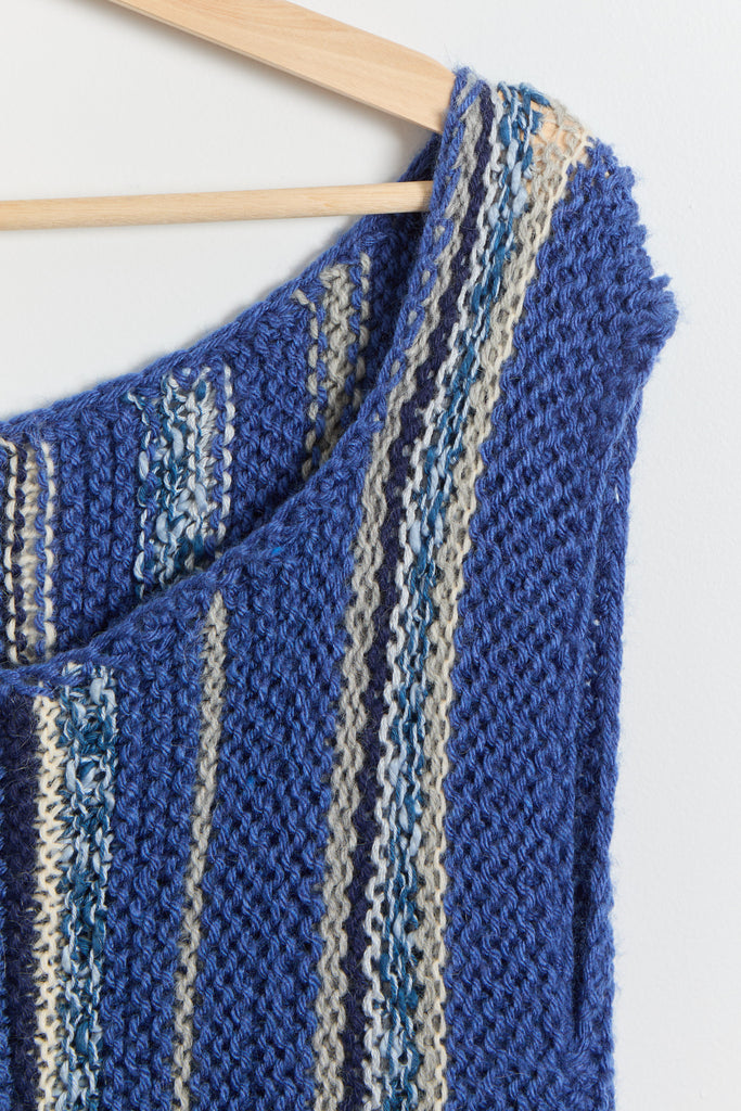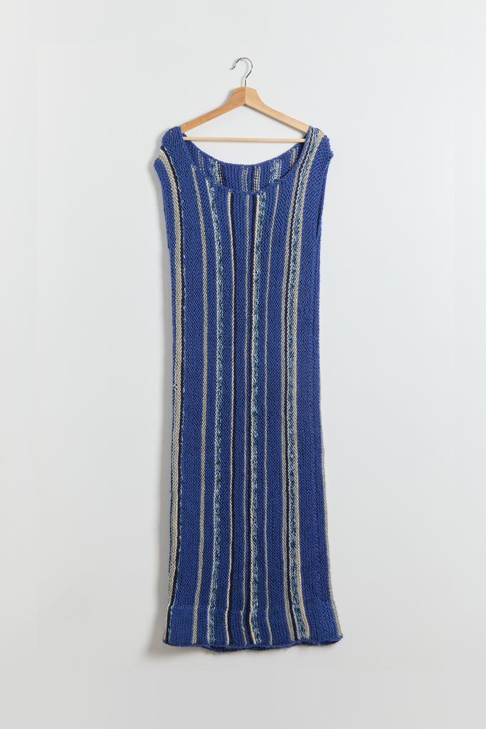 60s Blue Striped Hand Knit Sweater Dress S-L