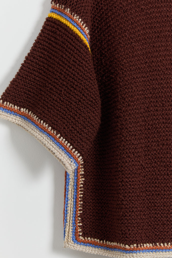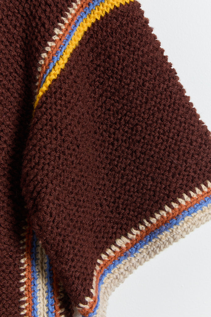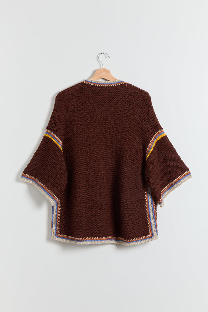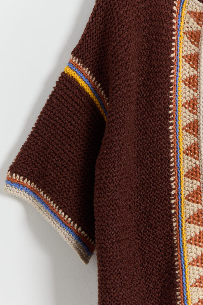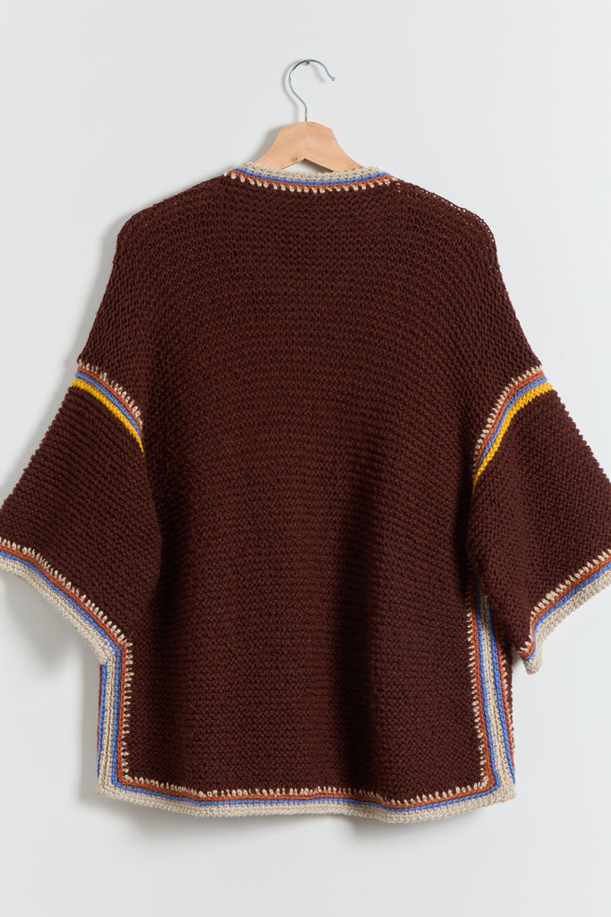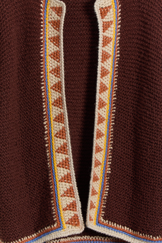 70s Brown Geo Trim Chunky Open Cardigan L/XL