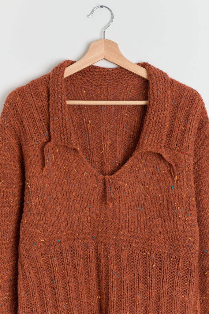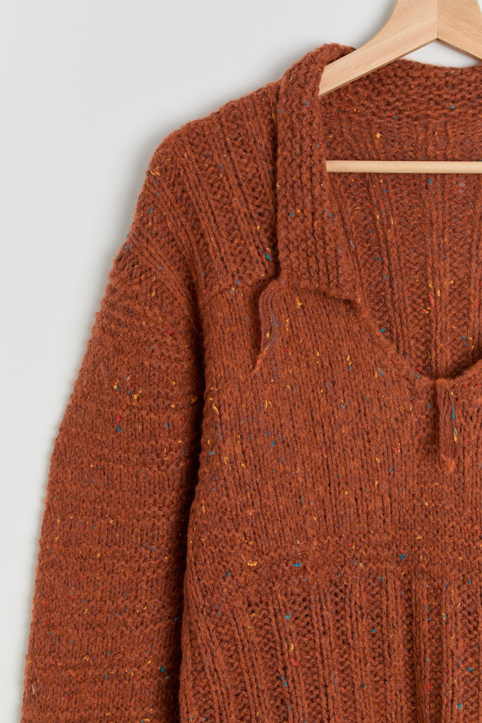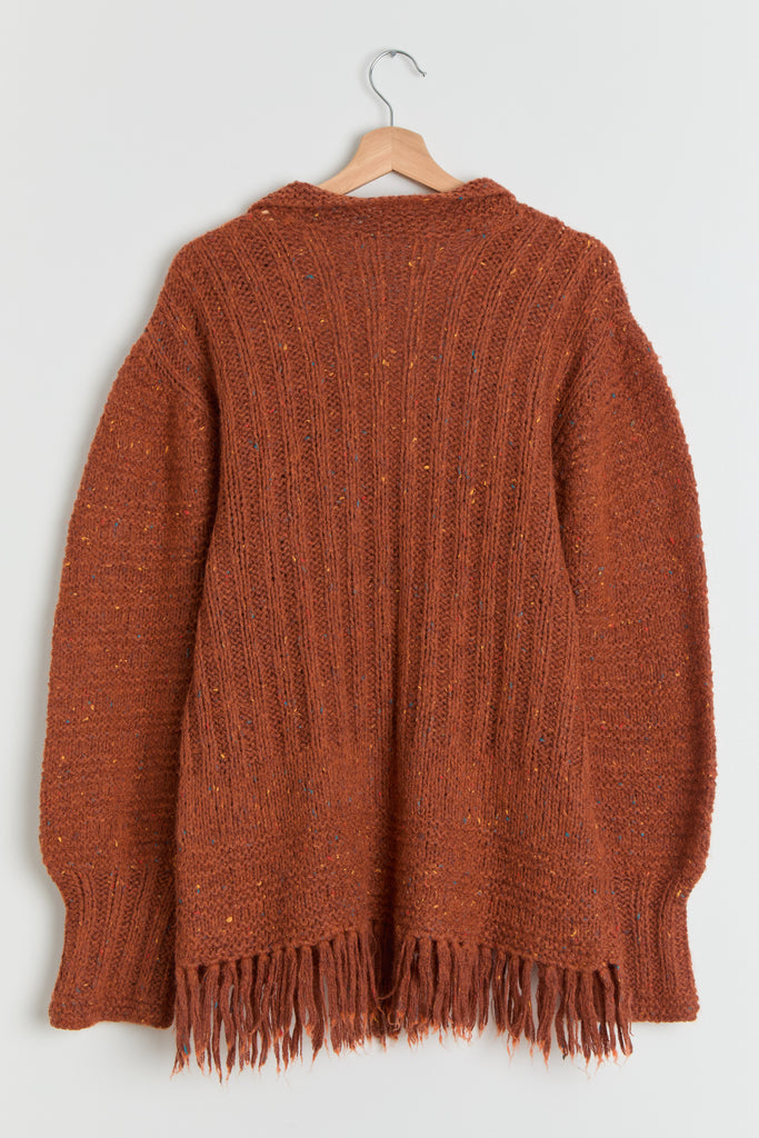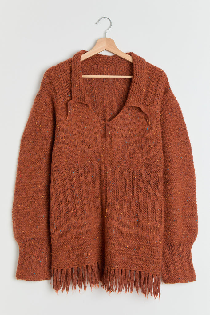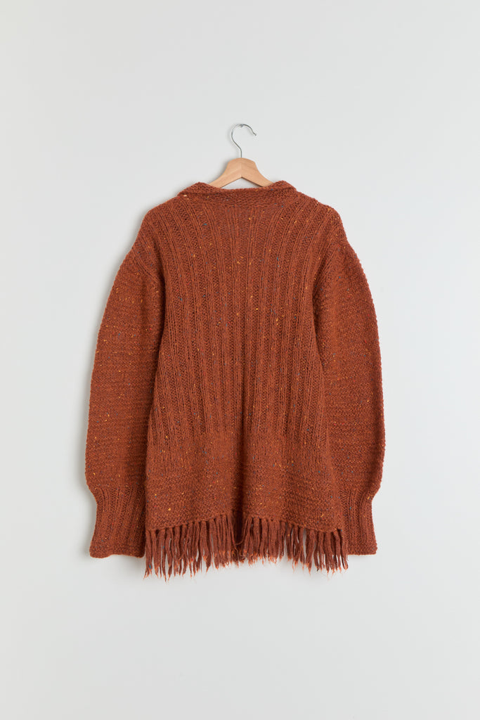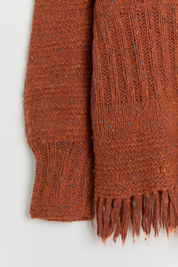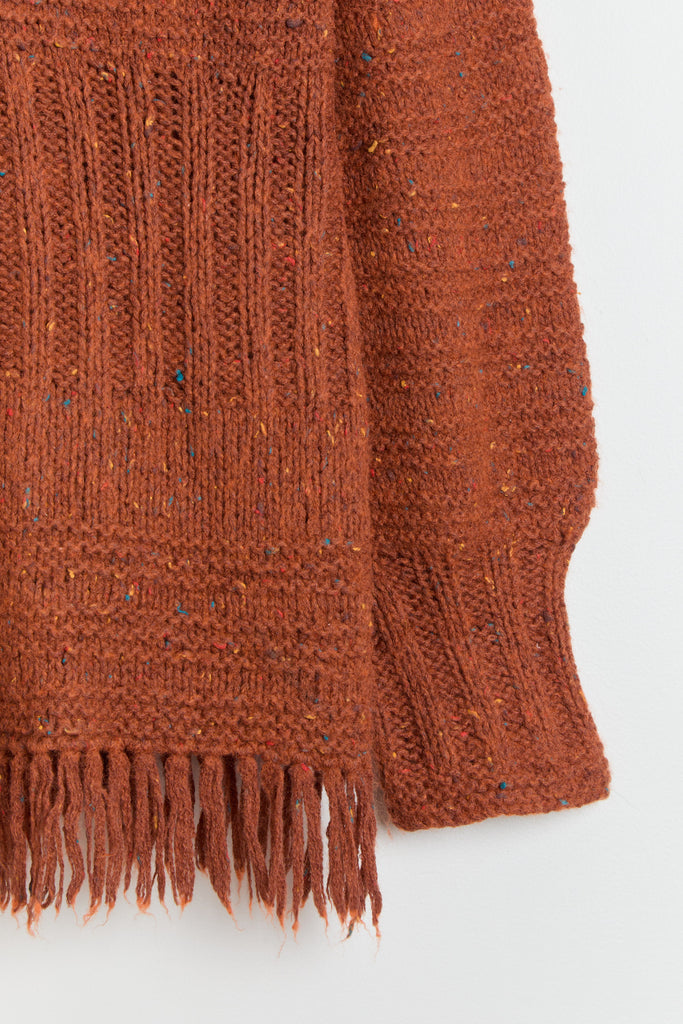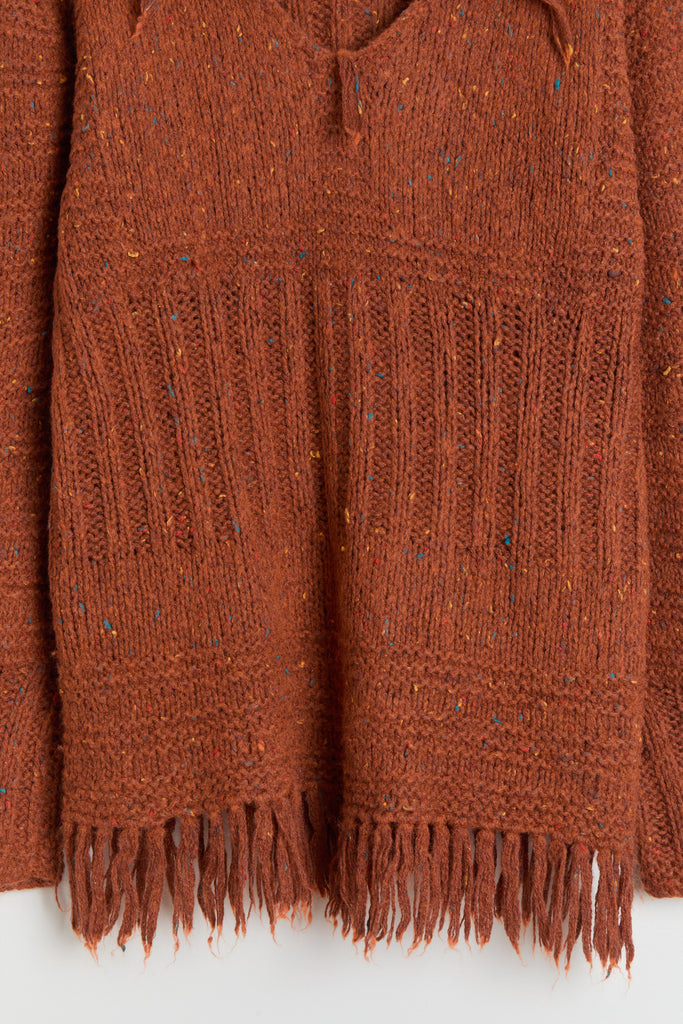 70s Burnt Orange Fringe Tunic Sweater XL