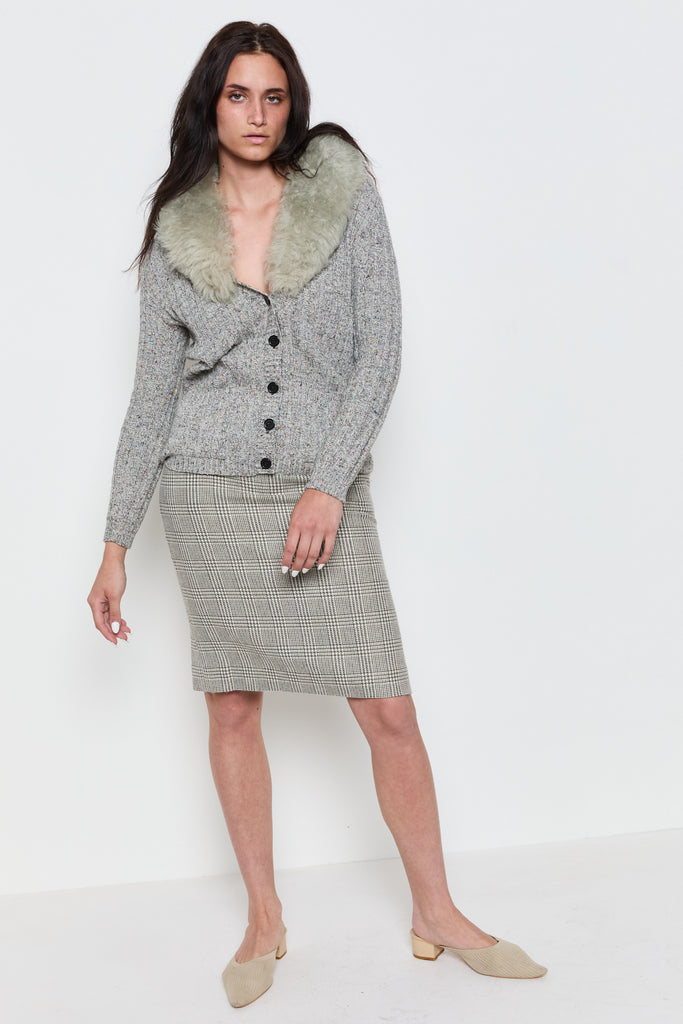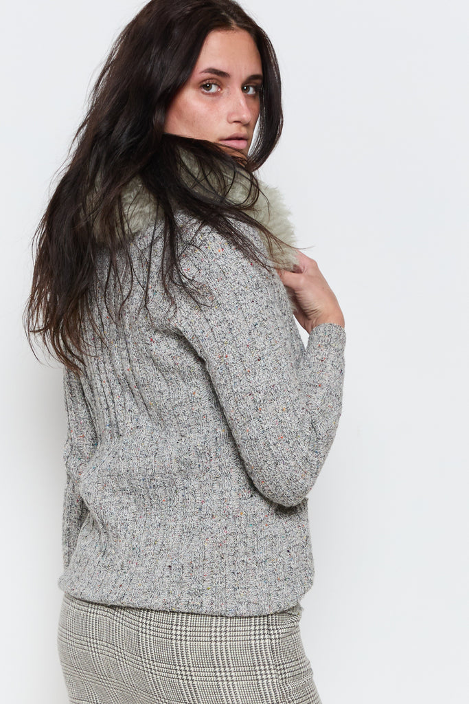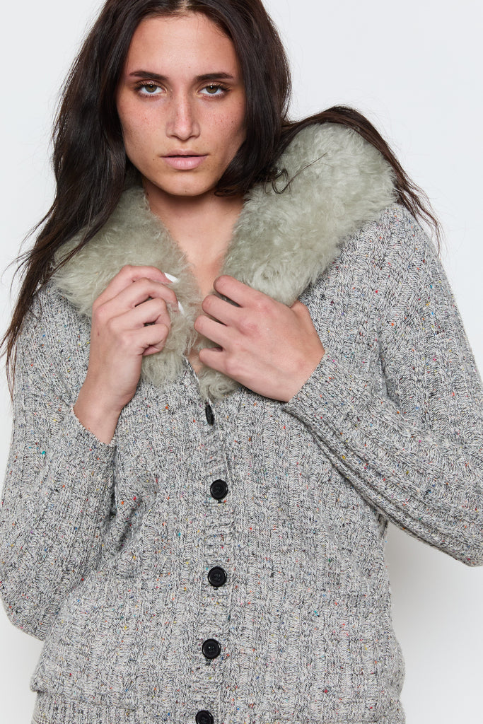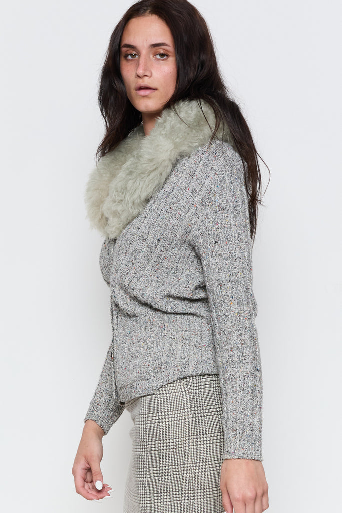 70s Marled Grey Sherpa Collar Cardigan M