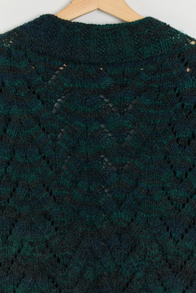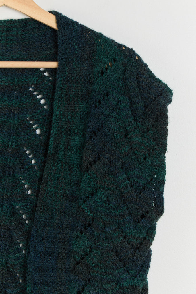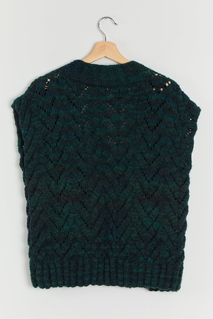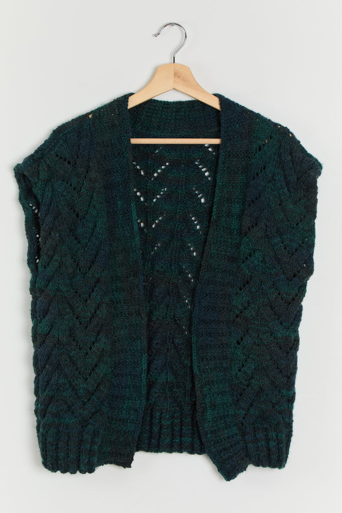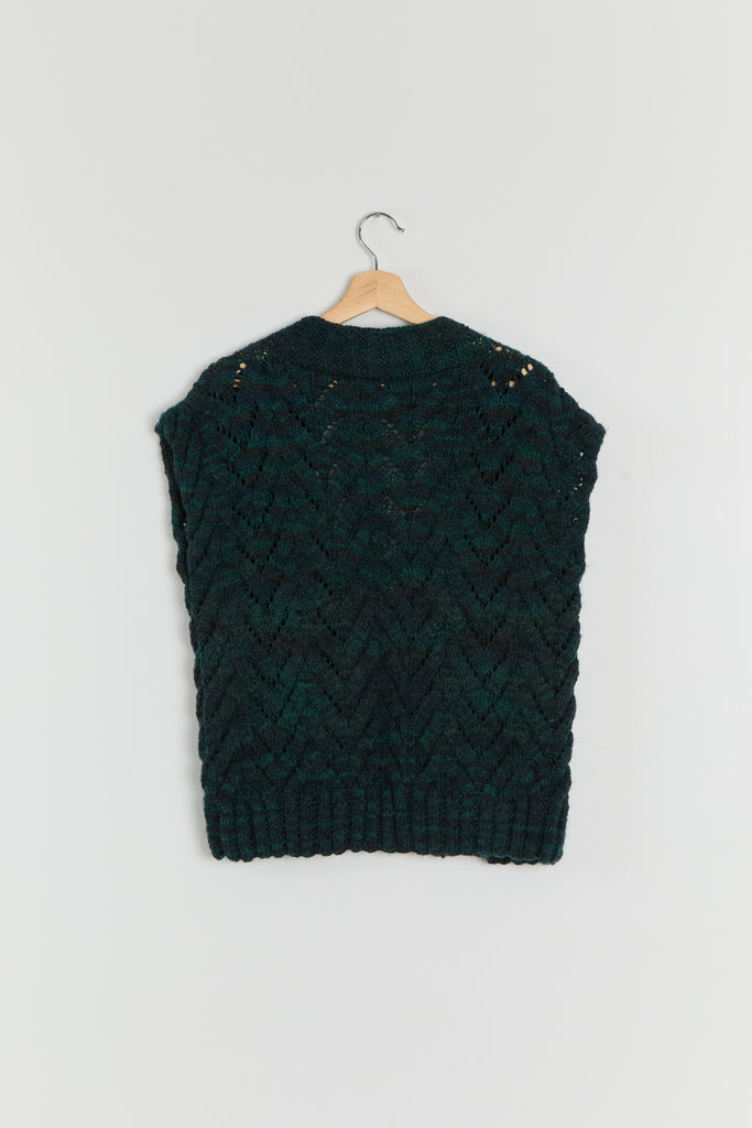 80s Forest Green Marled Open Front Sweater Vest M/L