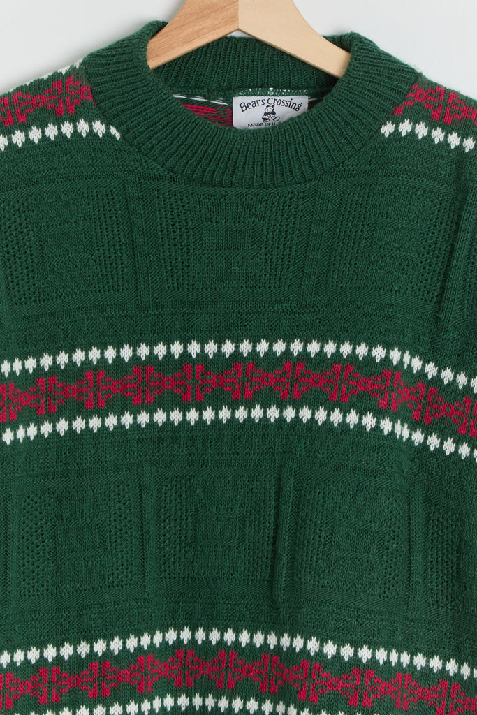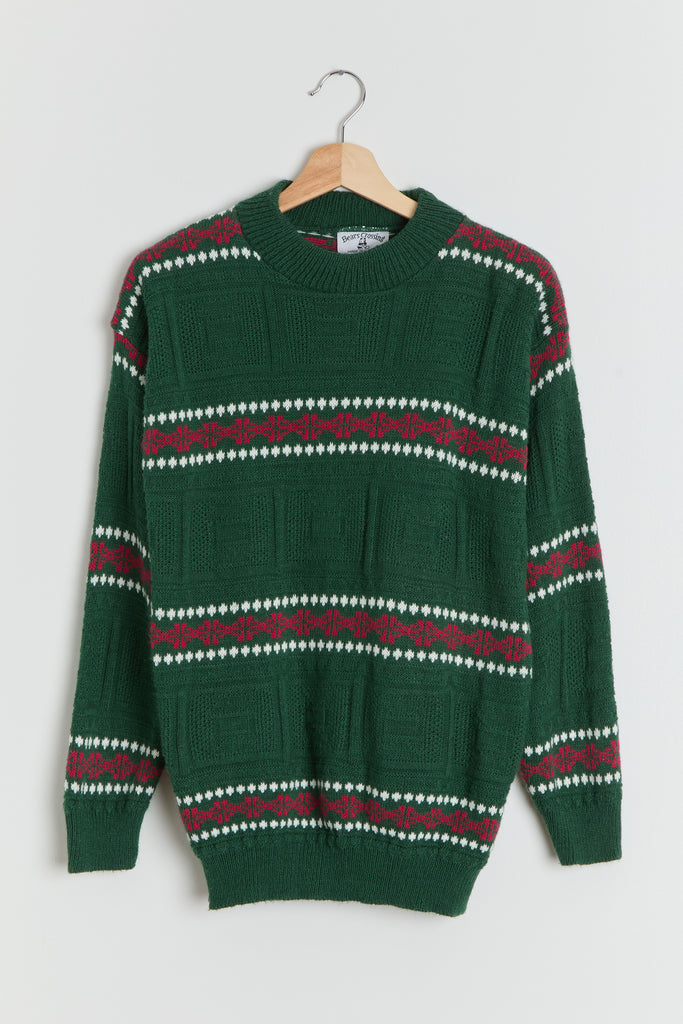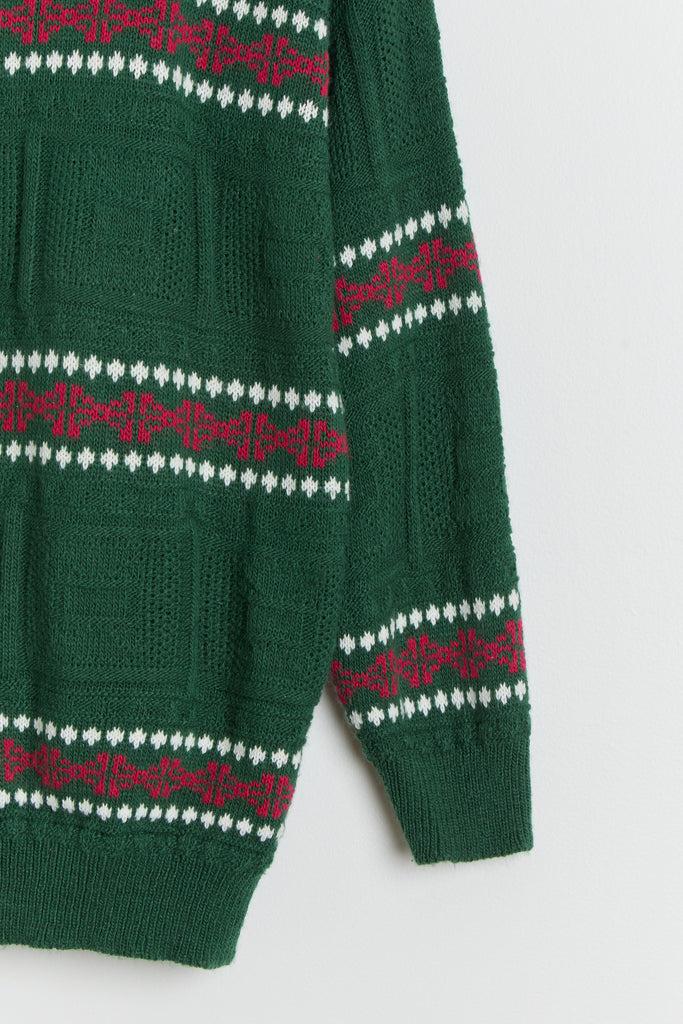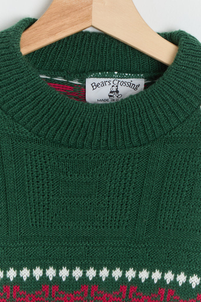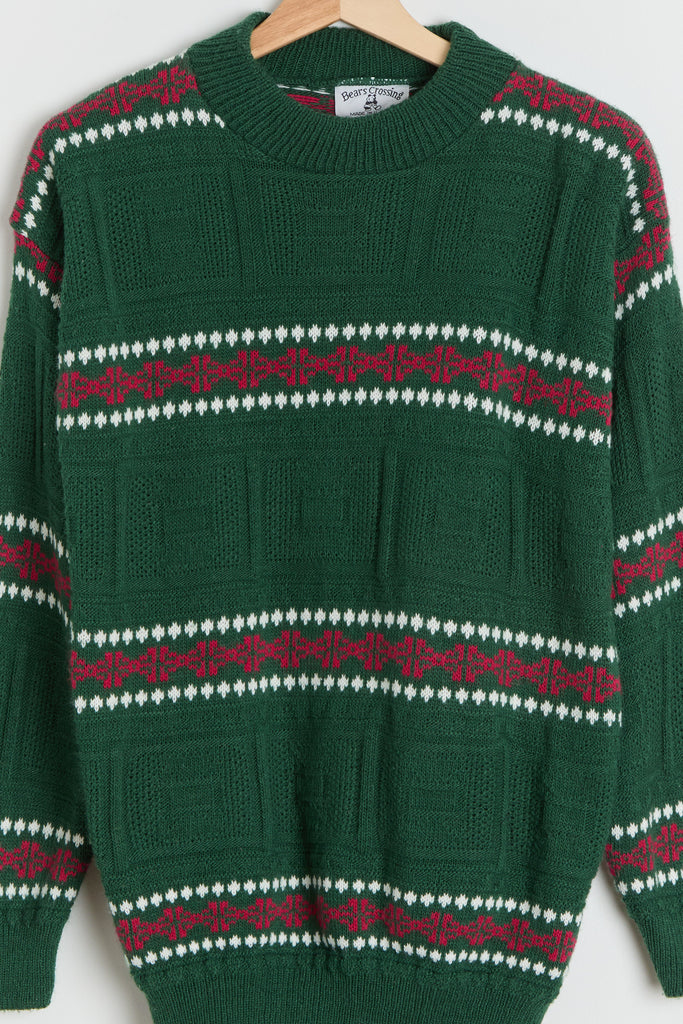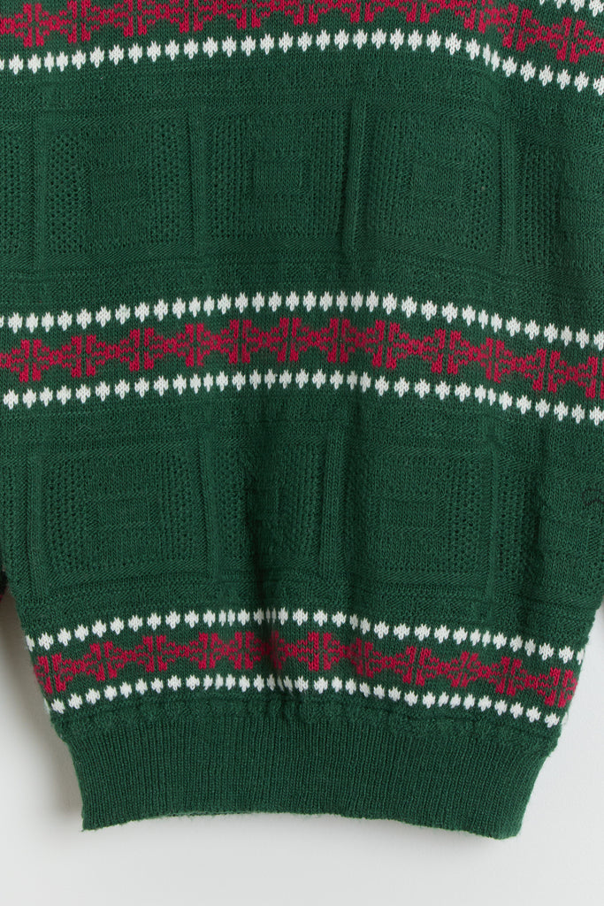 80s Hunter Green Fair Isle Stripe Crew Sweater M/L