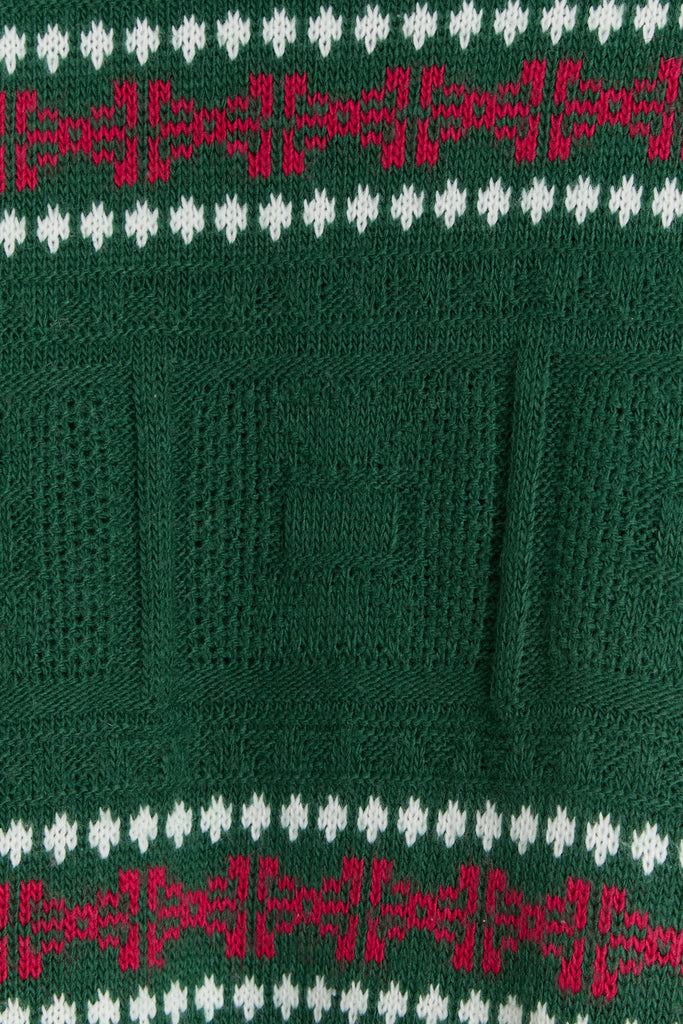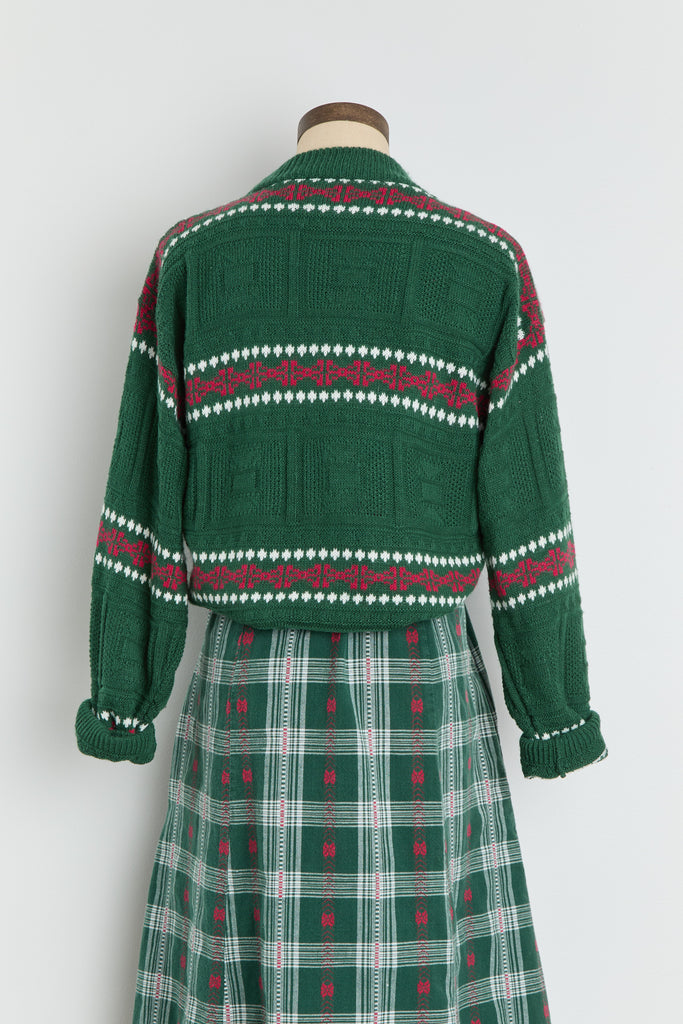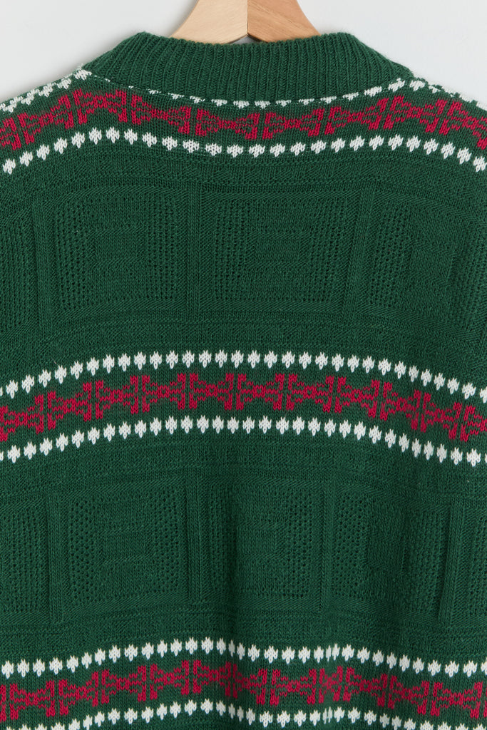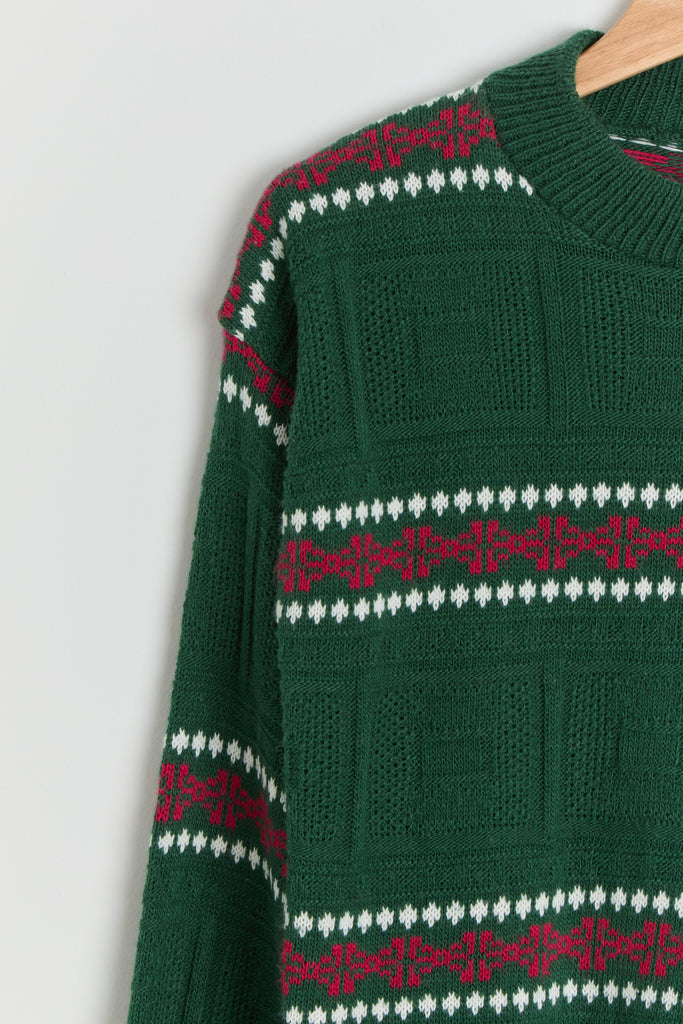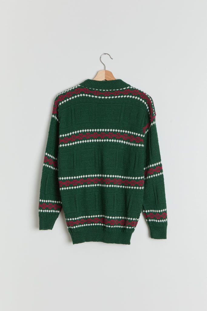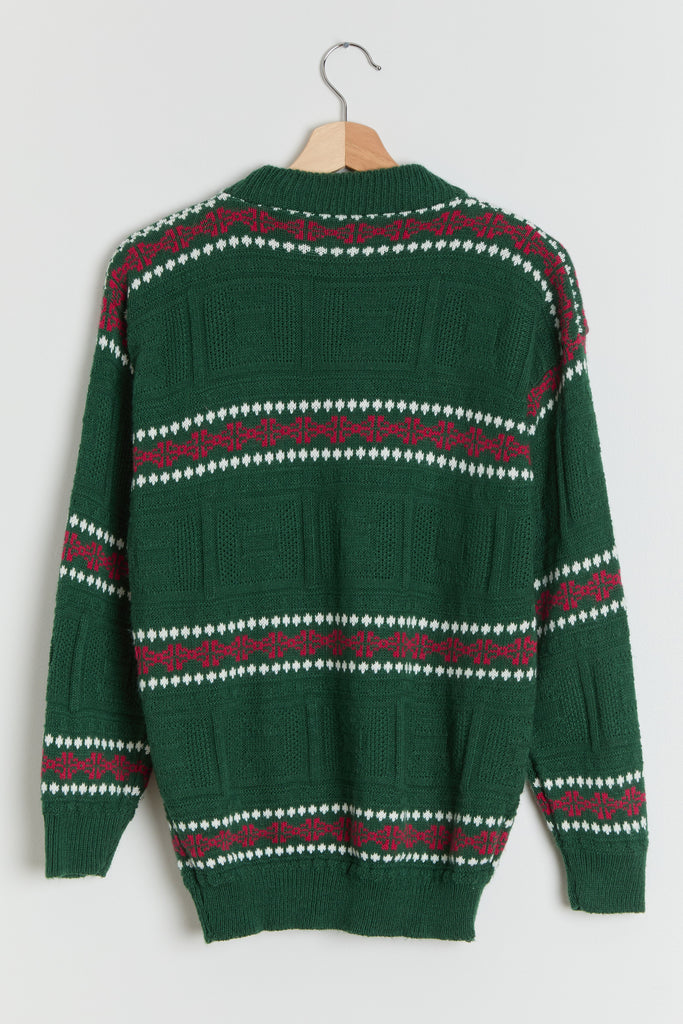 80s Hunter Green Fair Isle Stripe Crew Sweater M/L