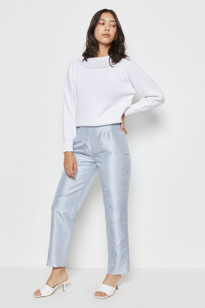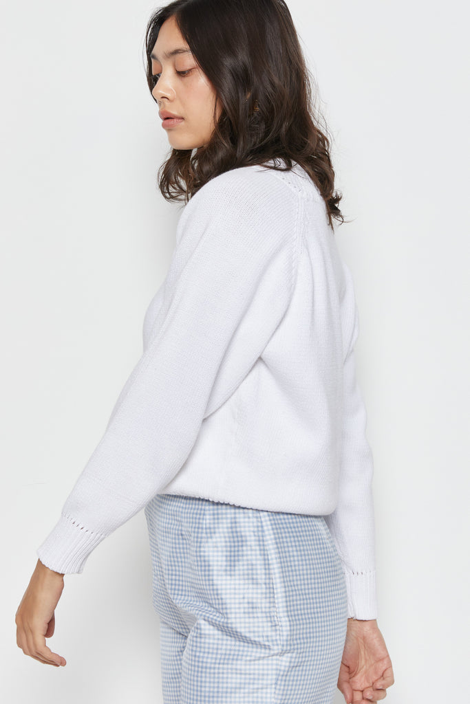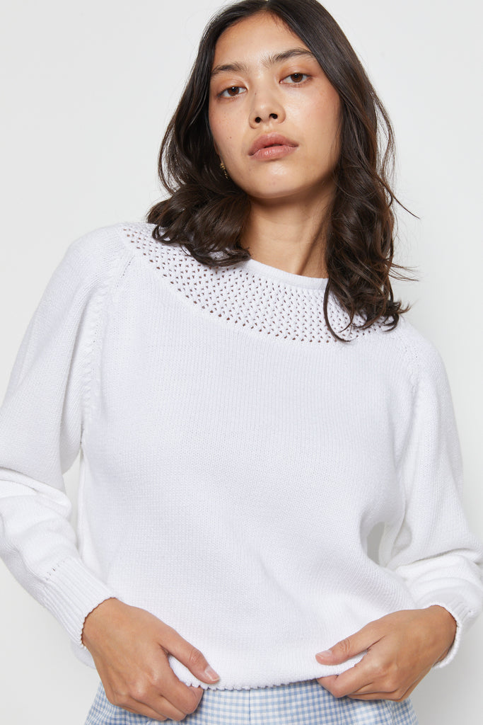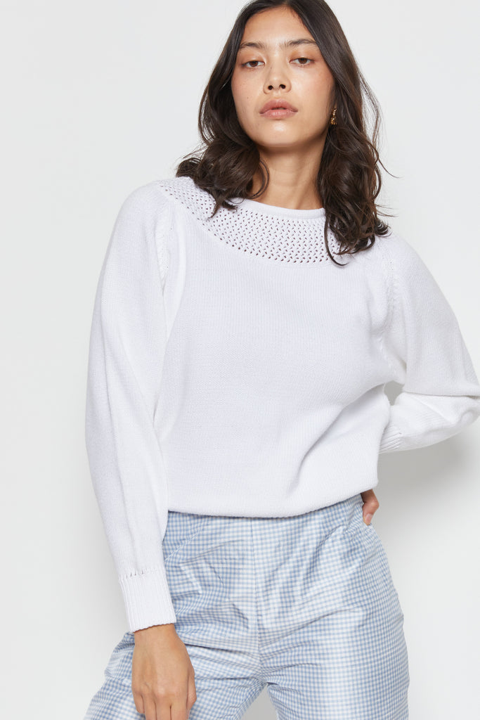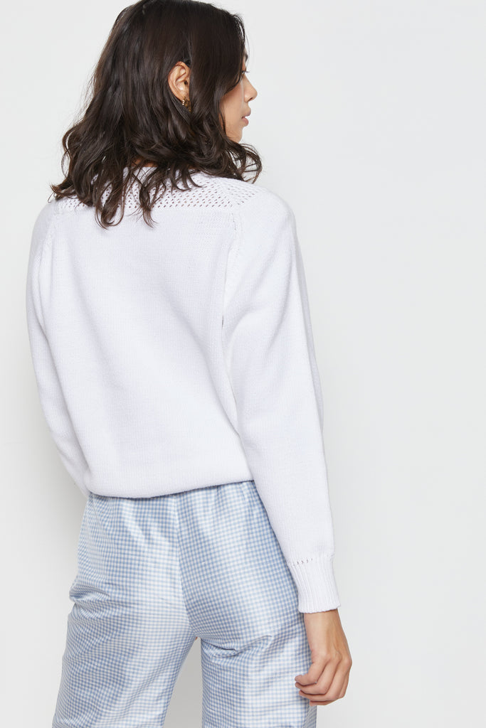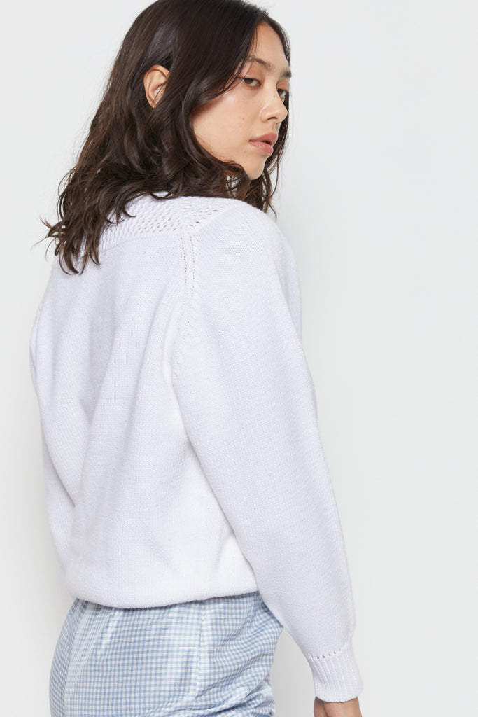 80s White Open Knit Yolk Sweater M