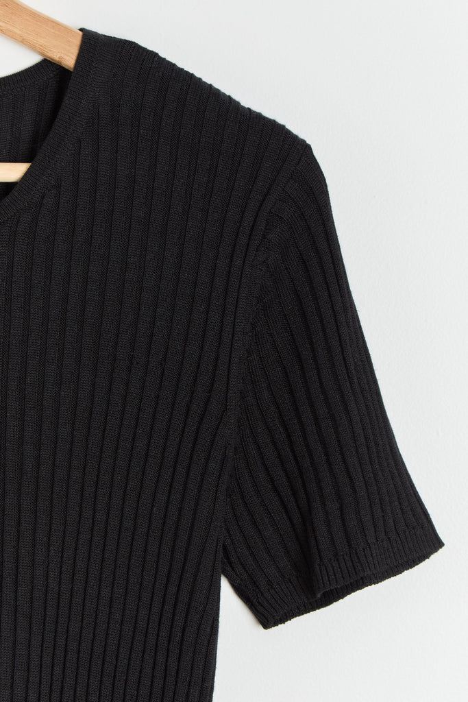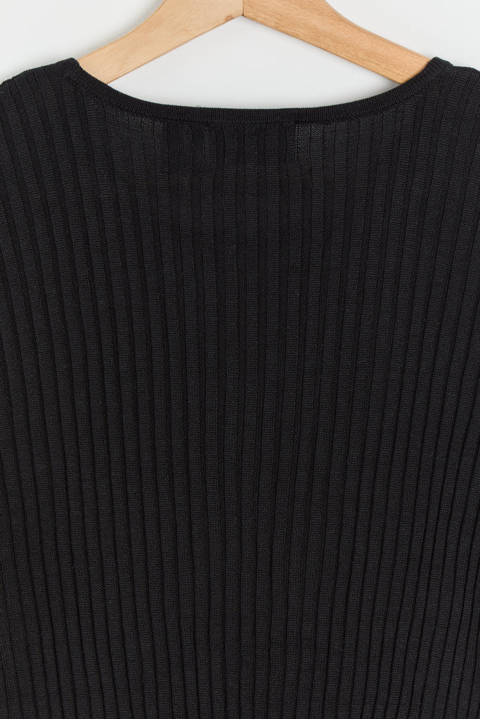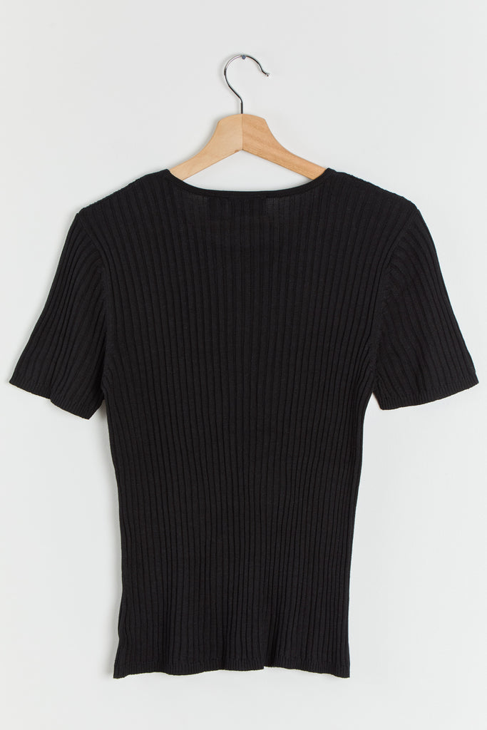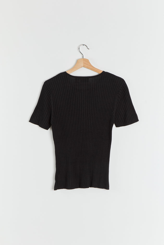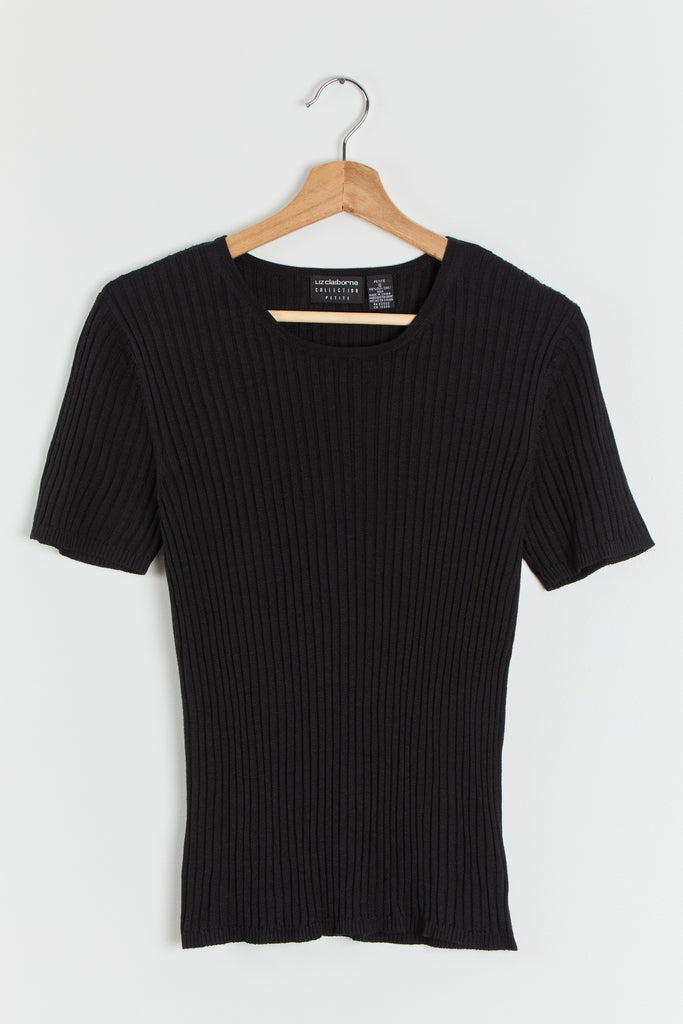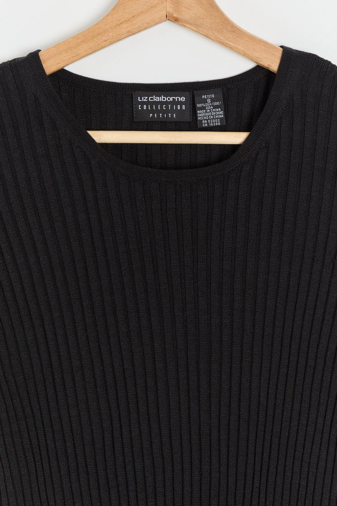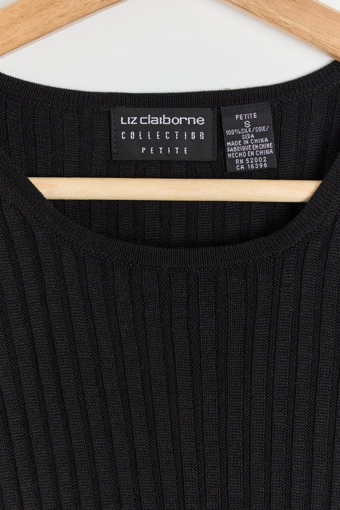 90s Black Silk Rib Knit Top M