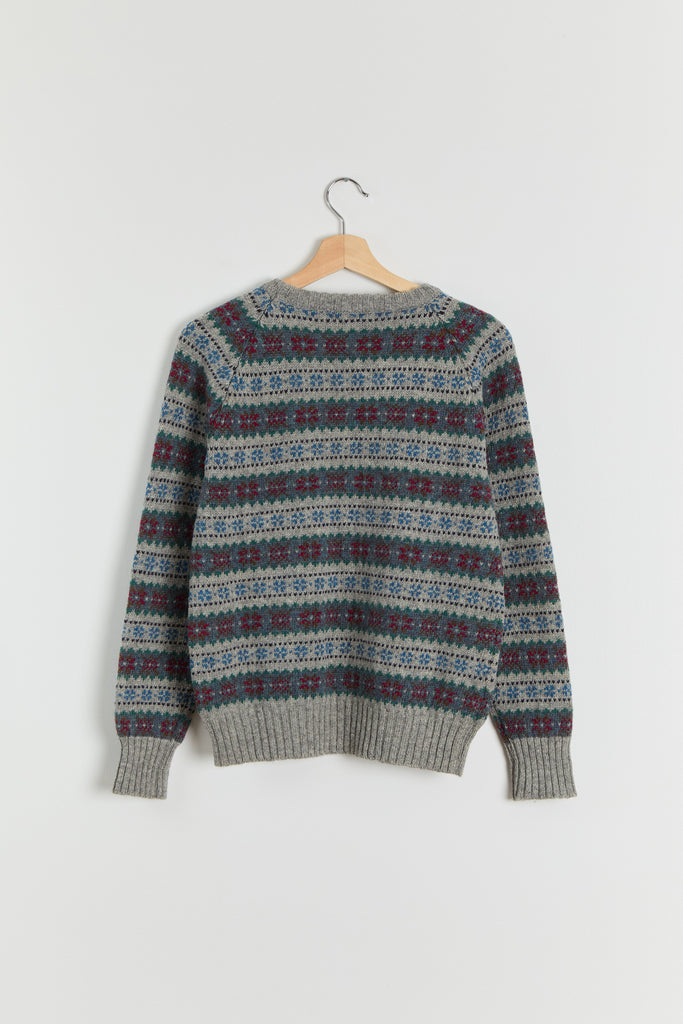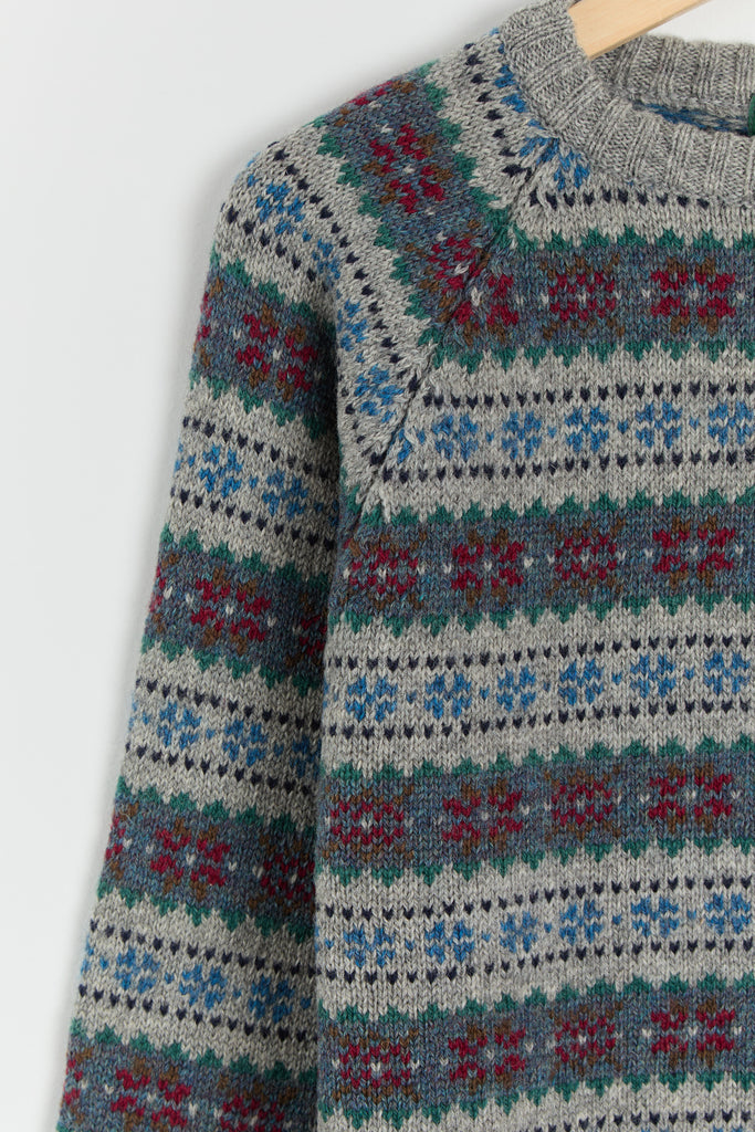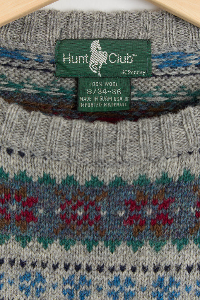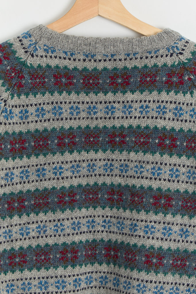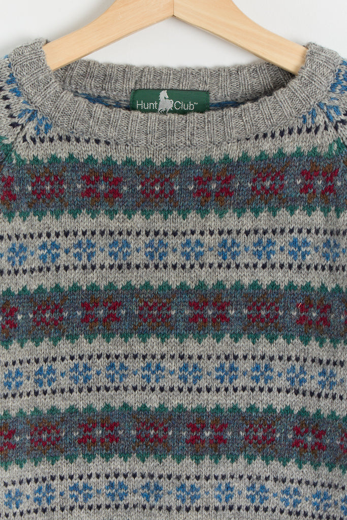 90s Grey Wool Fair Isle Crew Neck Sweater M
