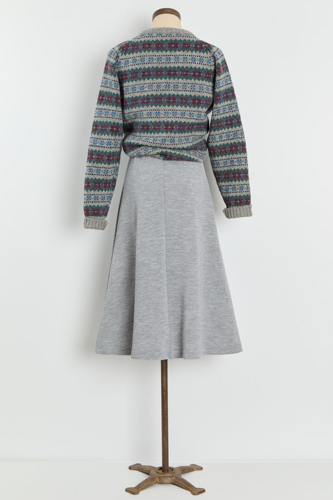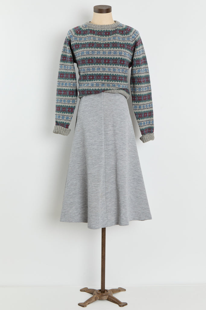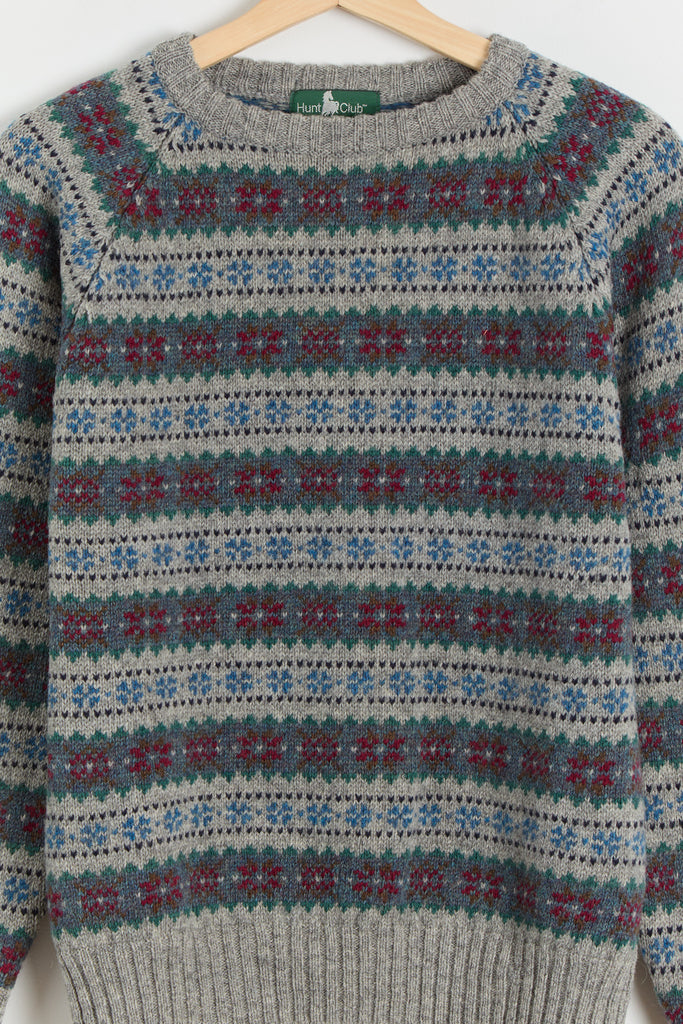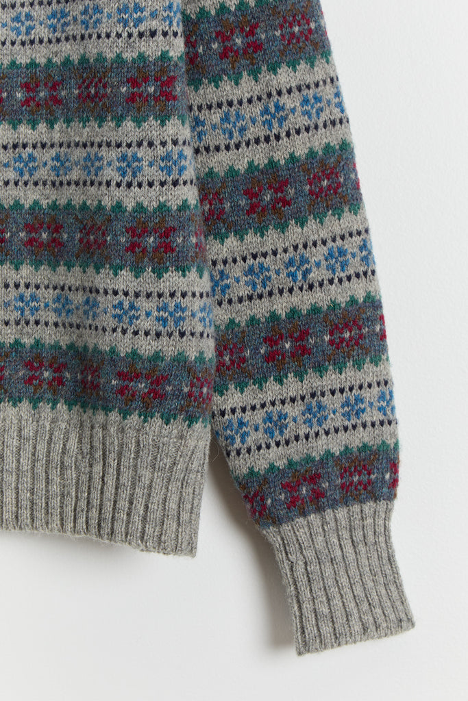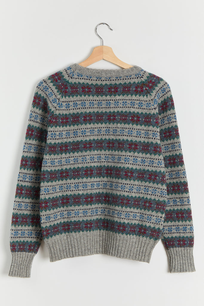 90s Grey Wool Fair Isle Crew Neck Sweater M