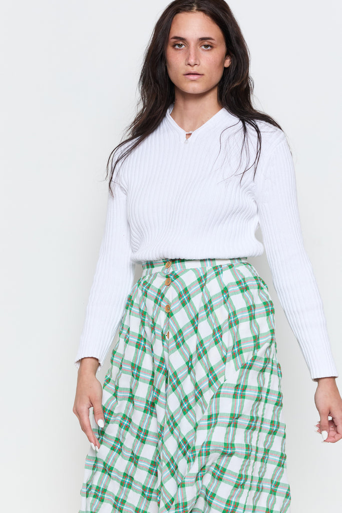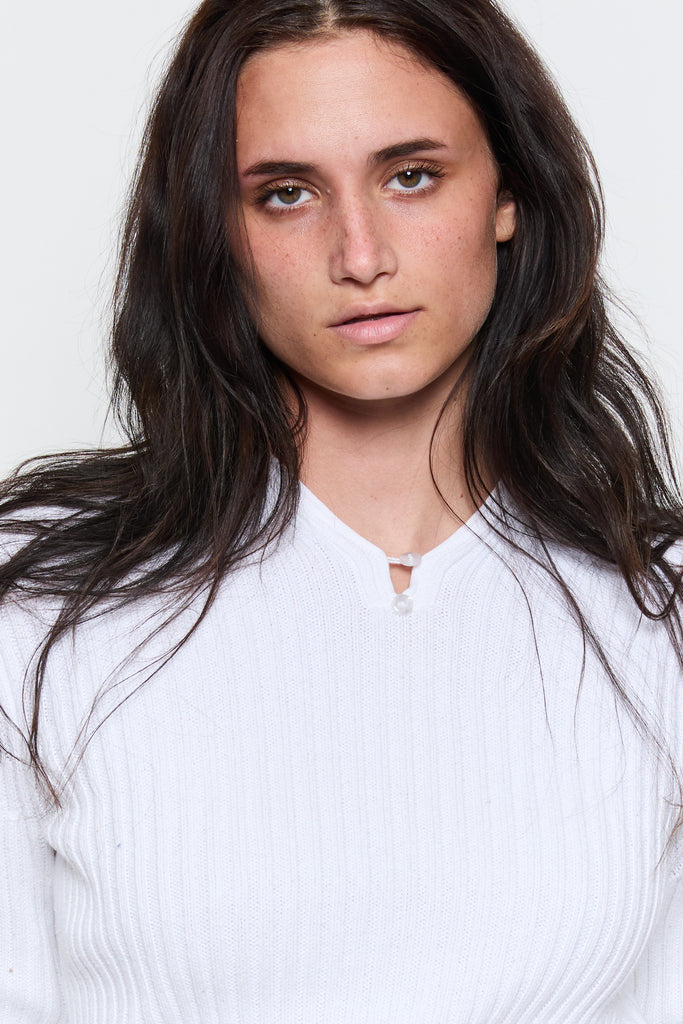 90s White Henley Ribbed Knit Sweater Top M