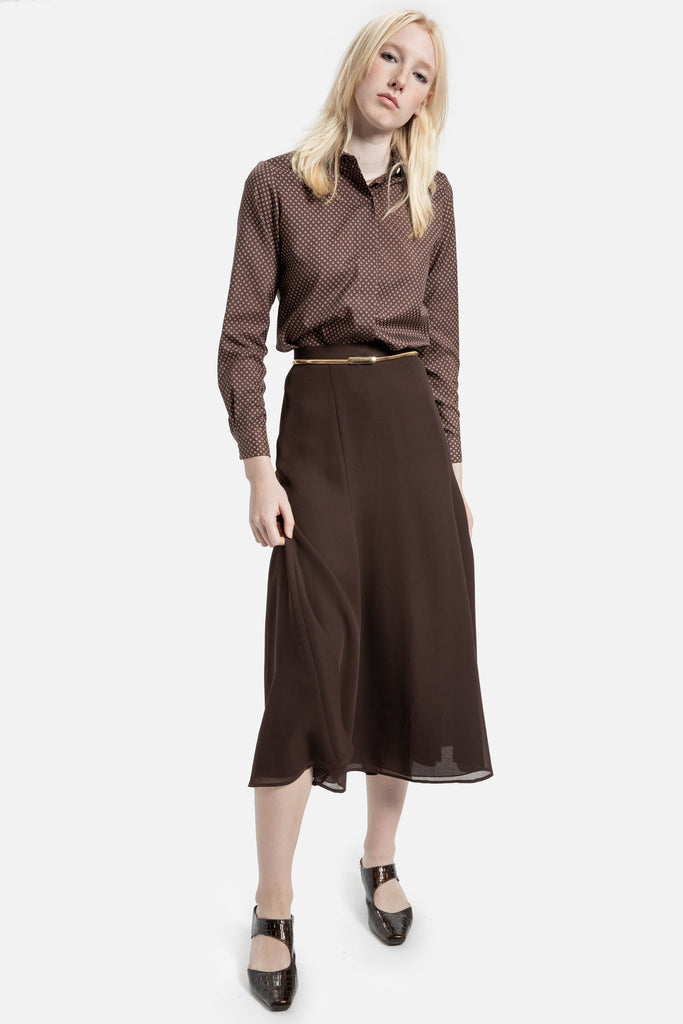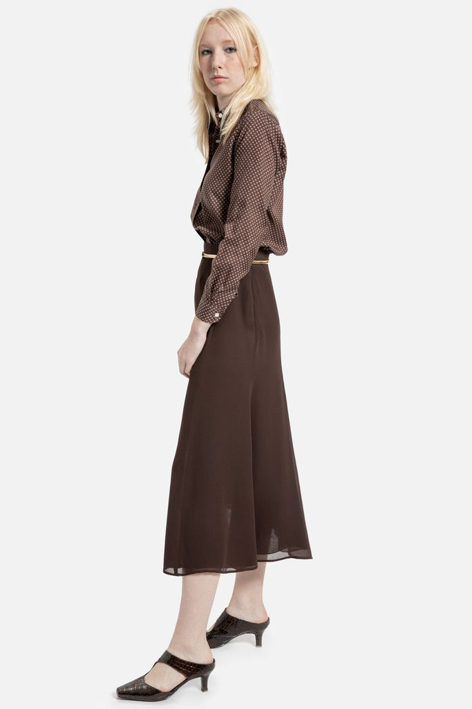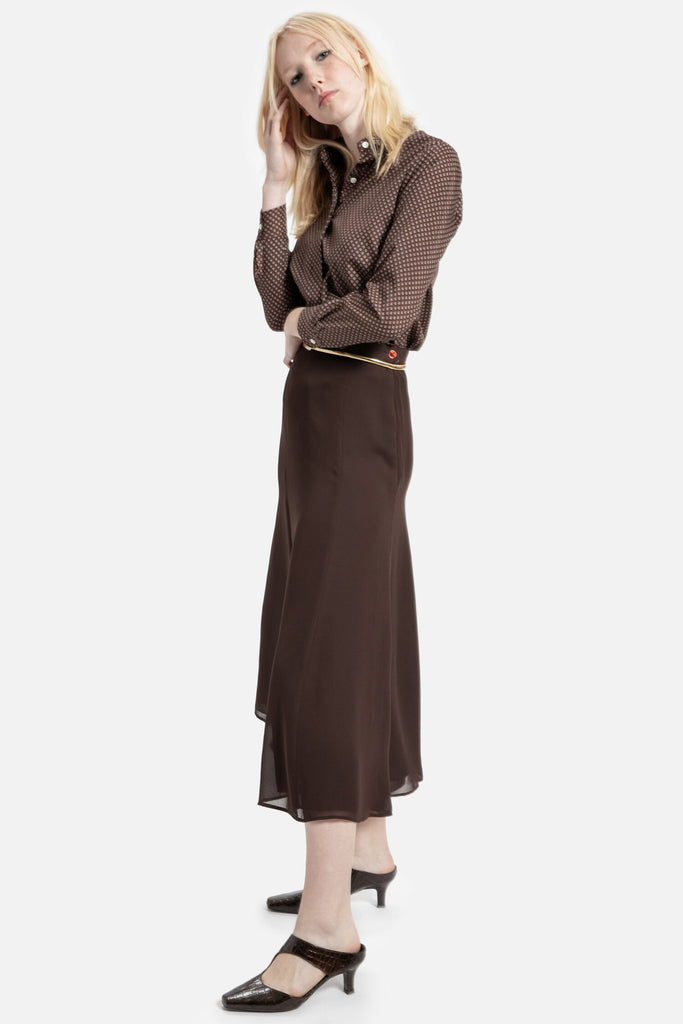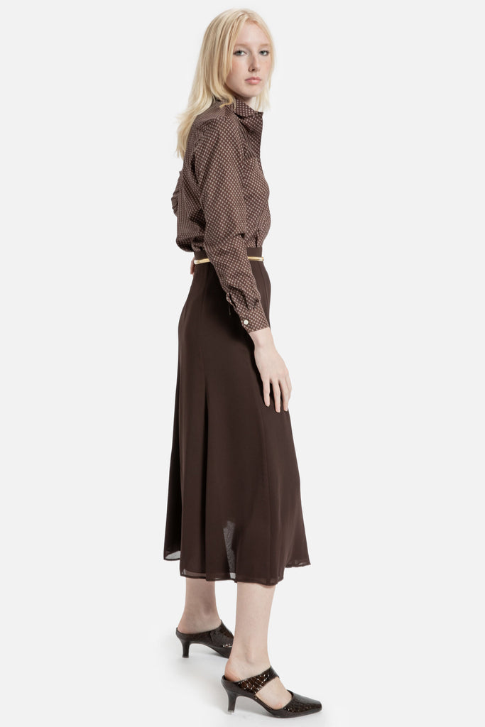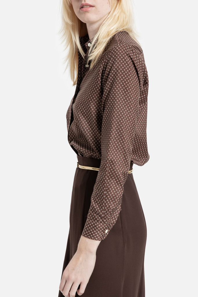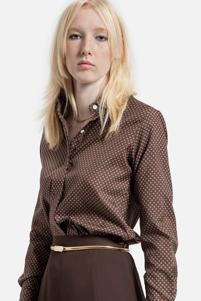 70s Brown Diamond Print Blouse S