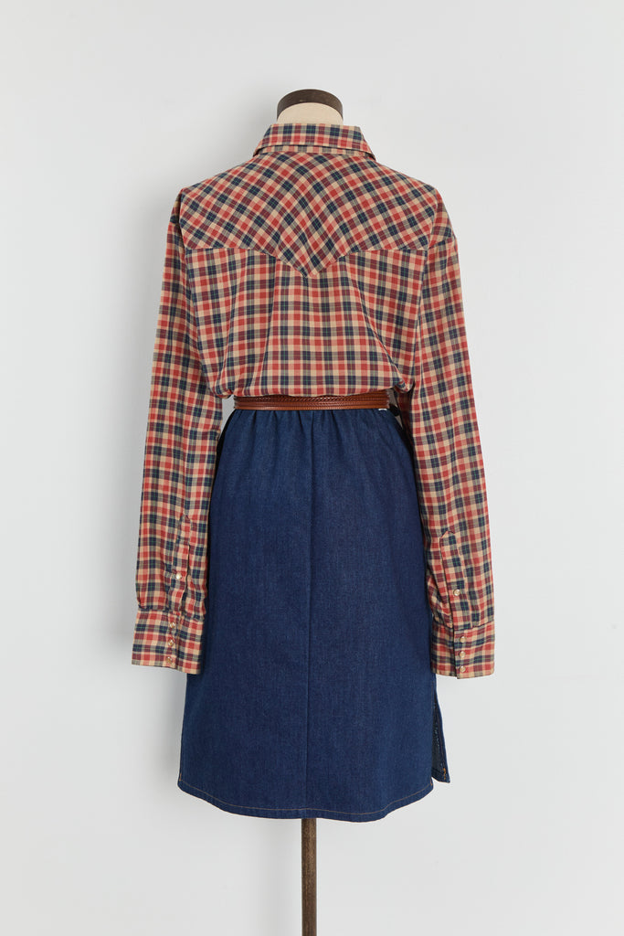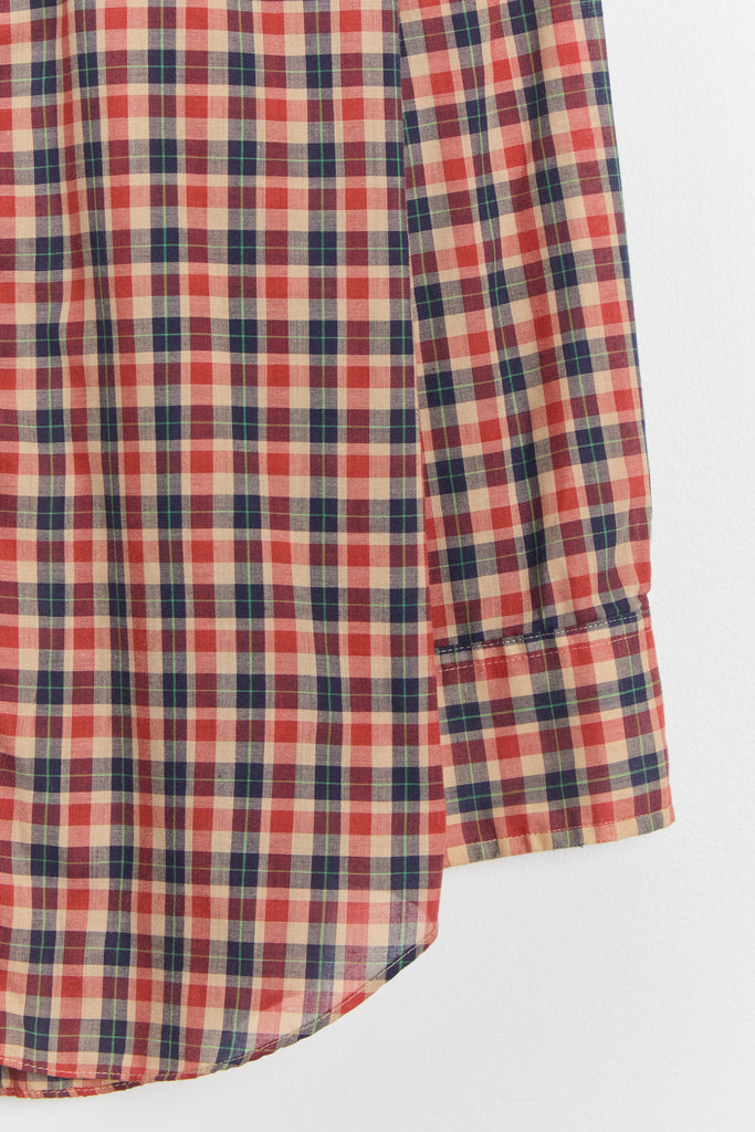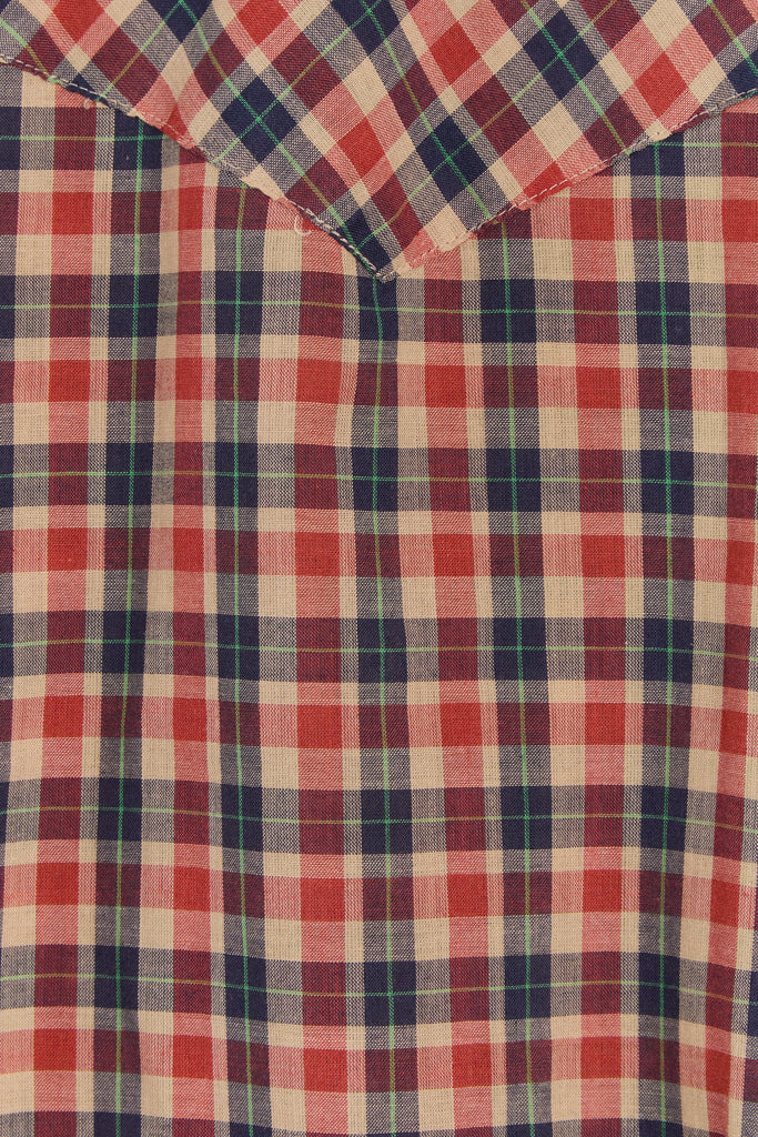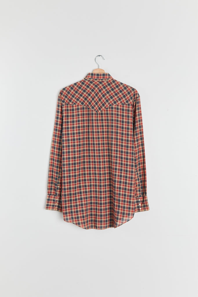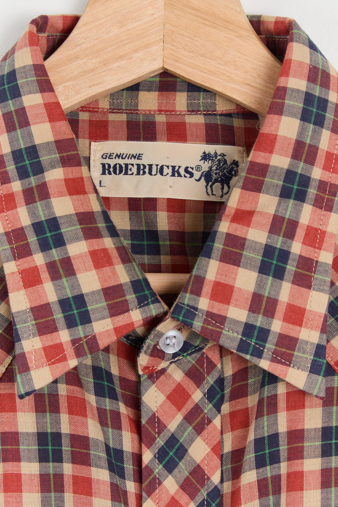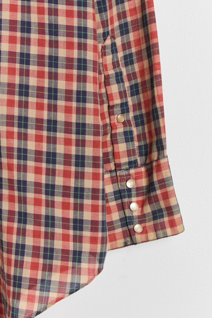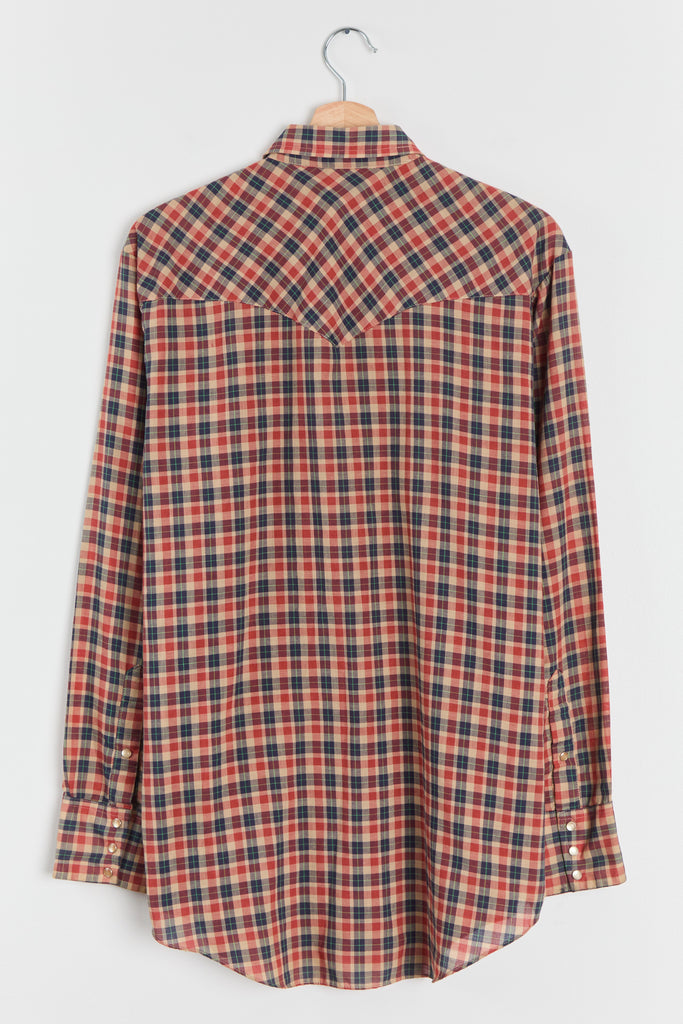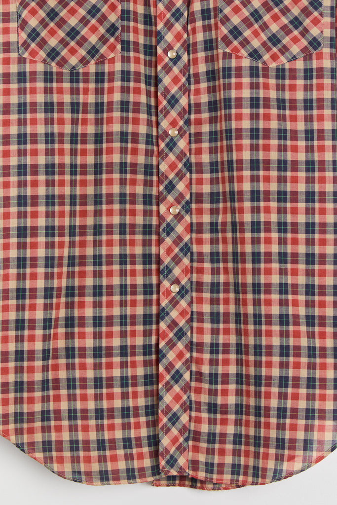 70s Red Navy Plaid Western Pearl Snap Shirt L/XL