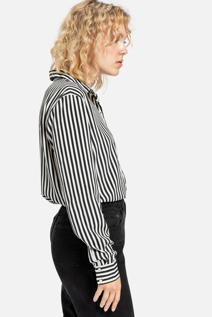 FIT / Would look great on smaller sizes for an oversized fit. For reference, model is 5’7 and wears a size 0/2