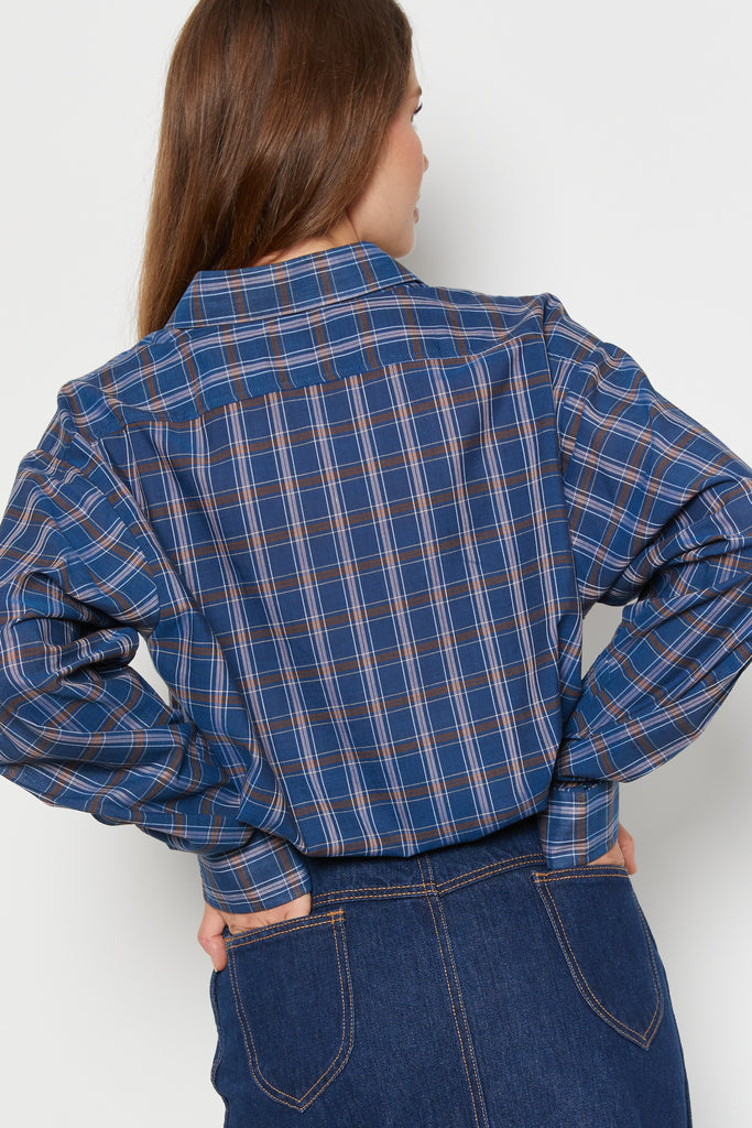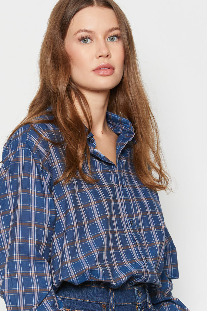 90s Blue Plaid Button Down XL