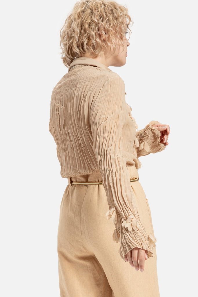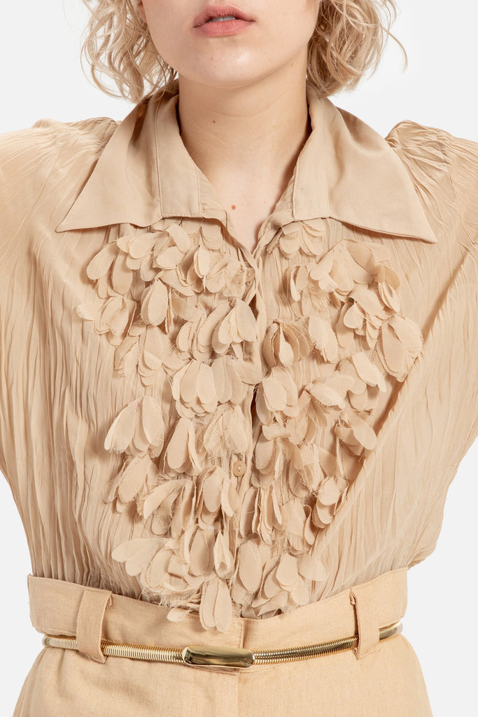 90s Camel 3D Floral Blouse M