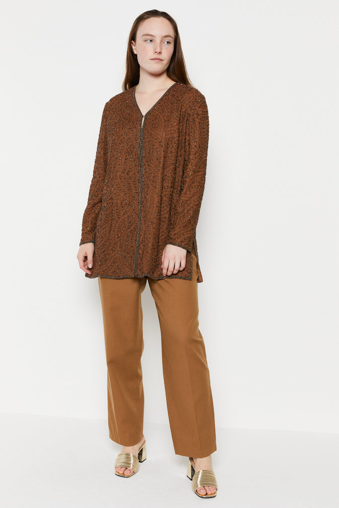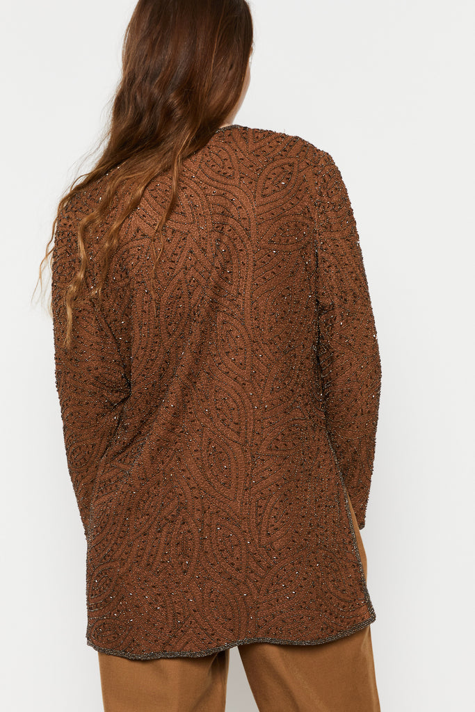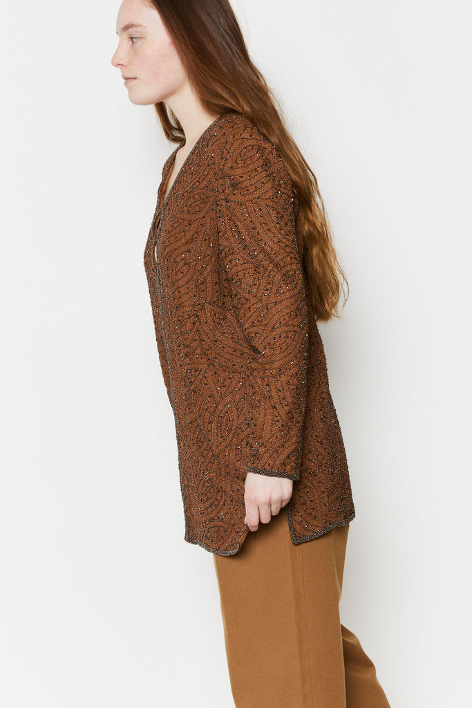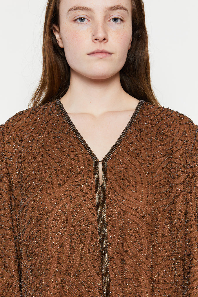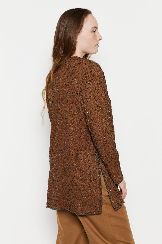 80s Cocoa Beaded Silk Tunic L