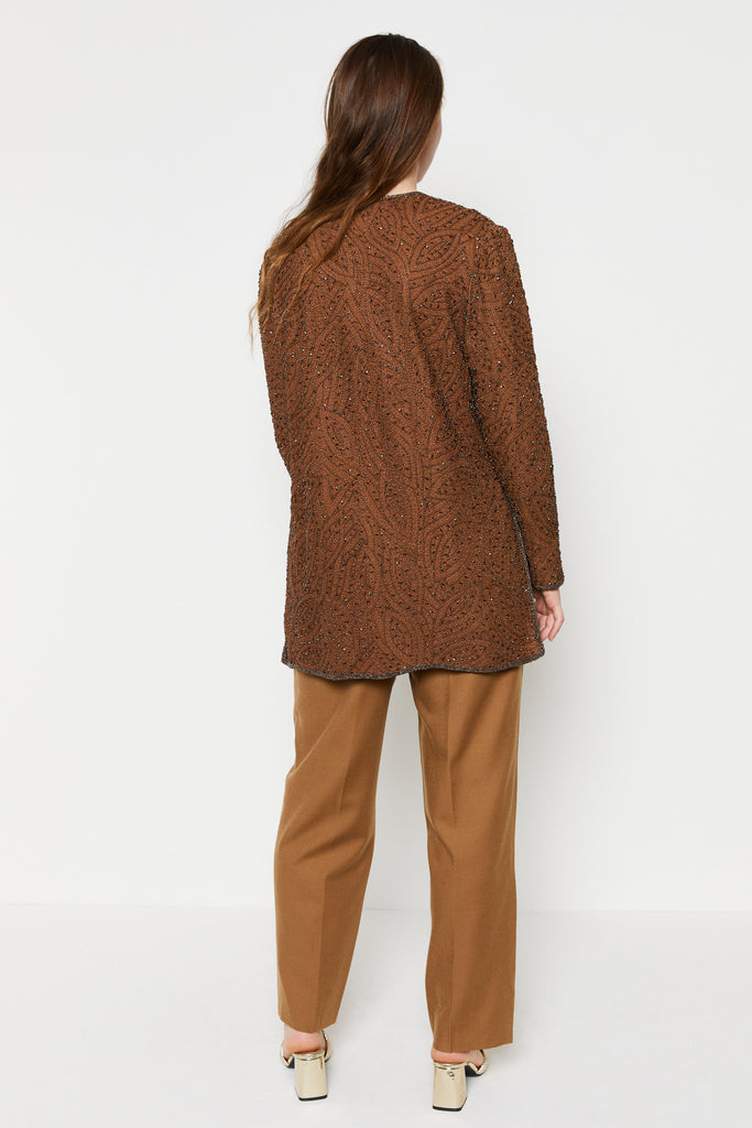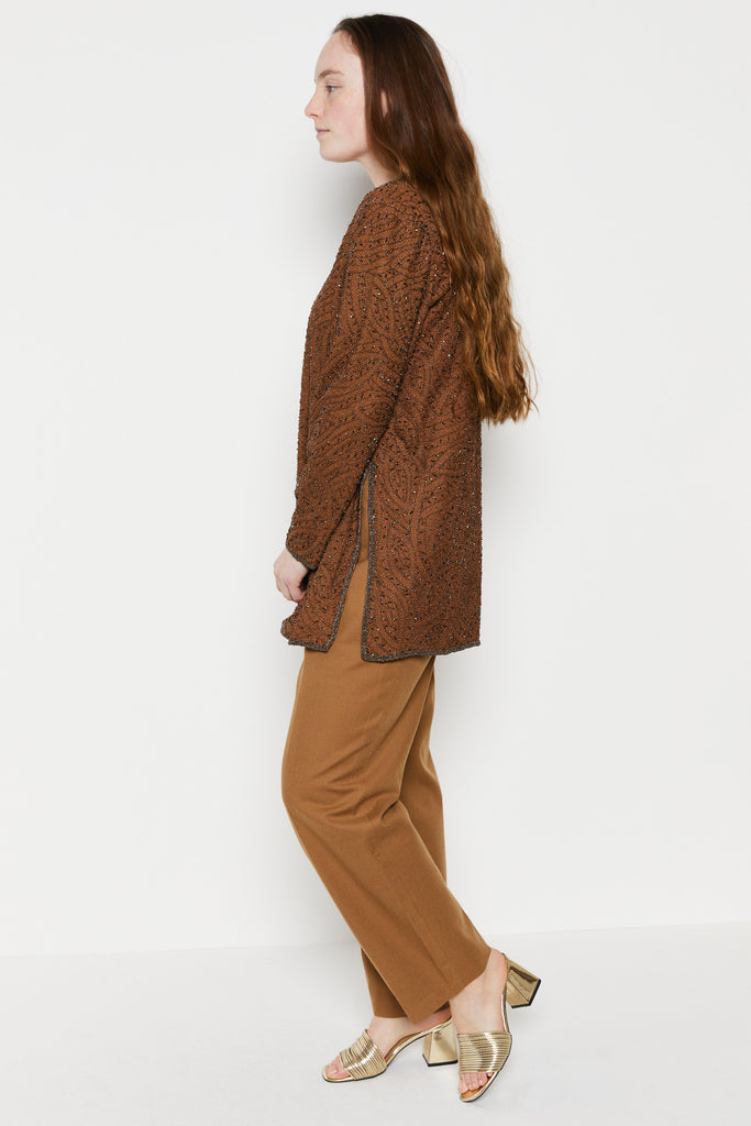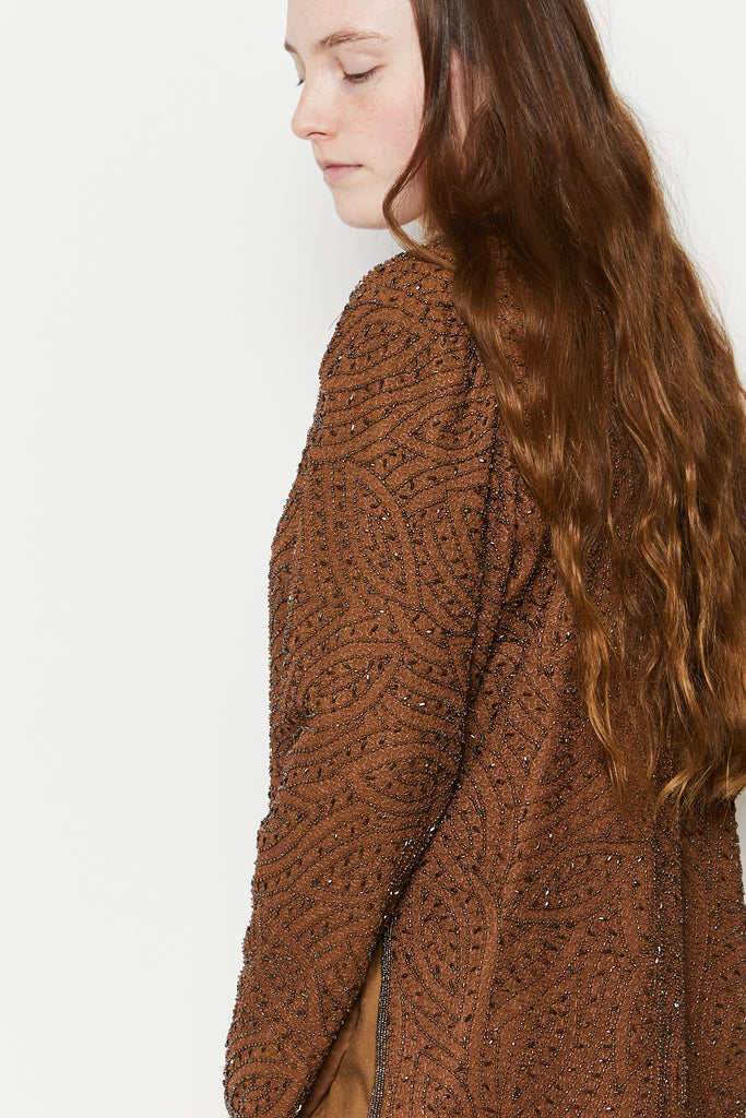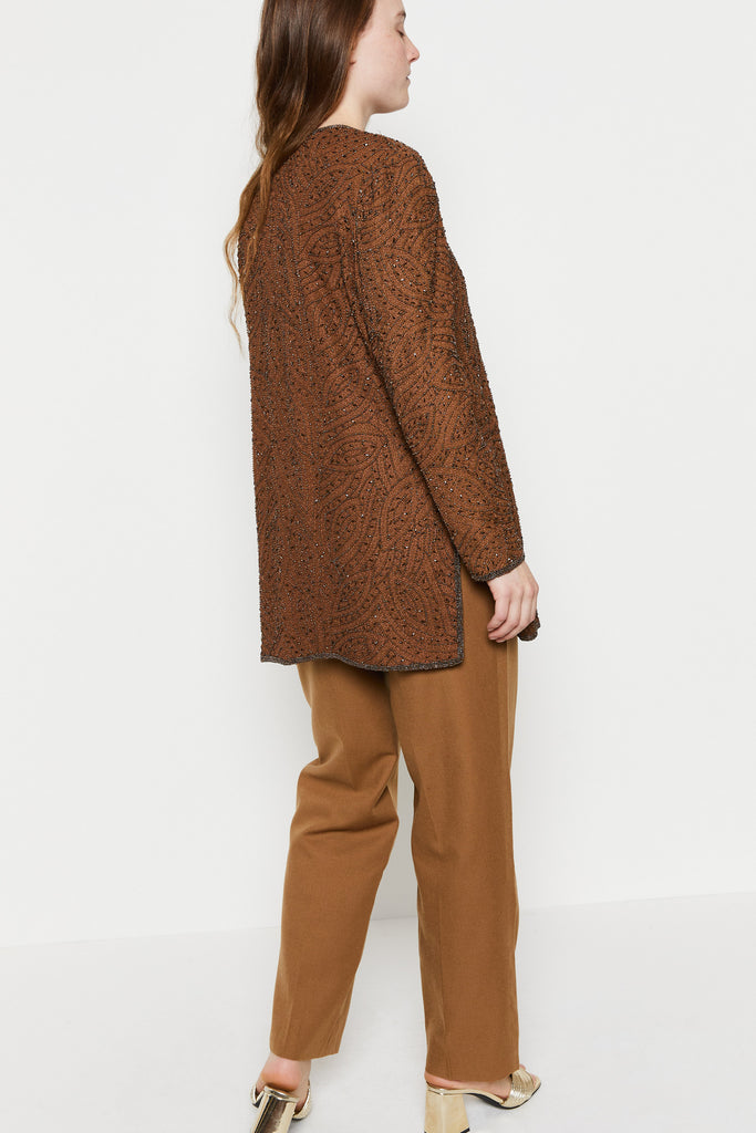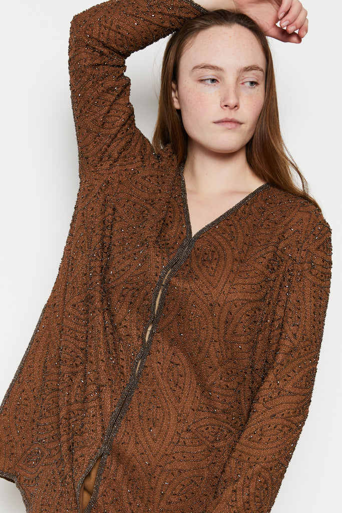 80s Cocoa Beaded Silk Tunic L