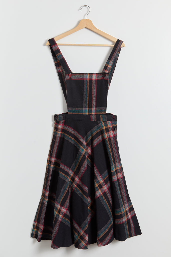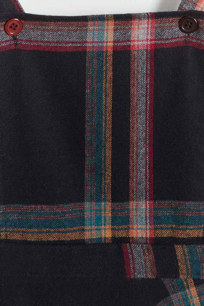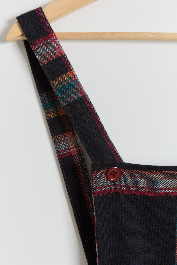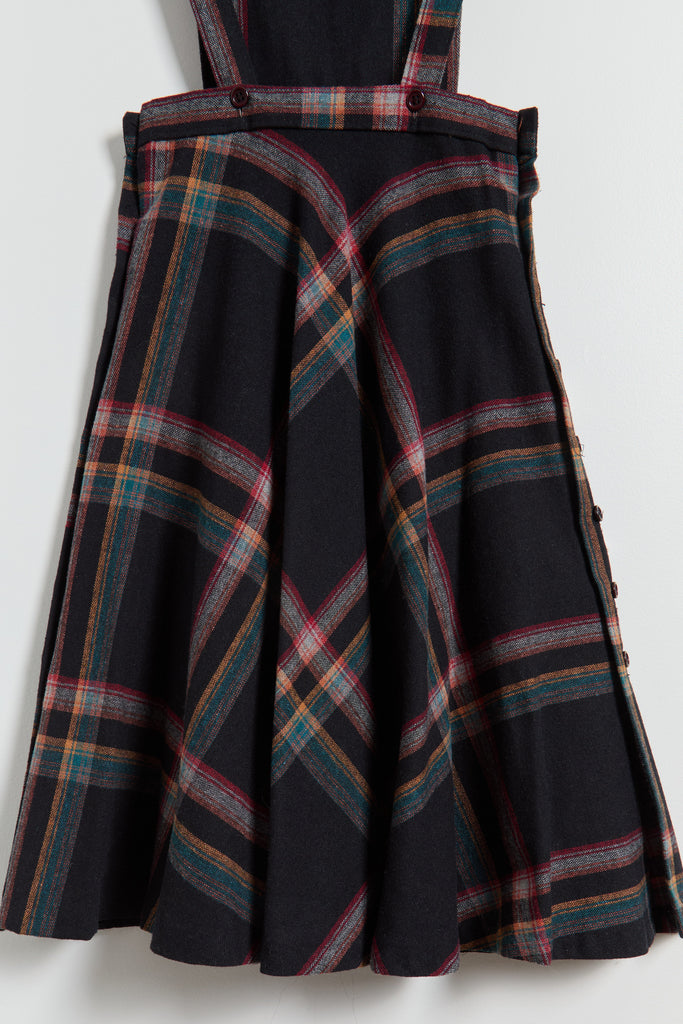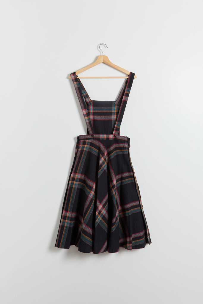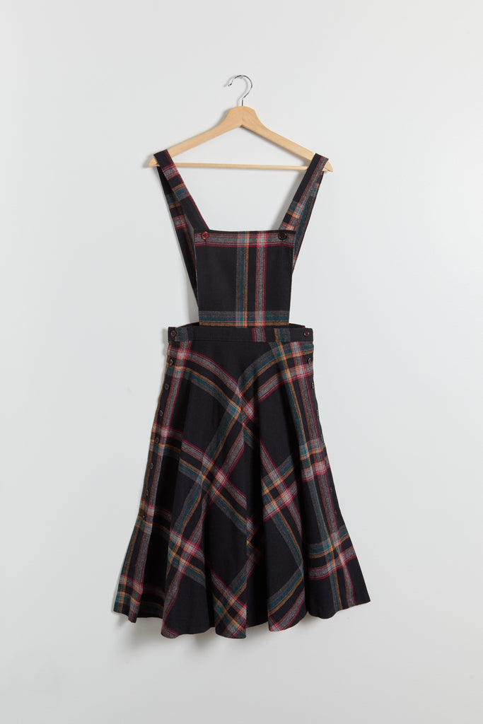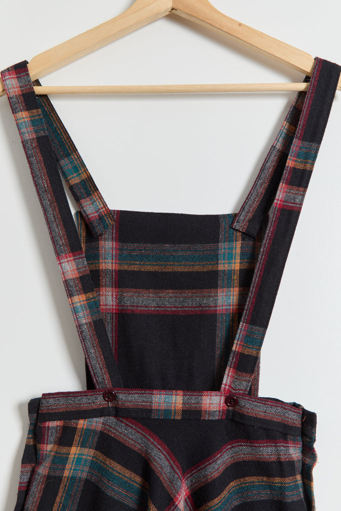 70s Black Multi Color Plaid Pinafore Dress XS