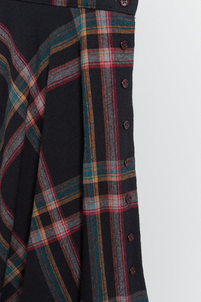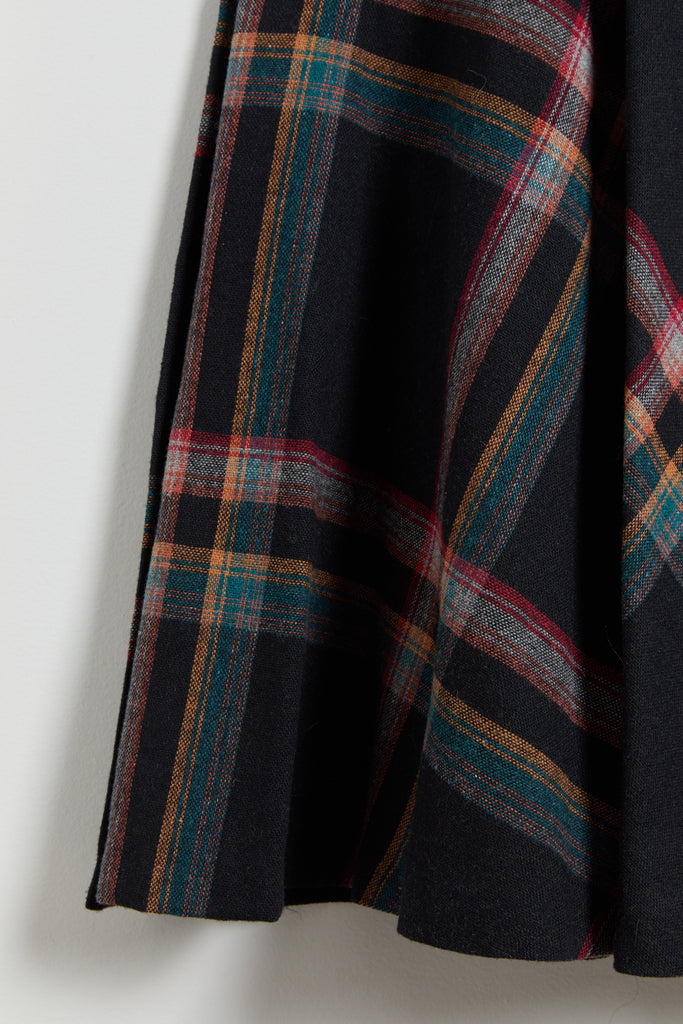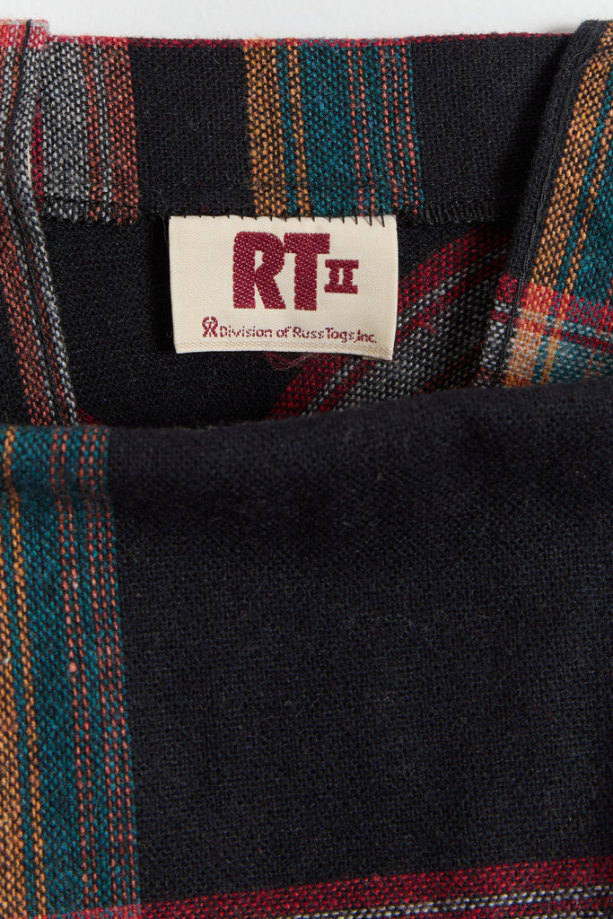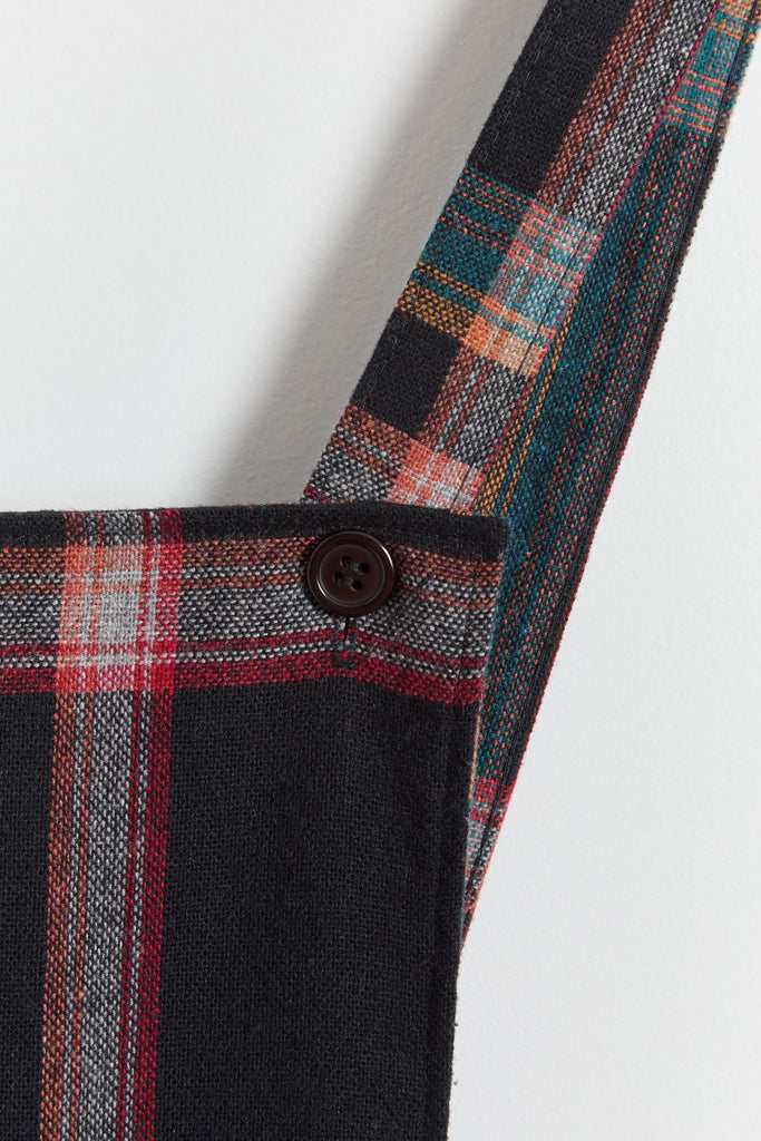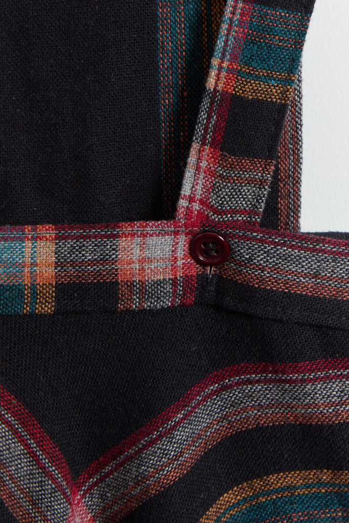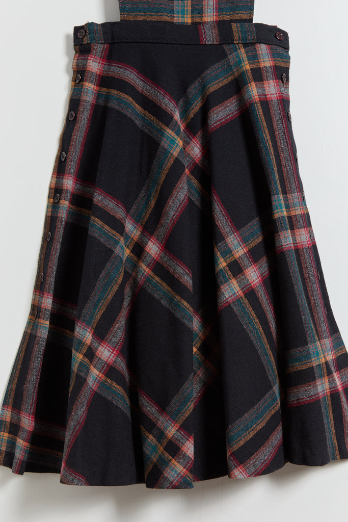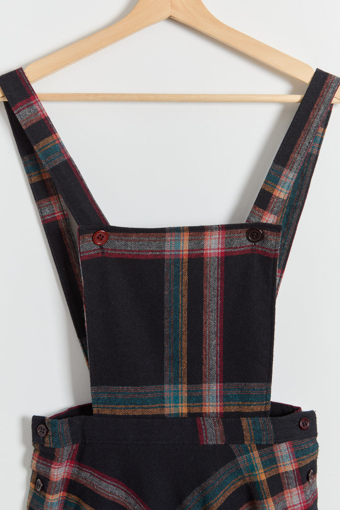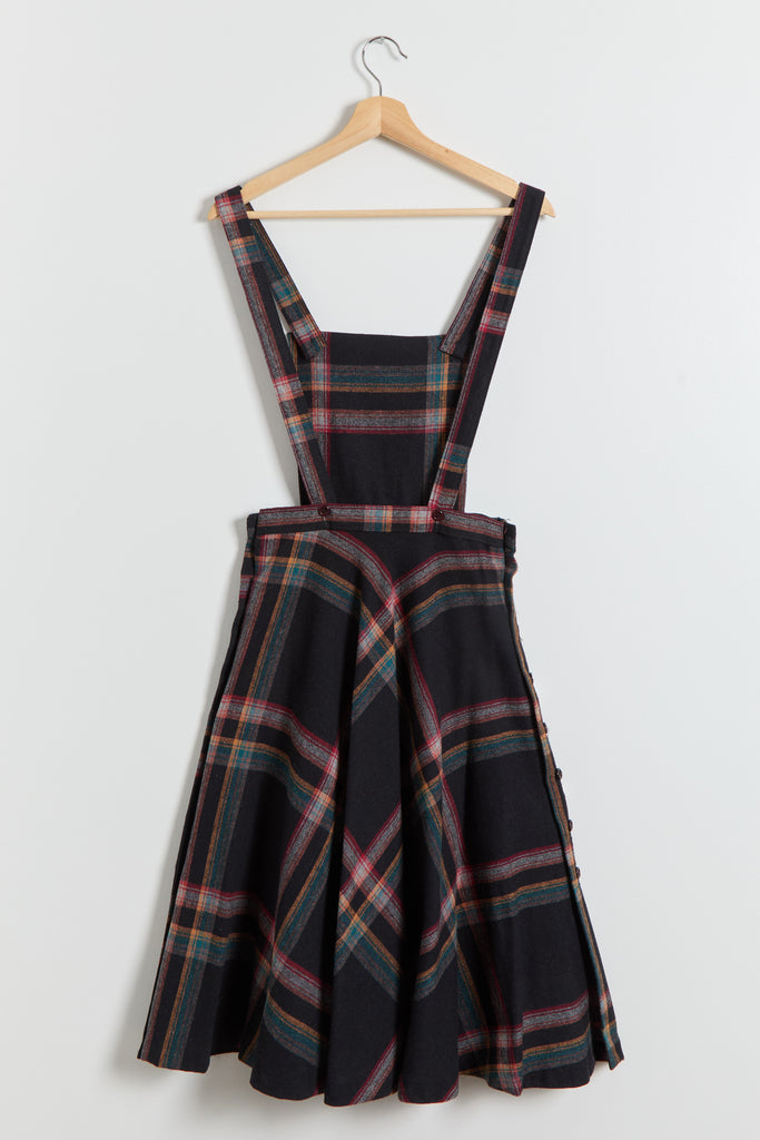 70s Black Multi Color Plaid Pinafore Dress XS