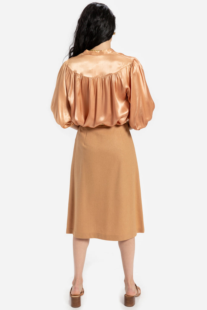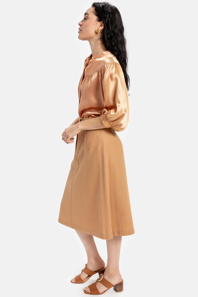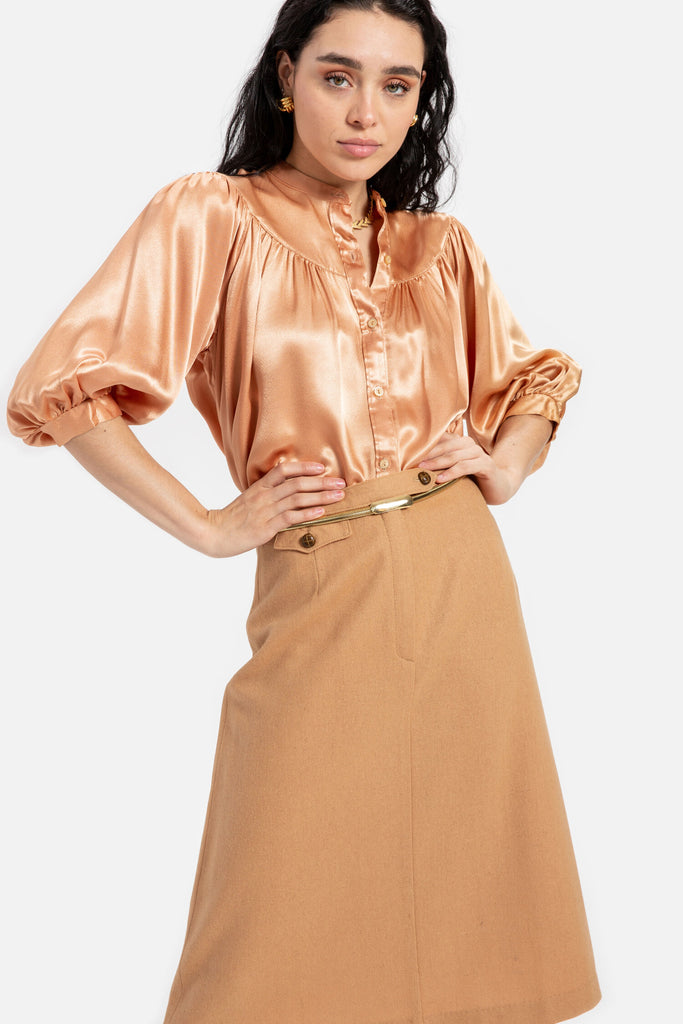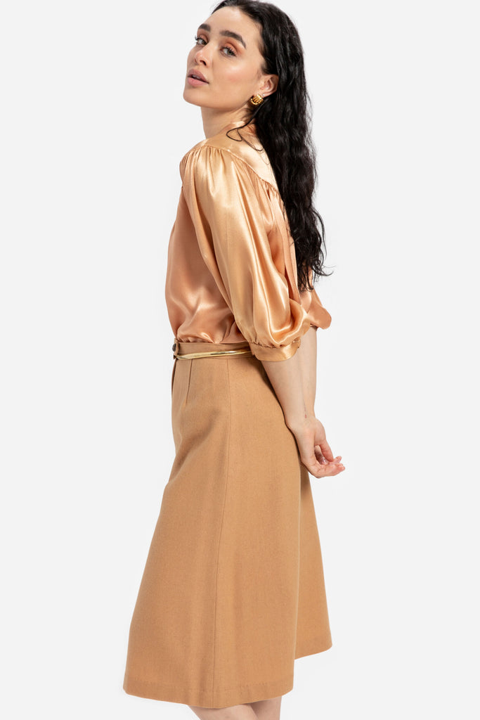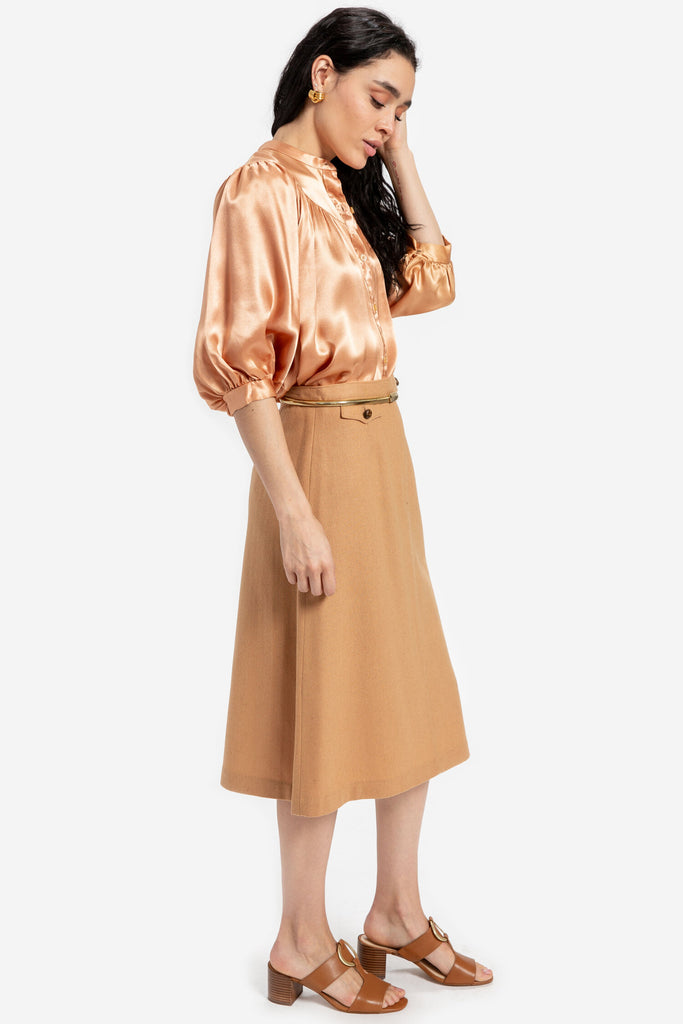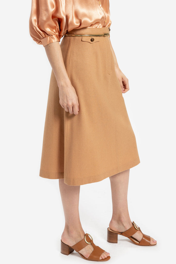70s Camel Wool A-Line Skirt S