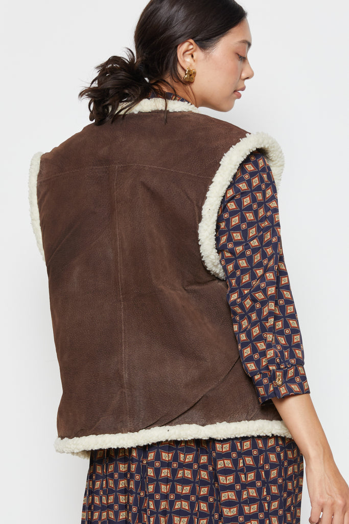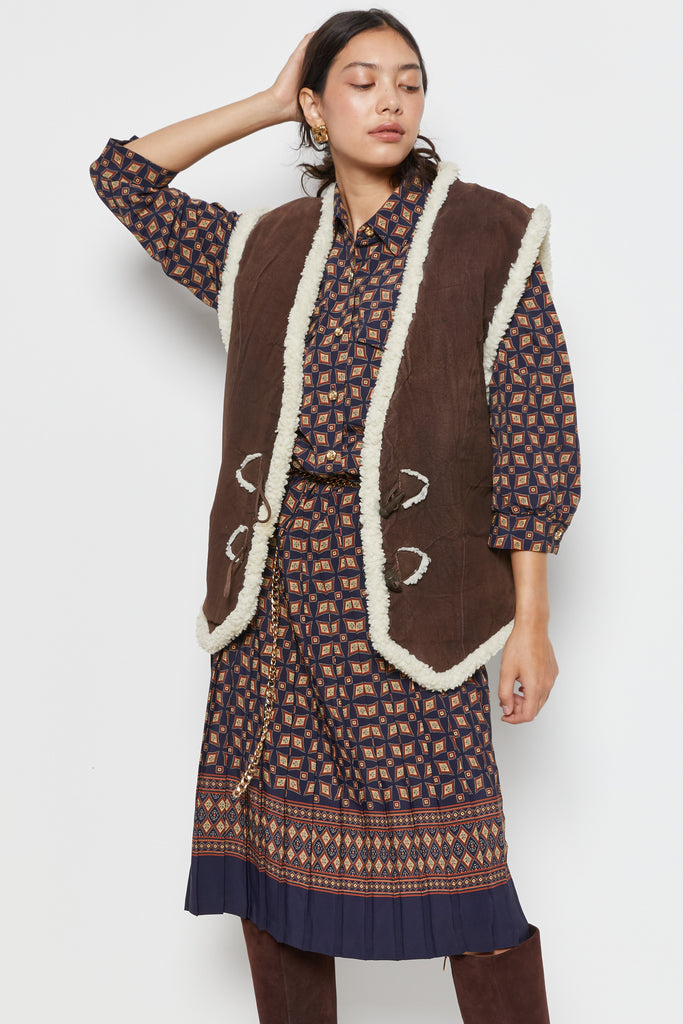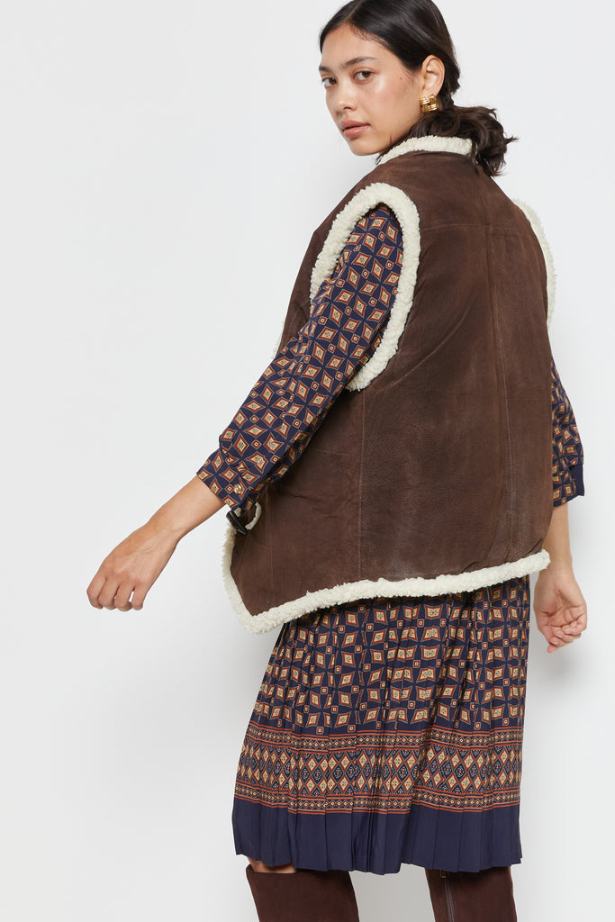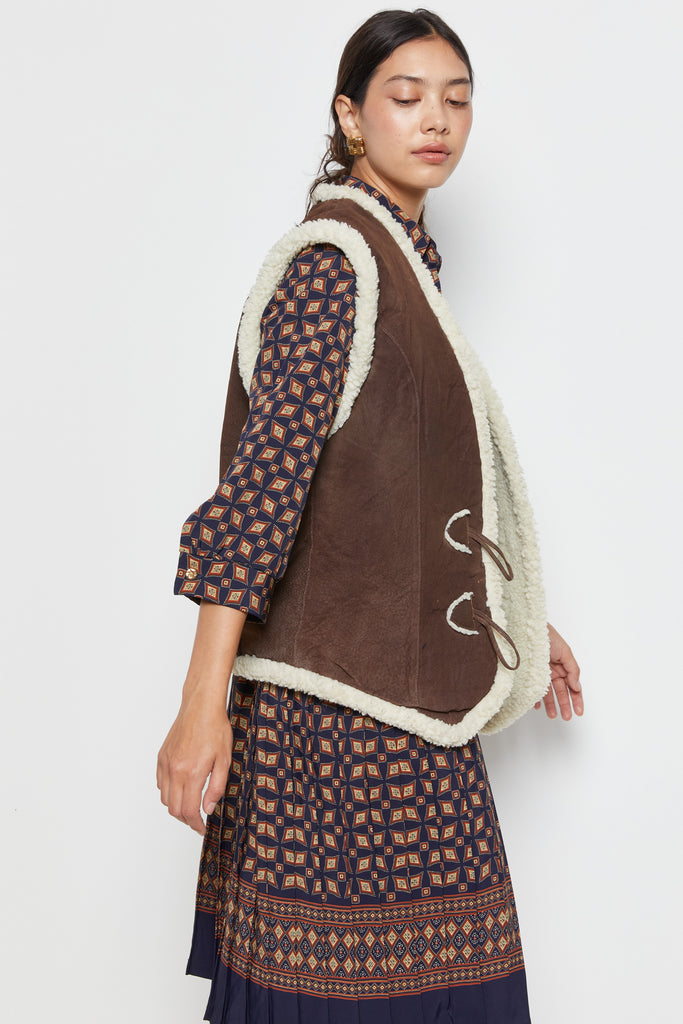 70s Chocolate Suede Sherpa Lined Vest M/L