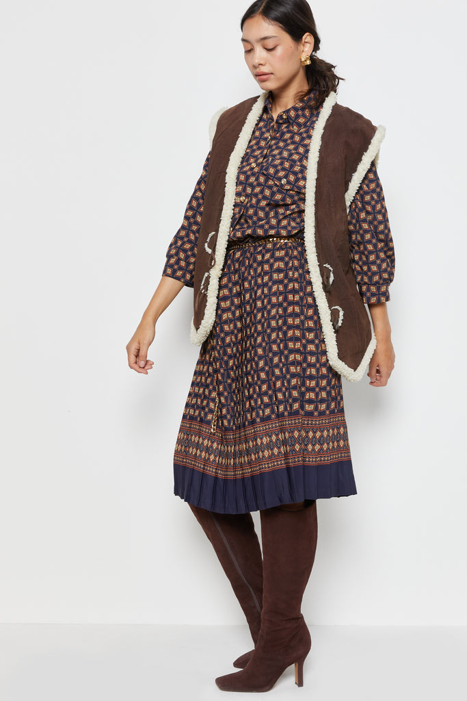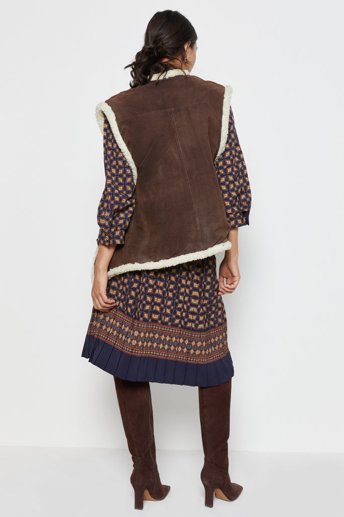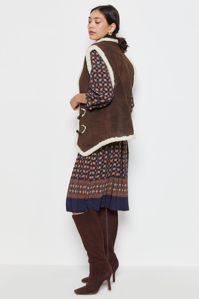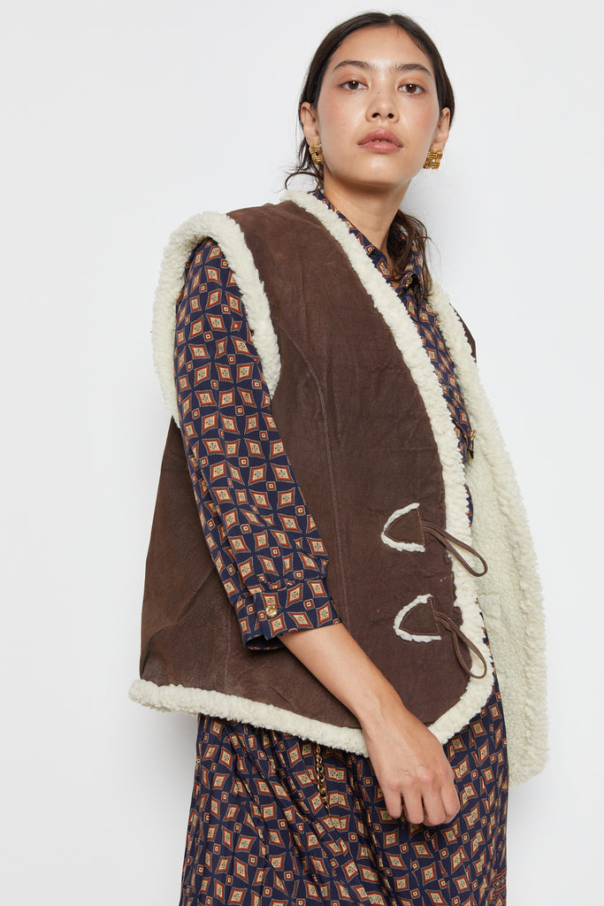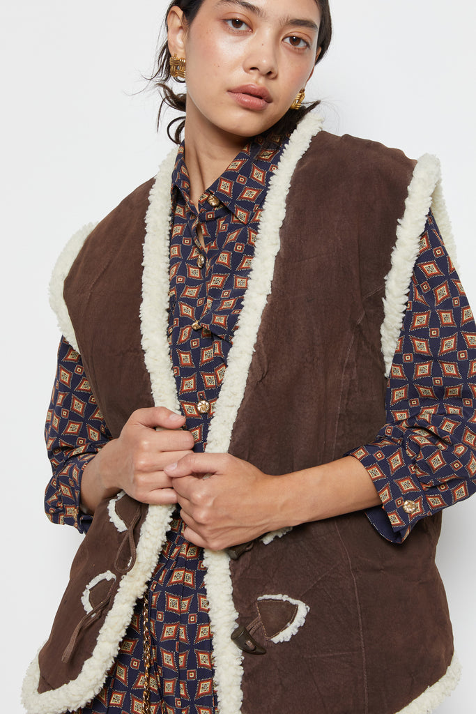 70s Chocolate Suede Sherpa Lined Vest M/L
