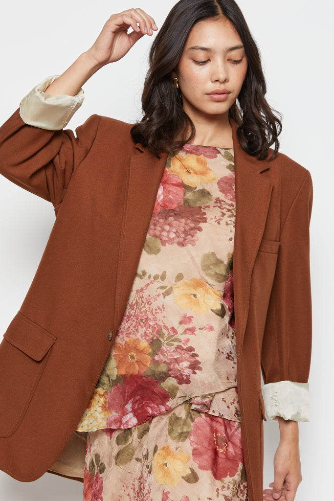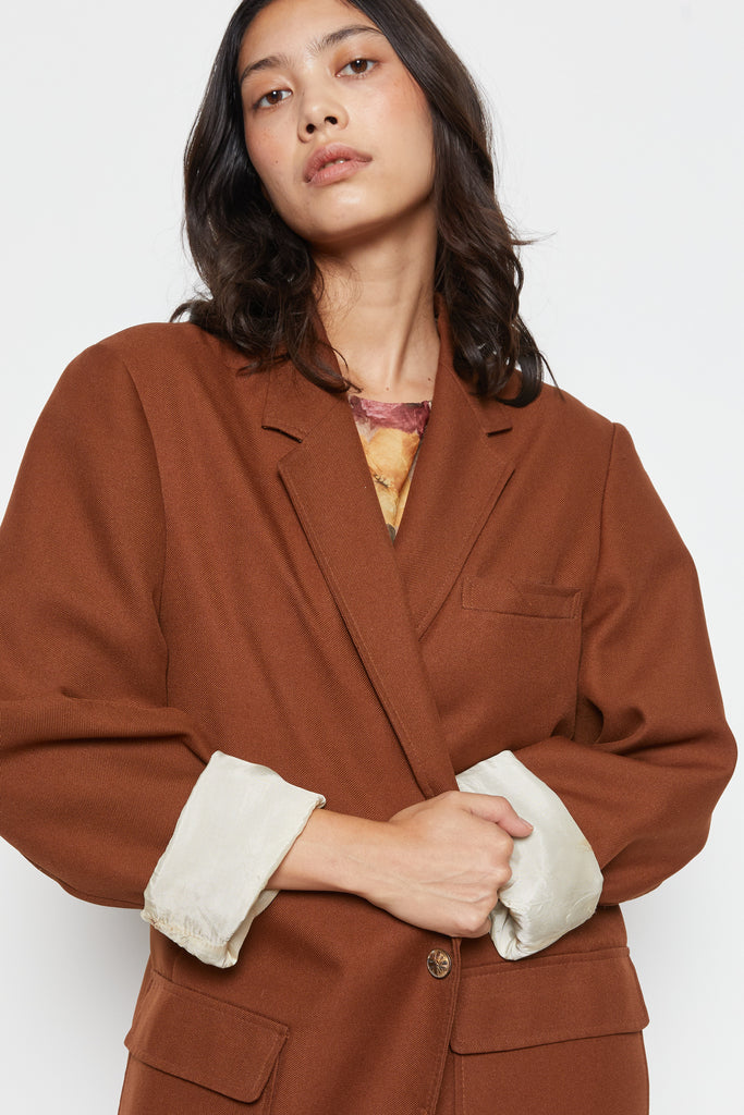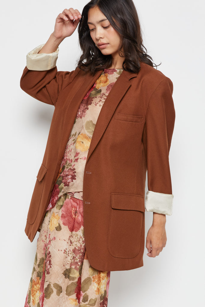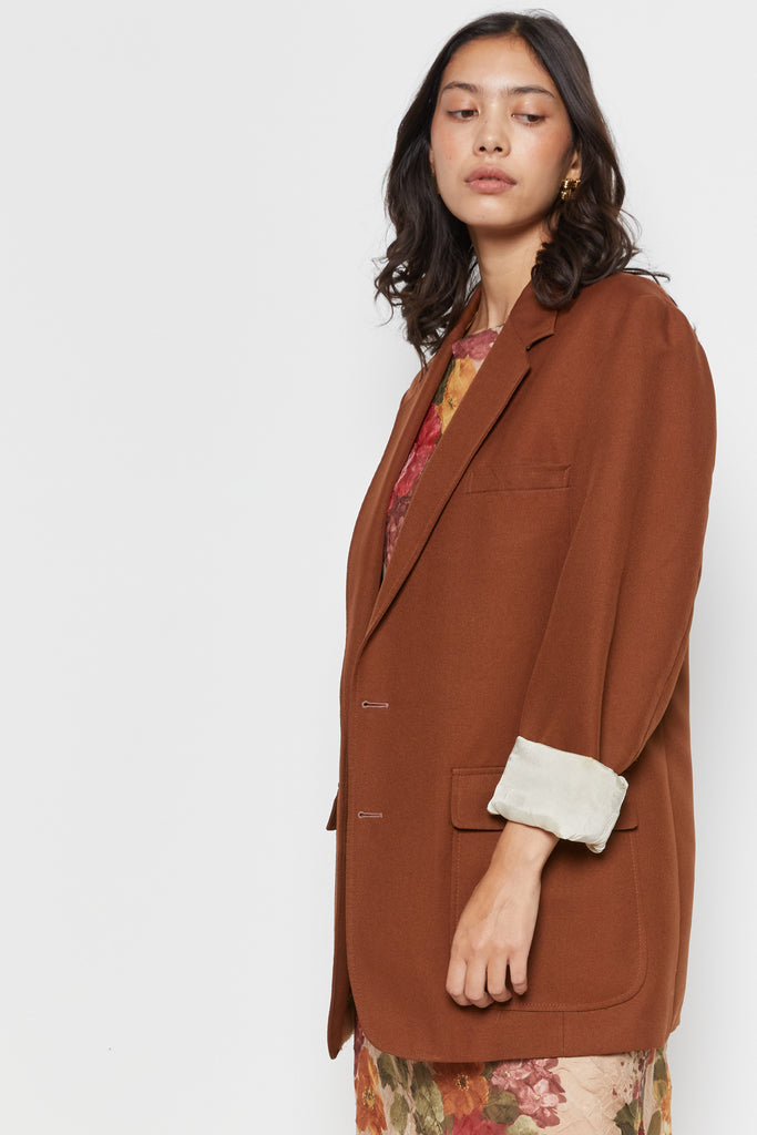 FIT / Would look great on smaller sizes for an oversized fit. For reference, model is 5’6 and wears a size 2/4.