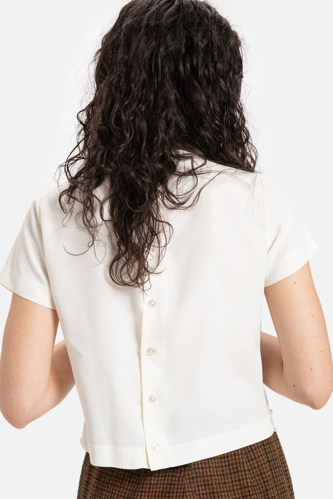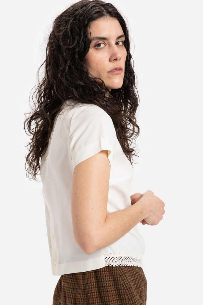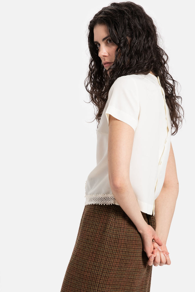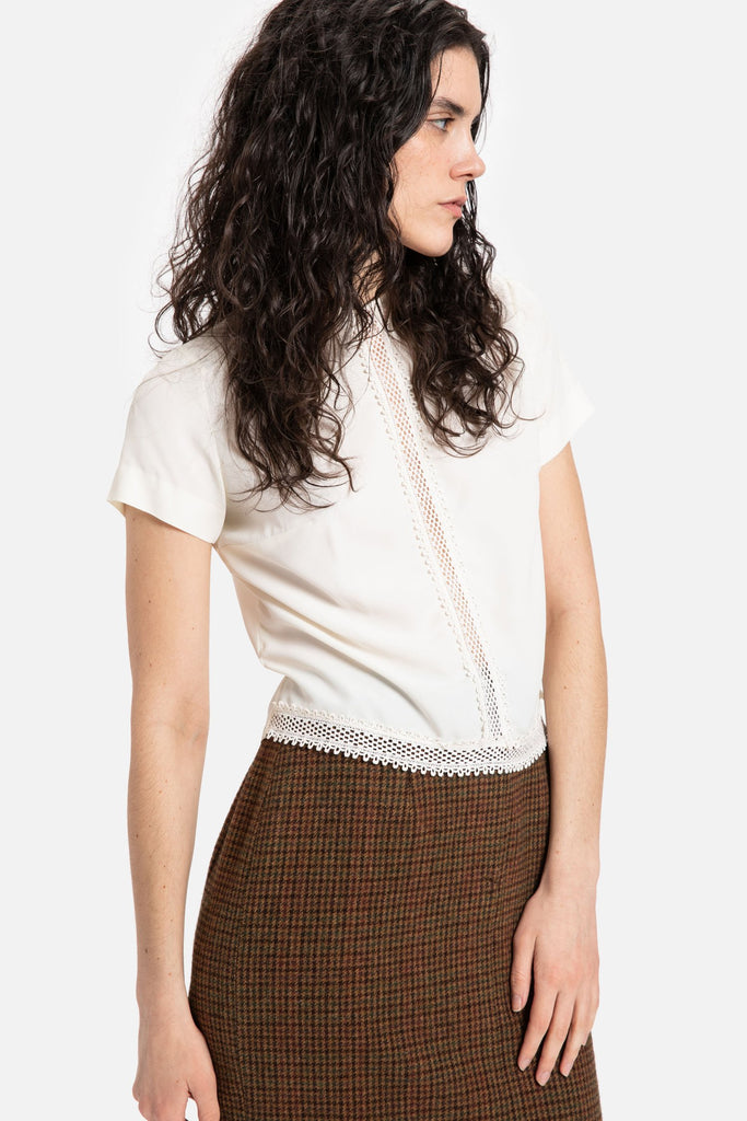 70s Cream Crochet Trim Top S