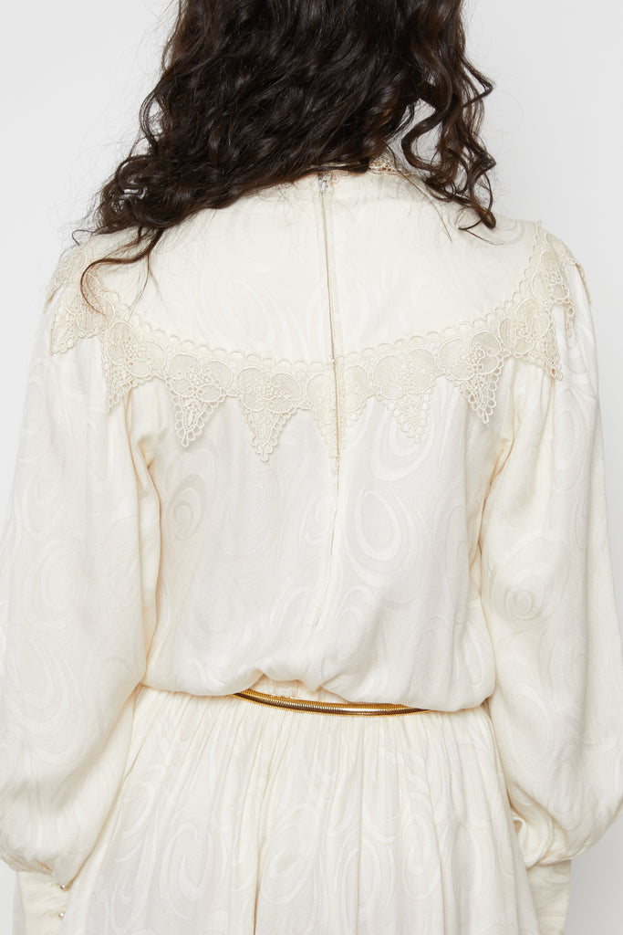 70s Cream Victorian Inspired Crochet Trim Dress S/M