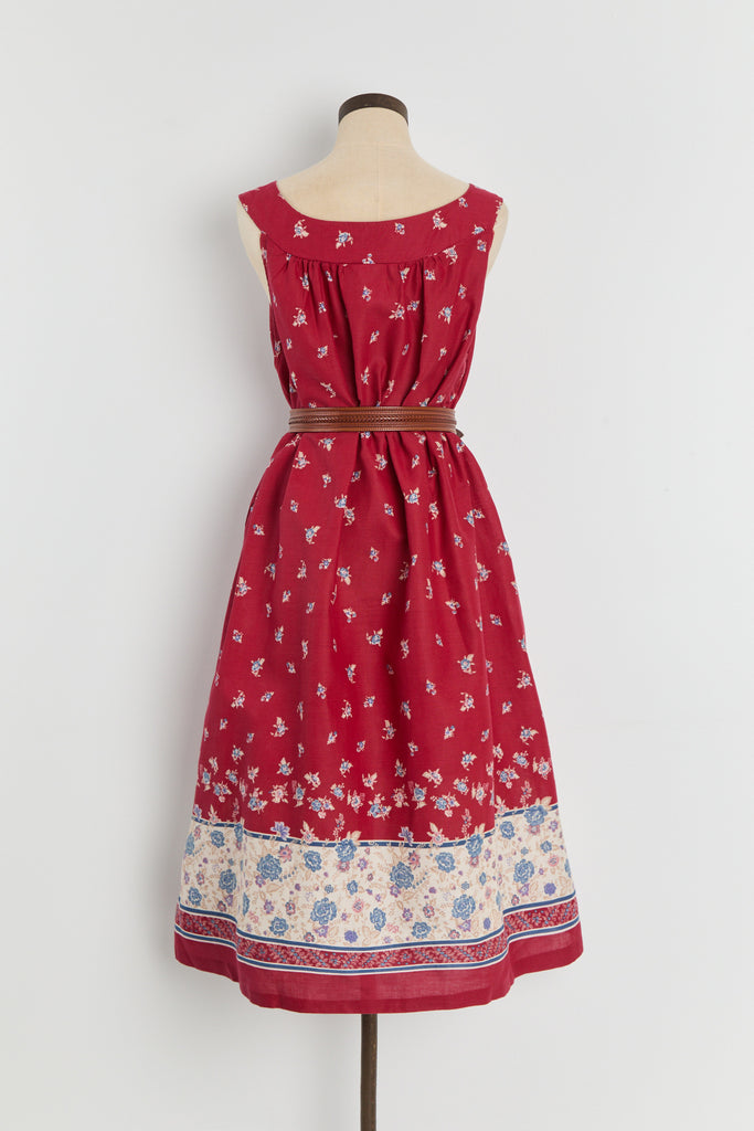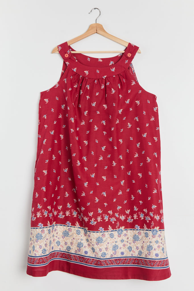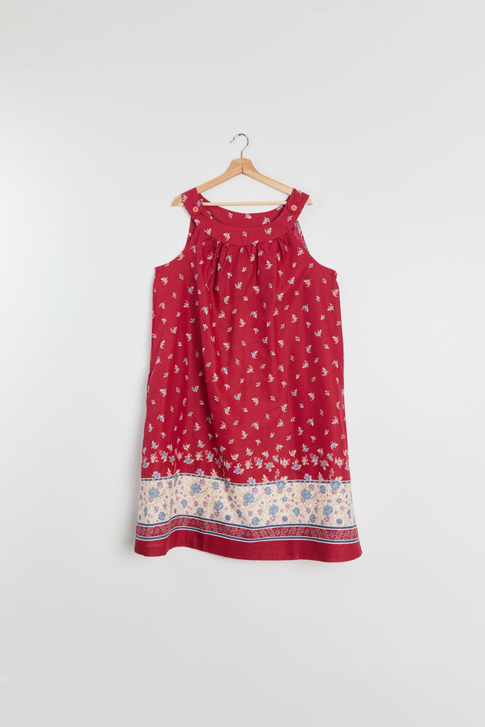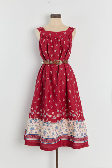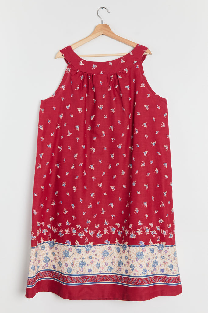 70s Crimson Blue Floral Print Tank Prairie Dress XL