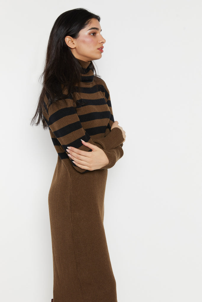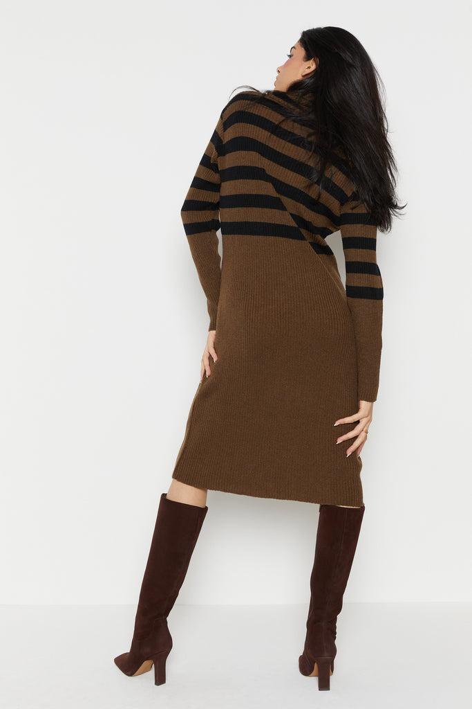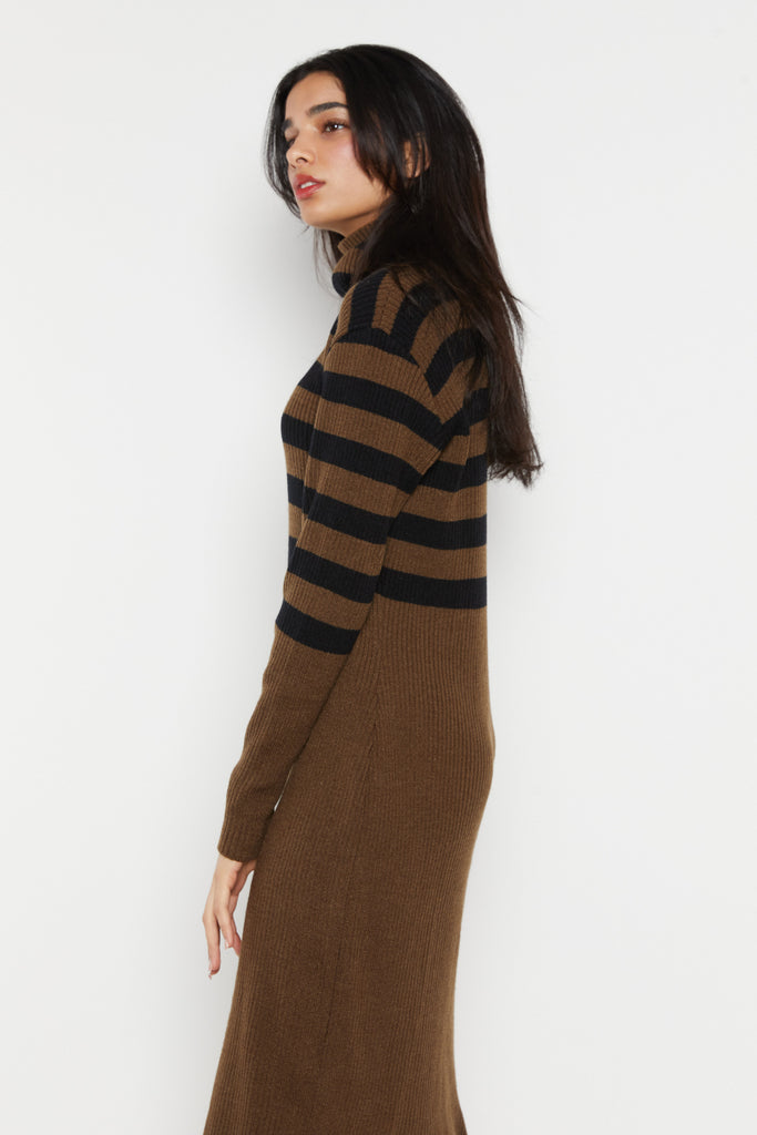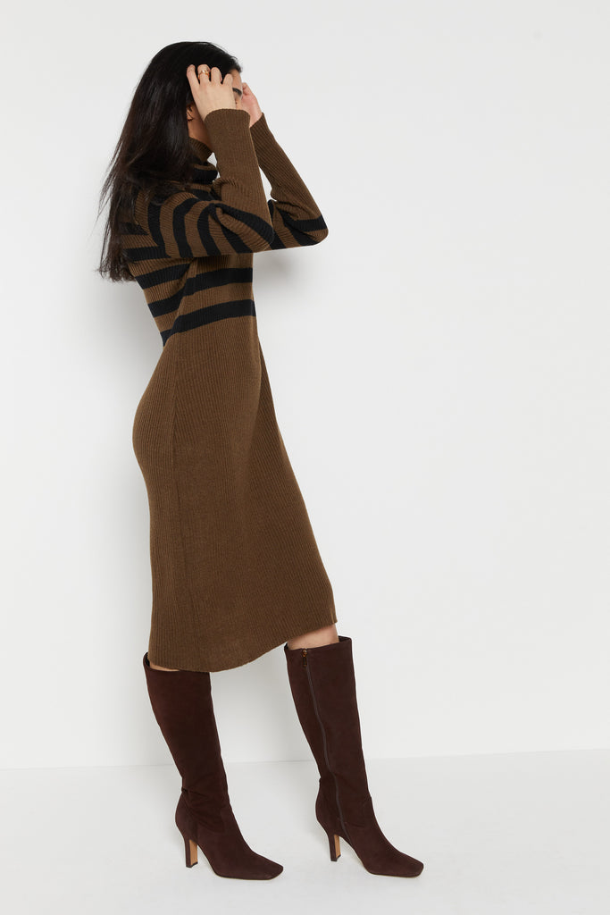 70s Olive Ribbed Stripe Sweater Dress L