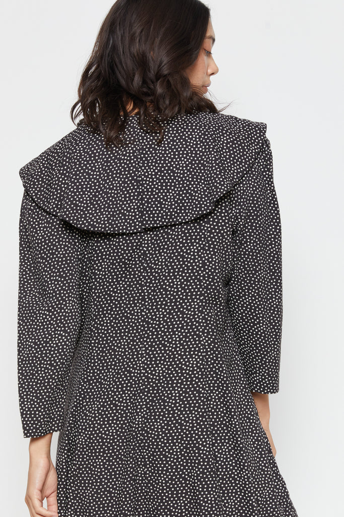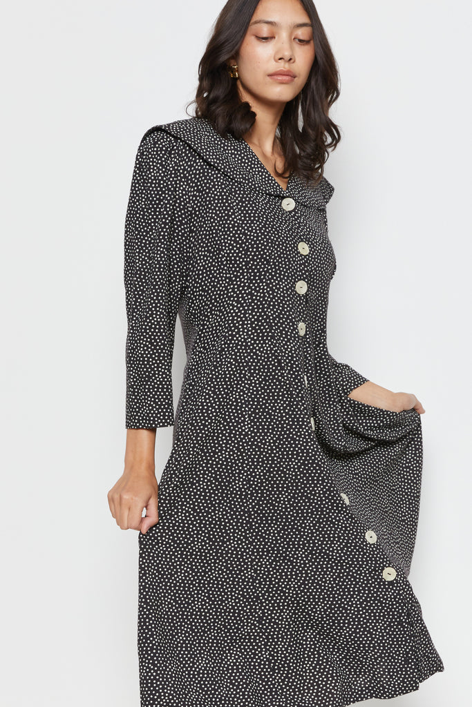 80s B&W Polka Dot Lapel Dress L
