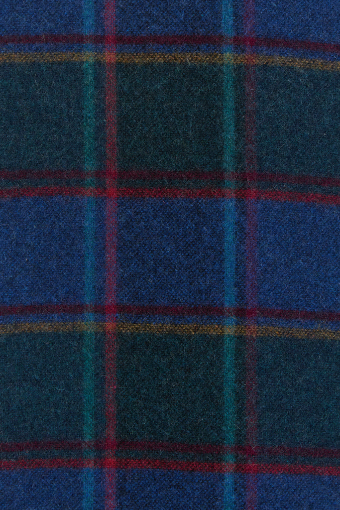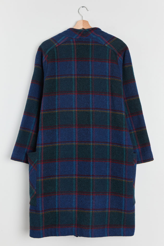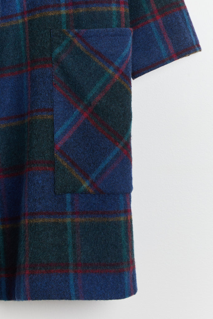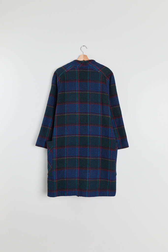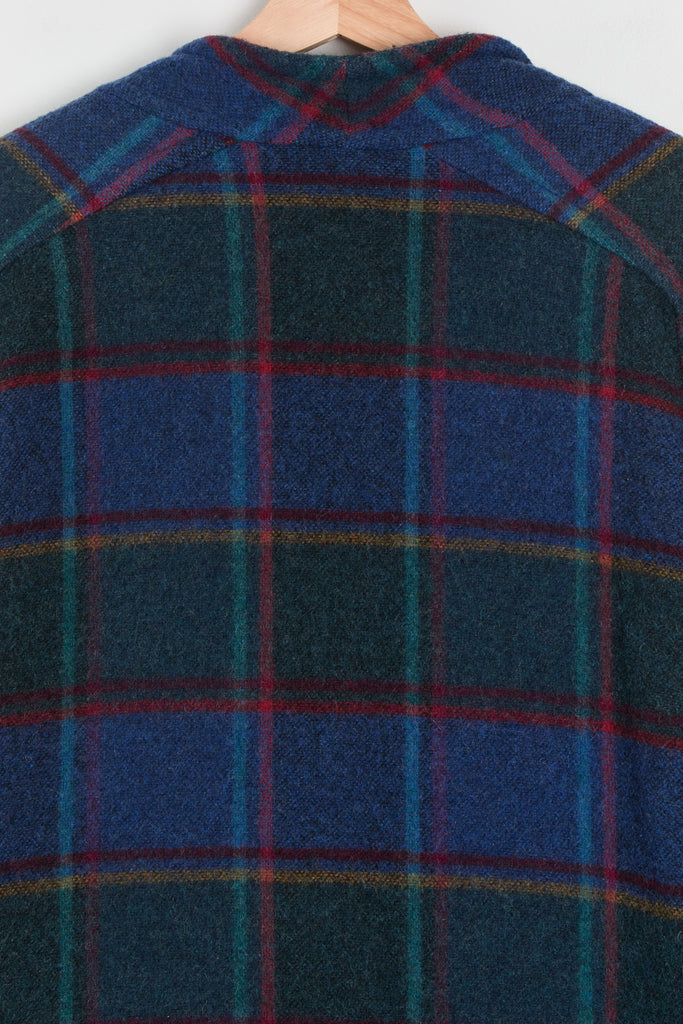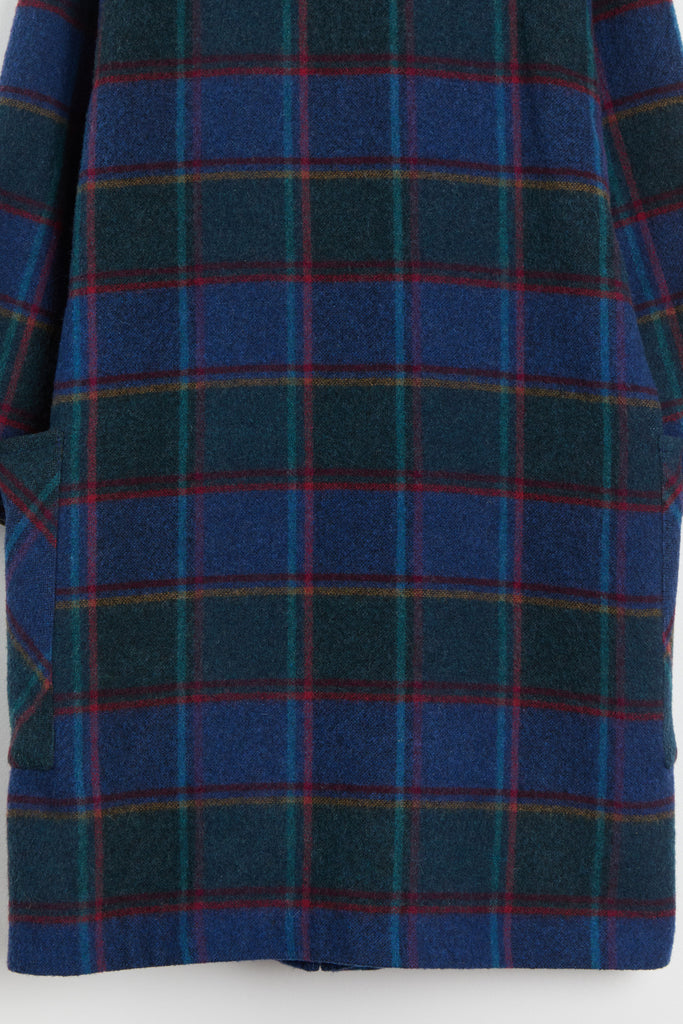 80s Blue Forest Plaid Batwing Pocket Coat L