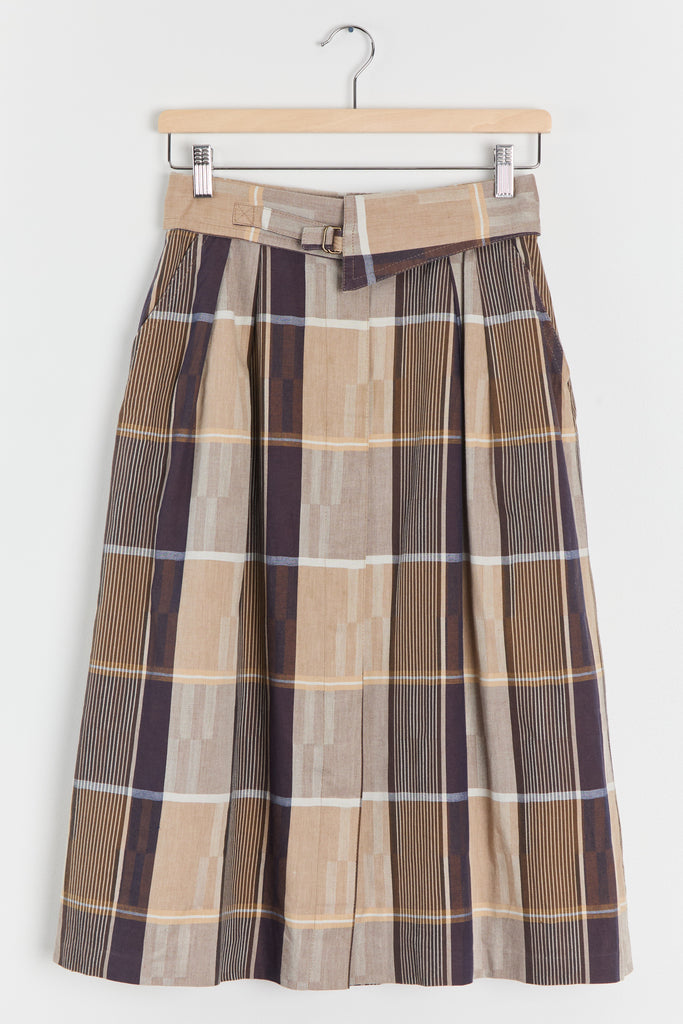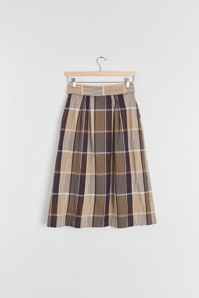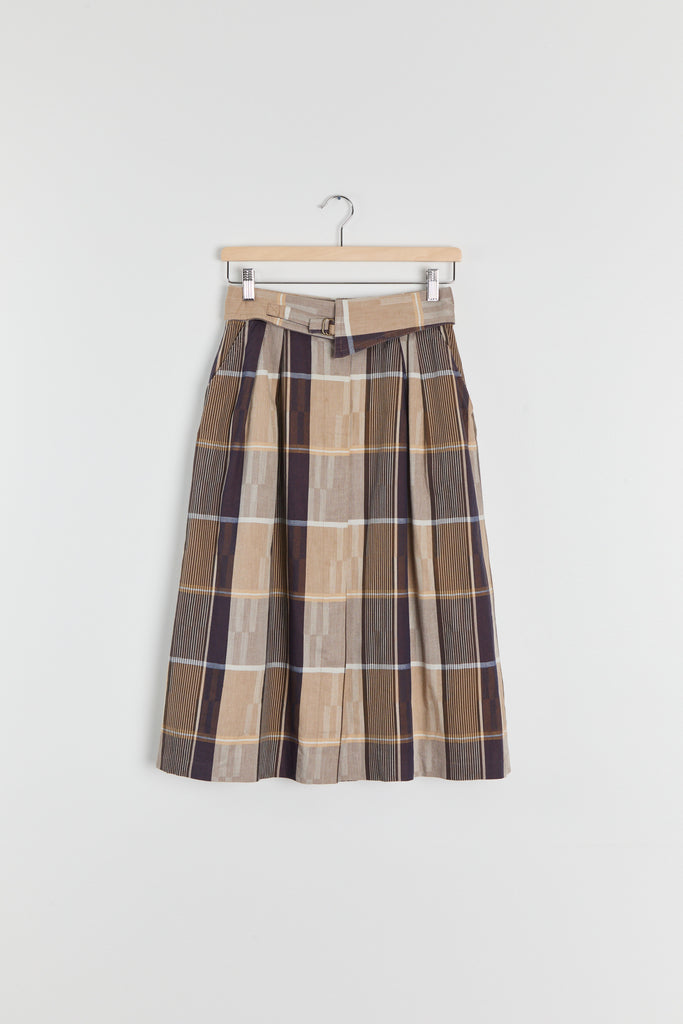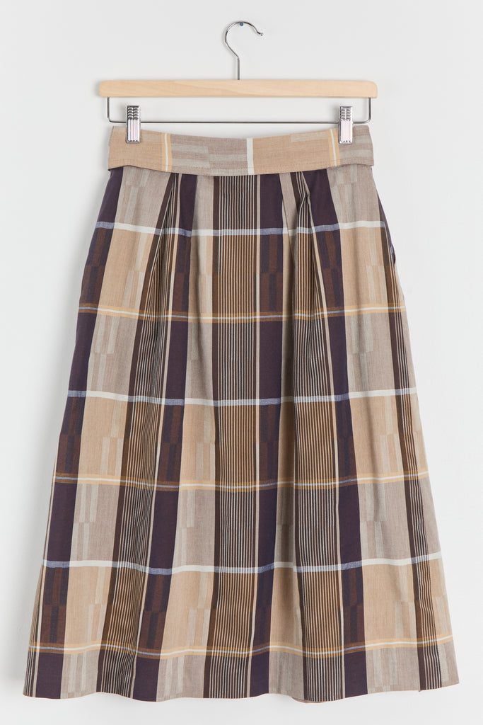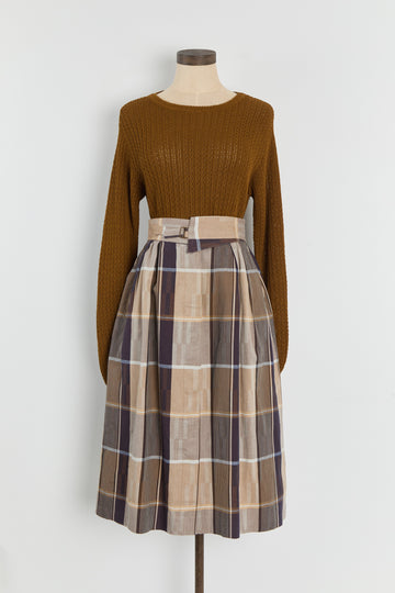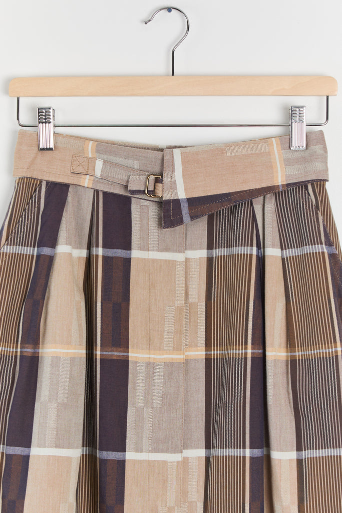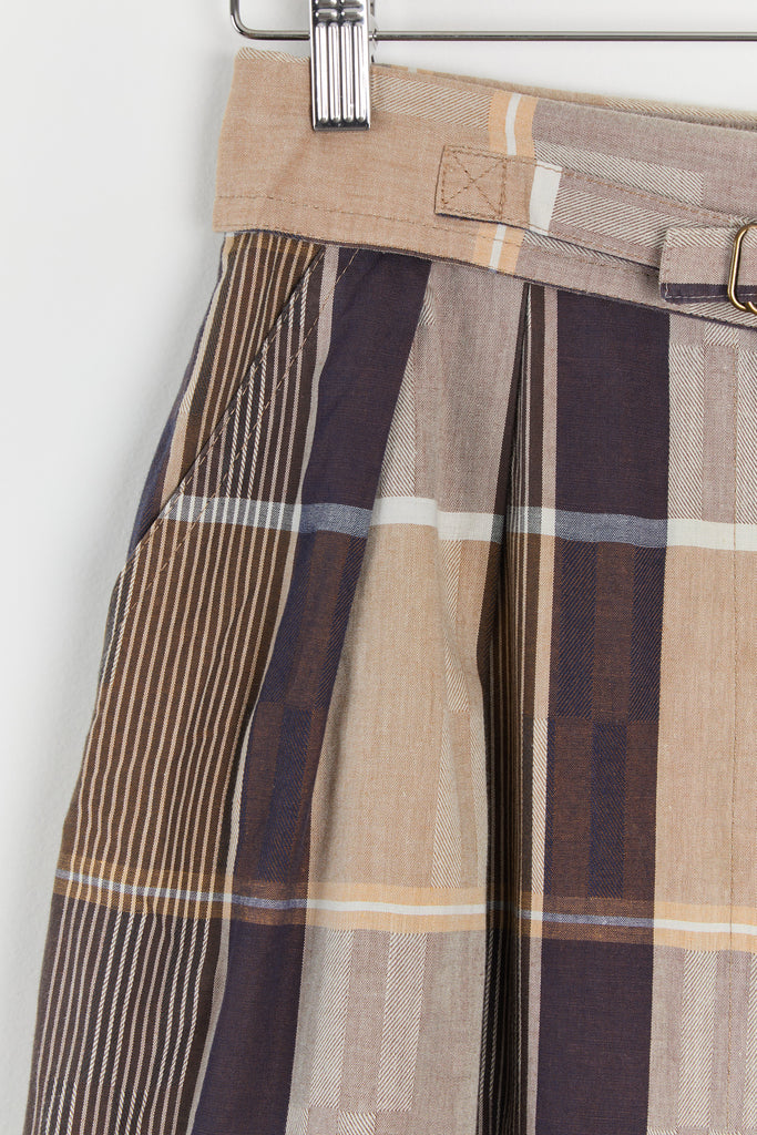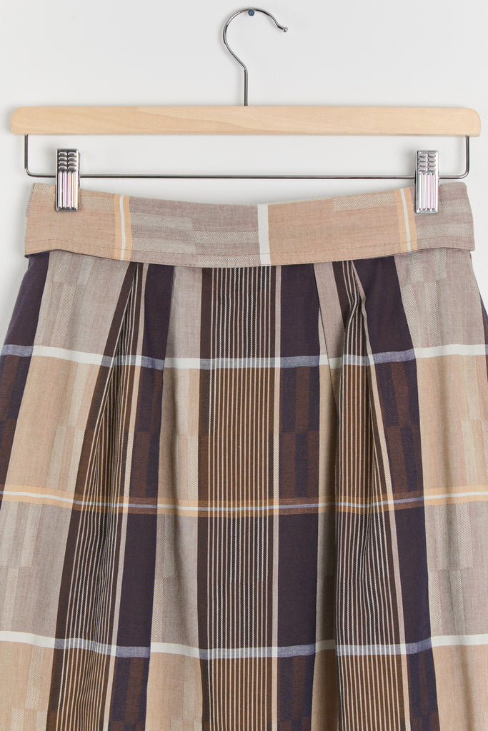 80s Brown Tan Plaid Fold Over Waist Skirt S