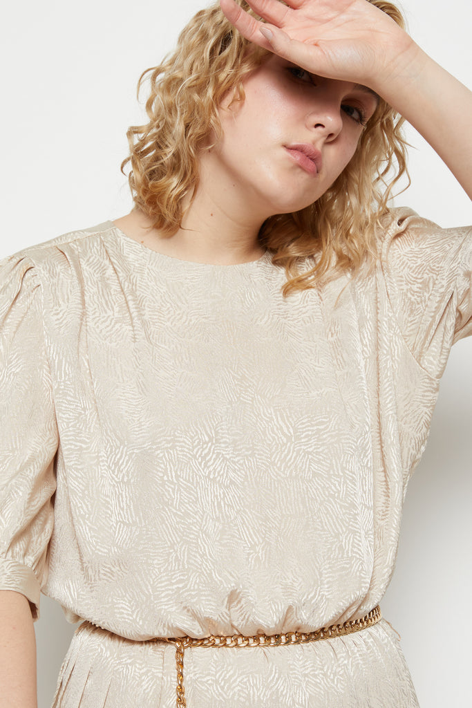 MEASUREMENTS / Shoulder - 14.5" Bust - 21" Waist - 13"-17" (elastic) Hips - 32" Length - 46" Sleeve - 15"