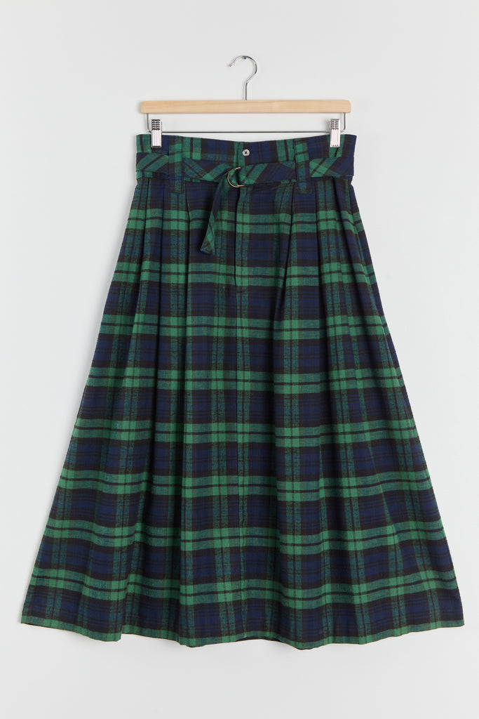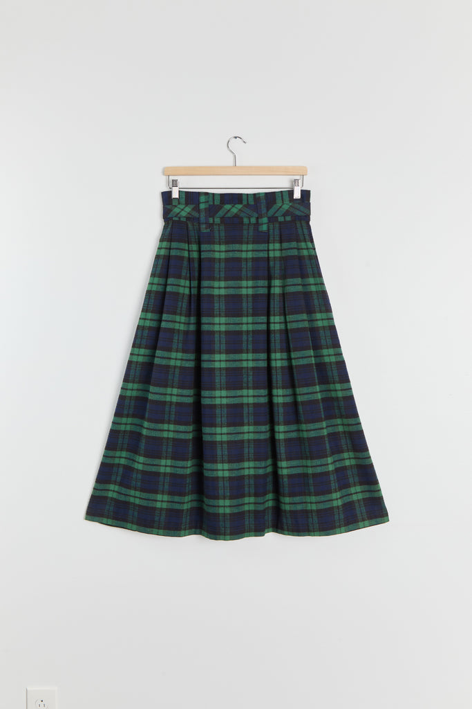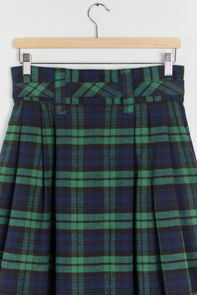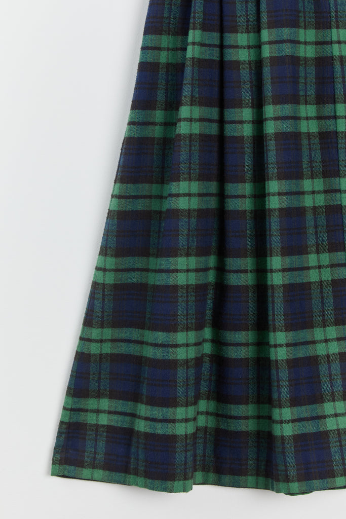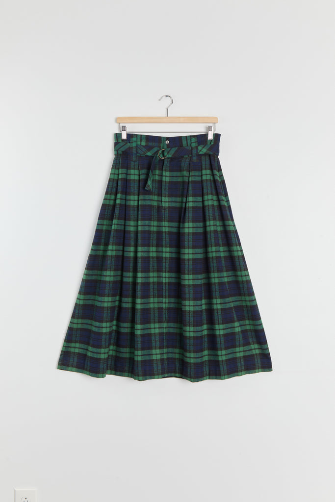 80s Navy Green Flannel Plaid Long Skirt M/L
