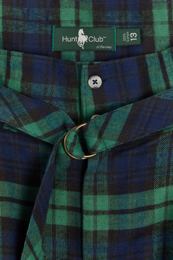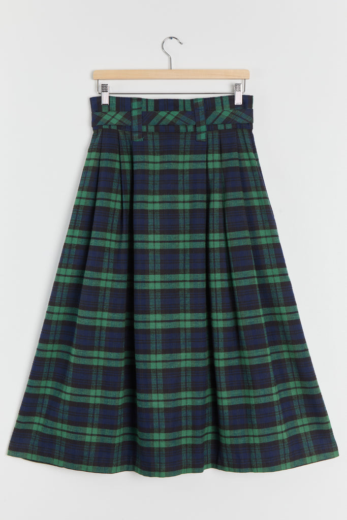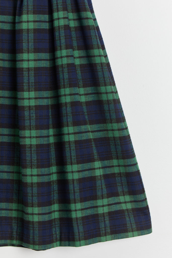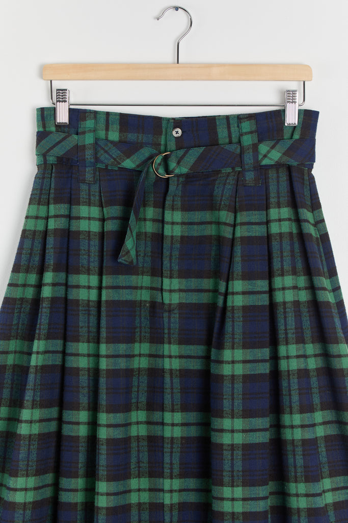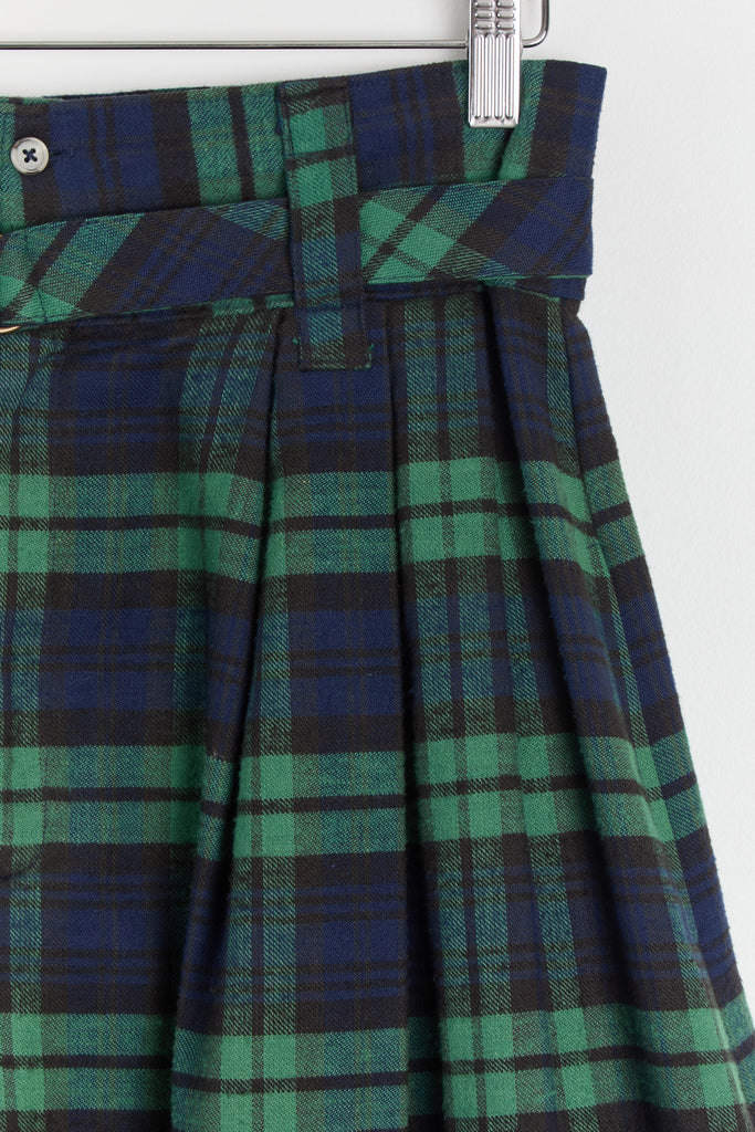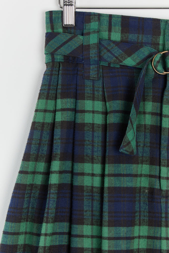 80s Navy Green Flannel Plaid Long Skirt M/L