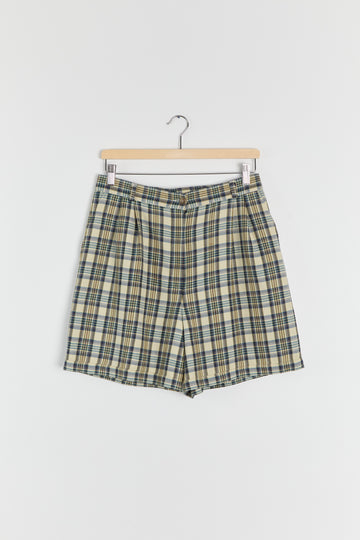 80s Sage Plaid Pleated Wool Shorts L